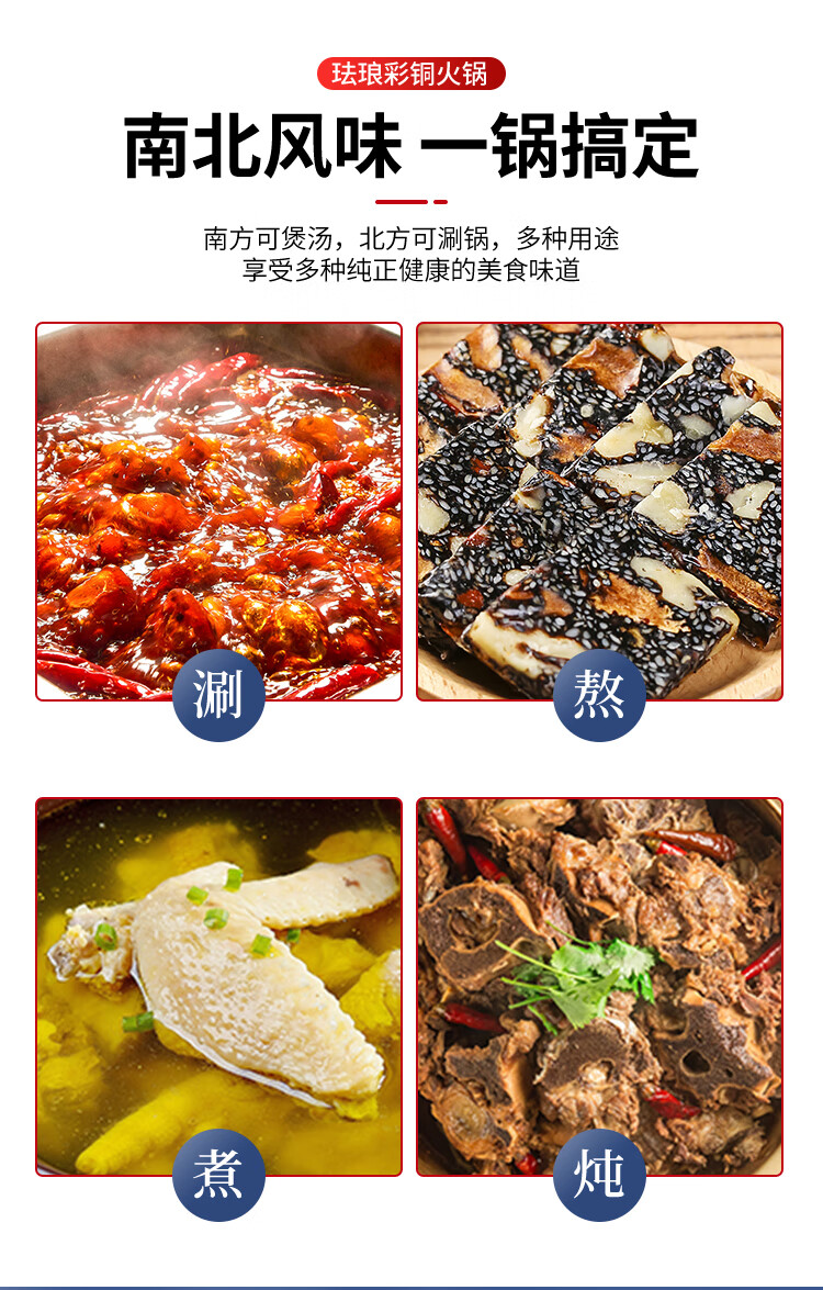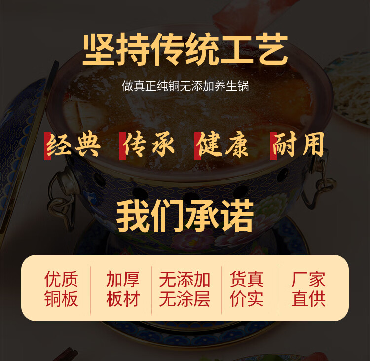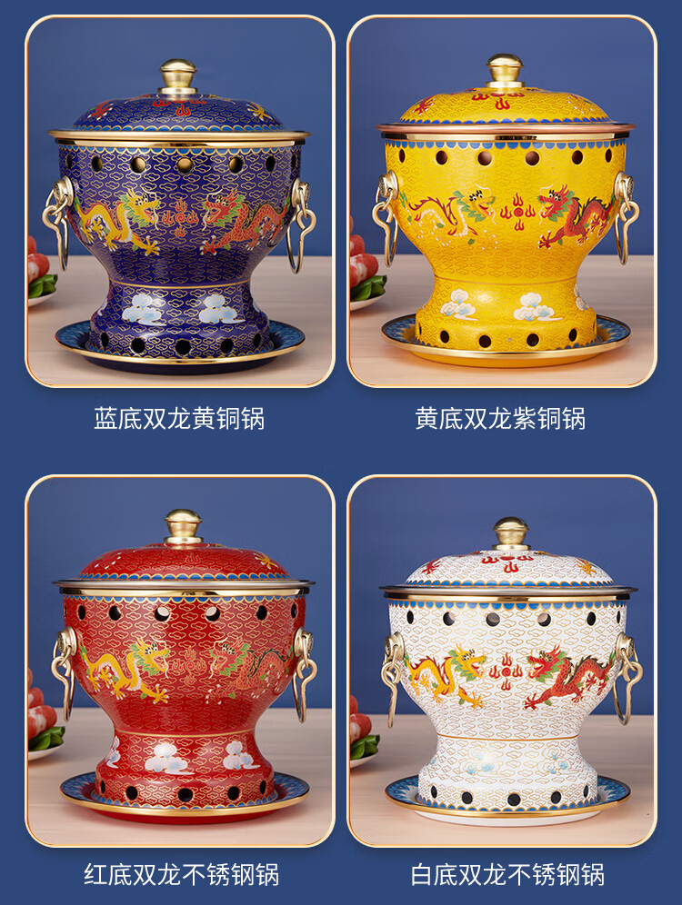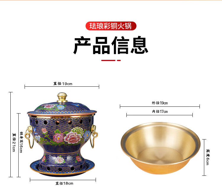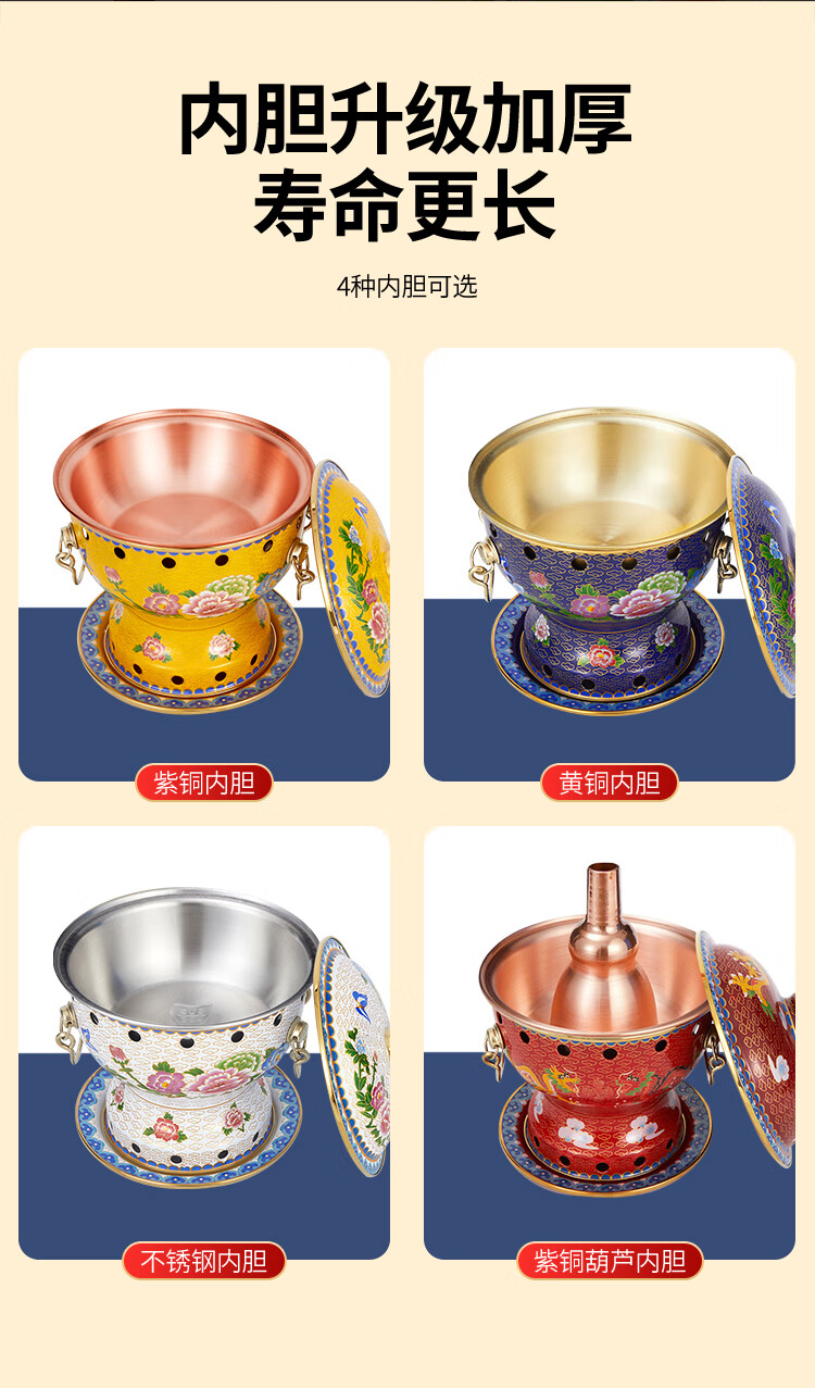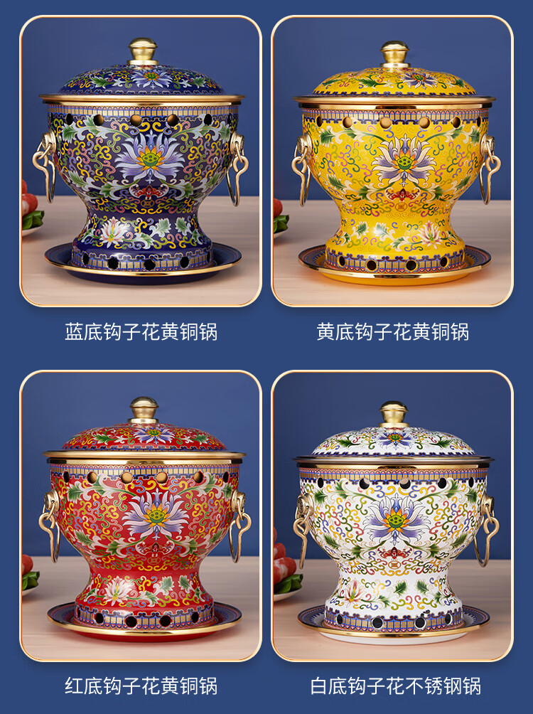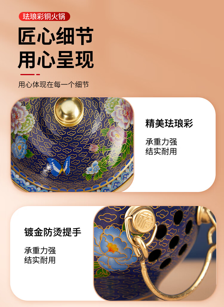 Cloisonné copper hot pot, single household alcohol stove, enamel hot pot, small hot pot, one person, one pot, pure copper alcohol copper pot, extra thick blue bottom peony style (304 inner pot)