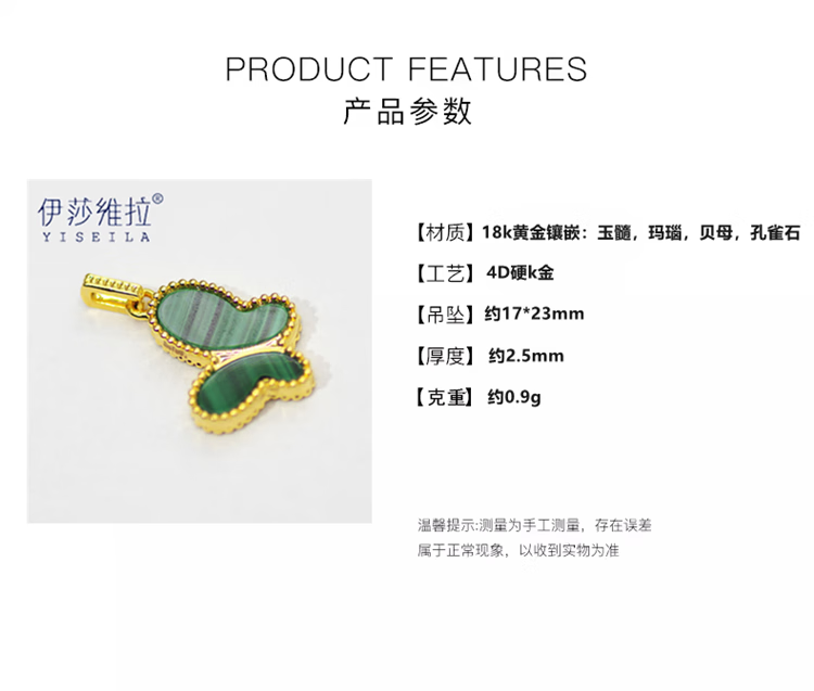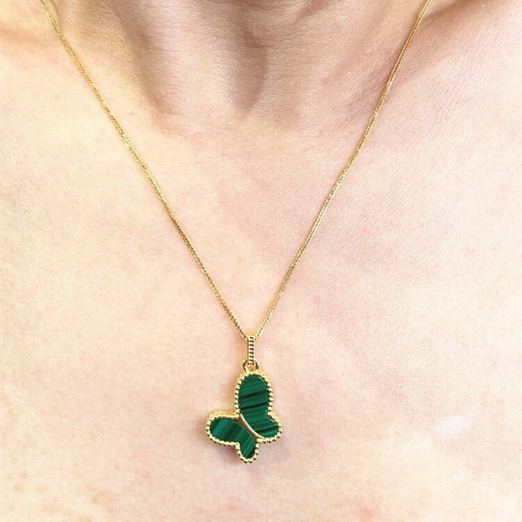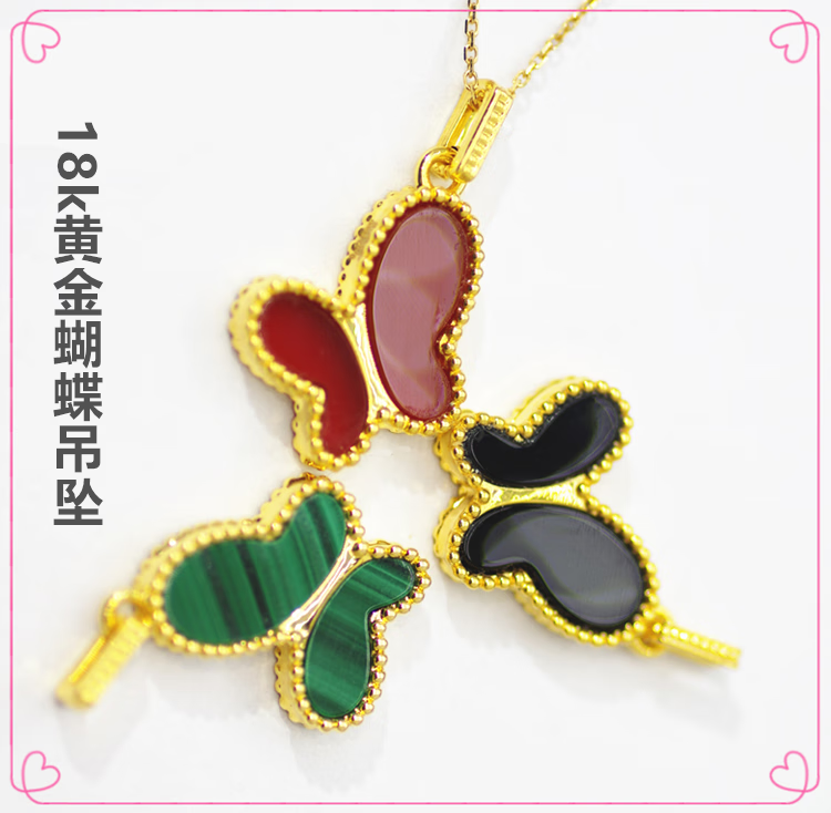 Issa Vera 18K gold butterfly pendant au750 color gold chalcedony K gold agate pendant white mother-of-pearl pendant 18k gold carnelian butterfly pendant about 0.9 grams