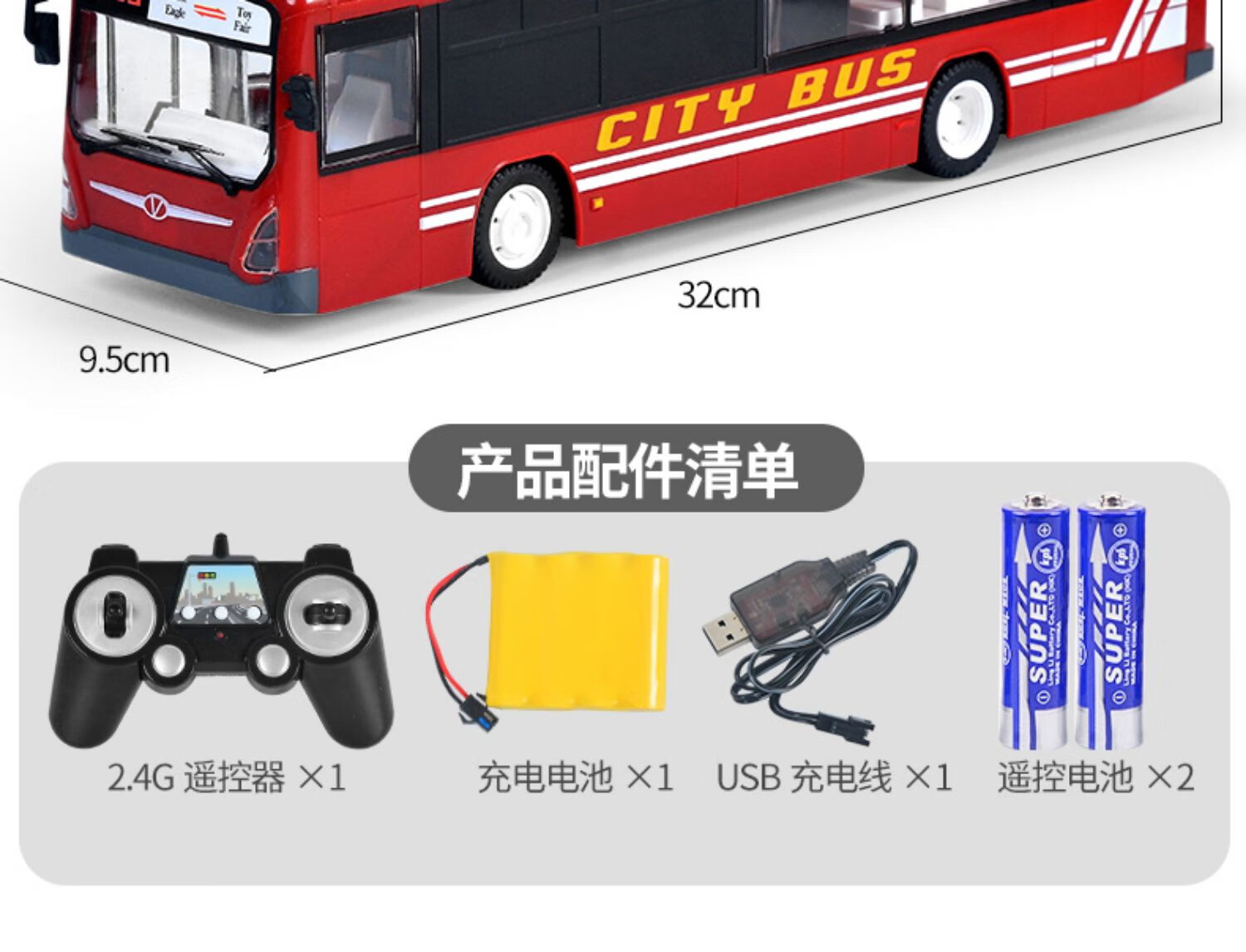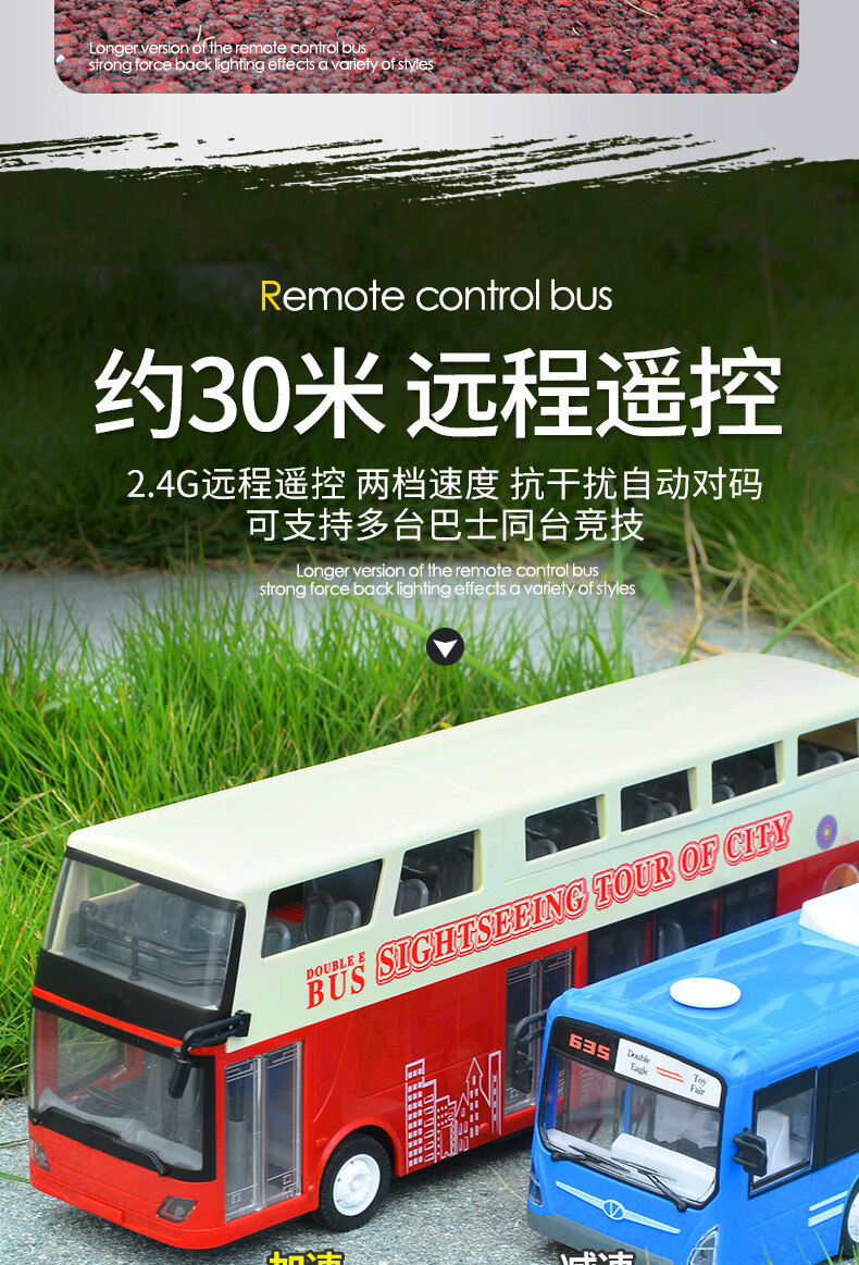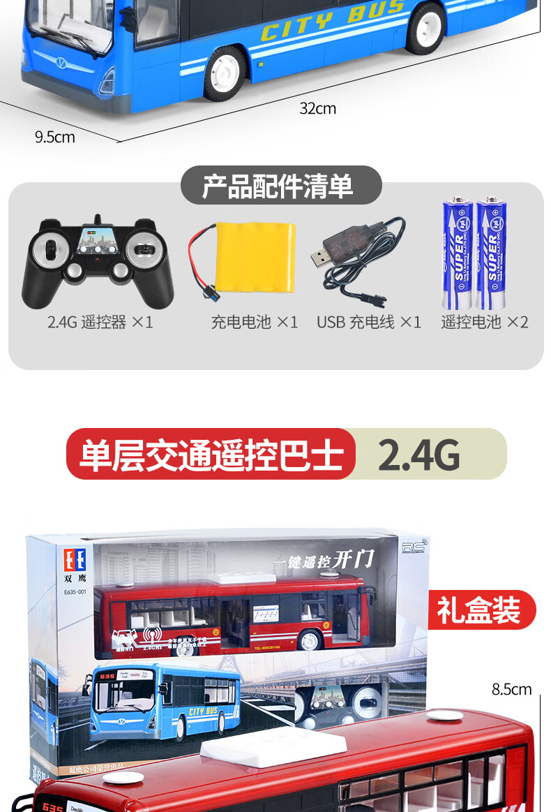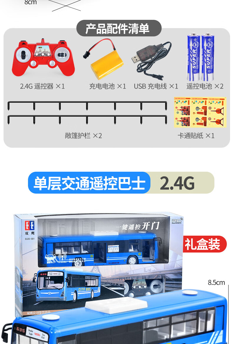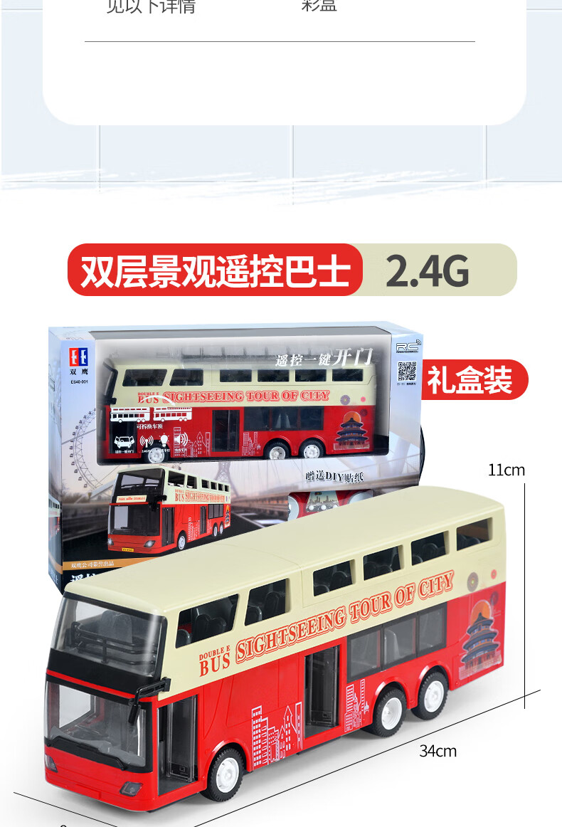 Double Eagle Double Eagle Remote Control Bus Toy Large Bus Double Decker Bus Simulation Model Children's Electric Bus 33cm Blue Single Decker Bus Standard Edition (One Battery)