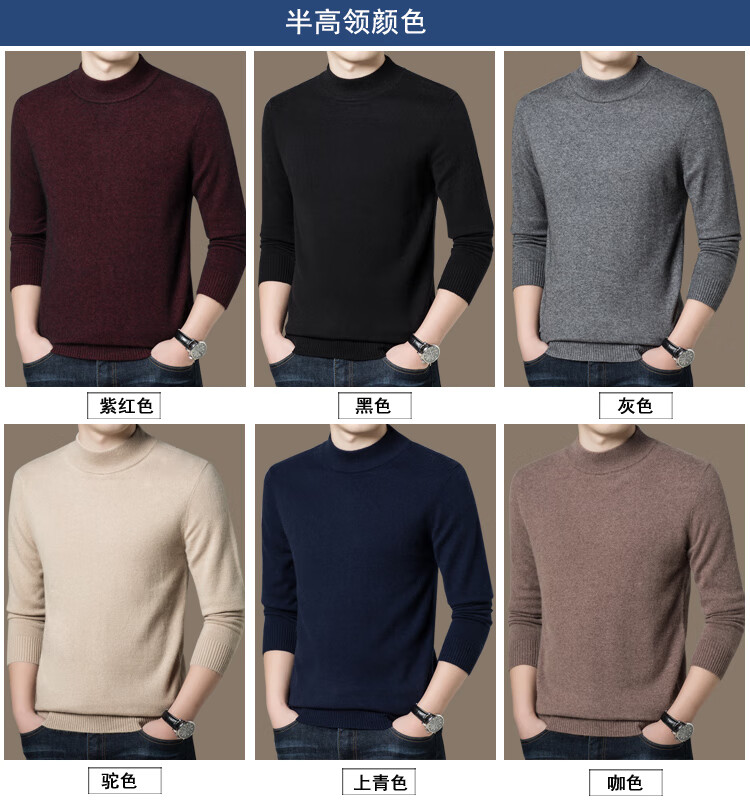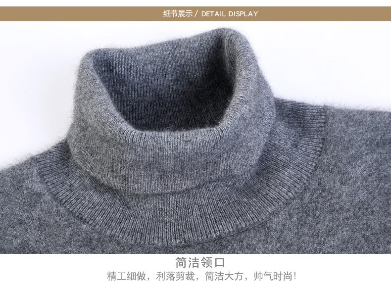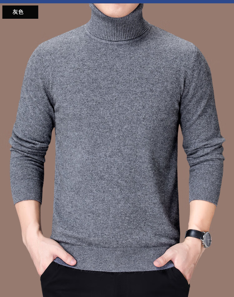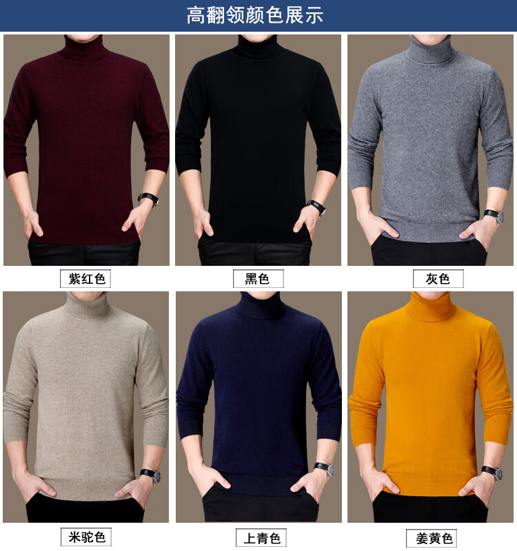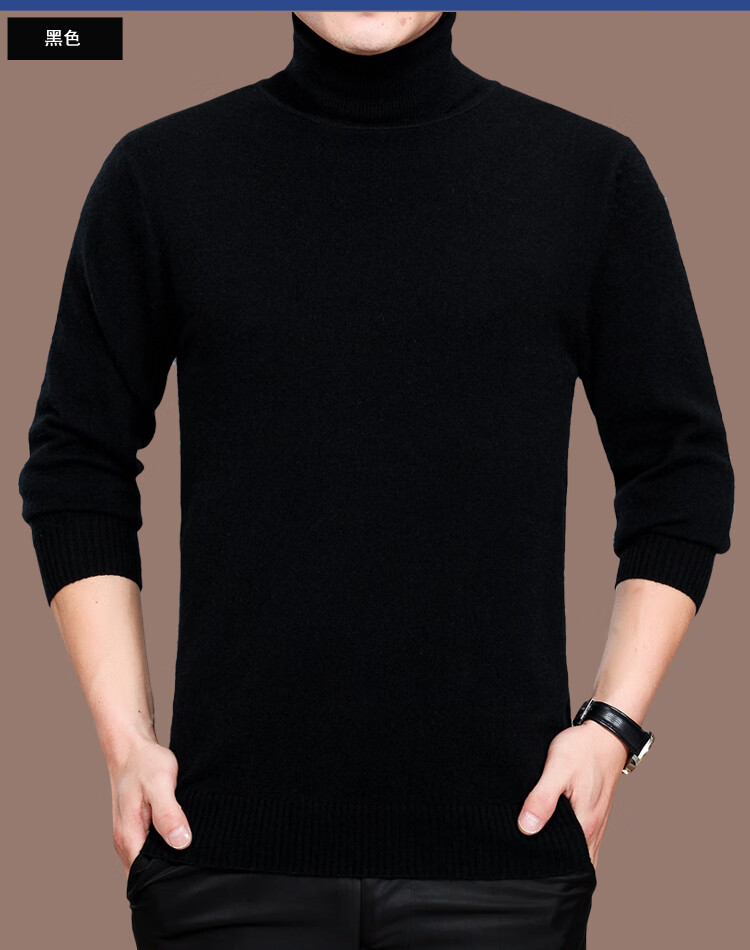 Hengyuanxiang Turtleneck Men's Wool Sweater 100 Pure Wool Knitted Bottoming Sweater Thickened Warmth Autumn and Winter Turtleneck - Black L 175 Size Suitable for 140-155 Jin Jin equals 0.5 kg