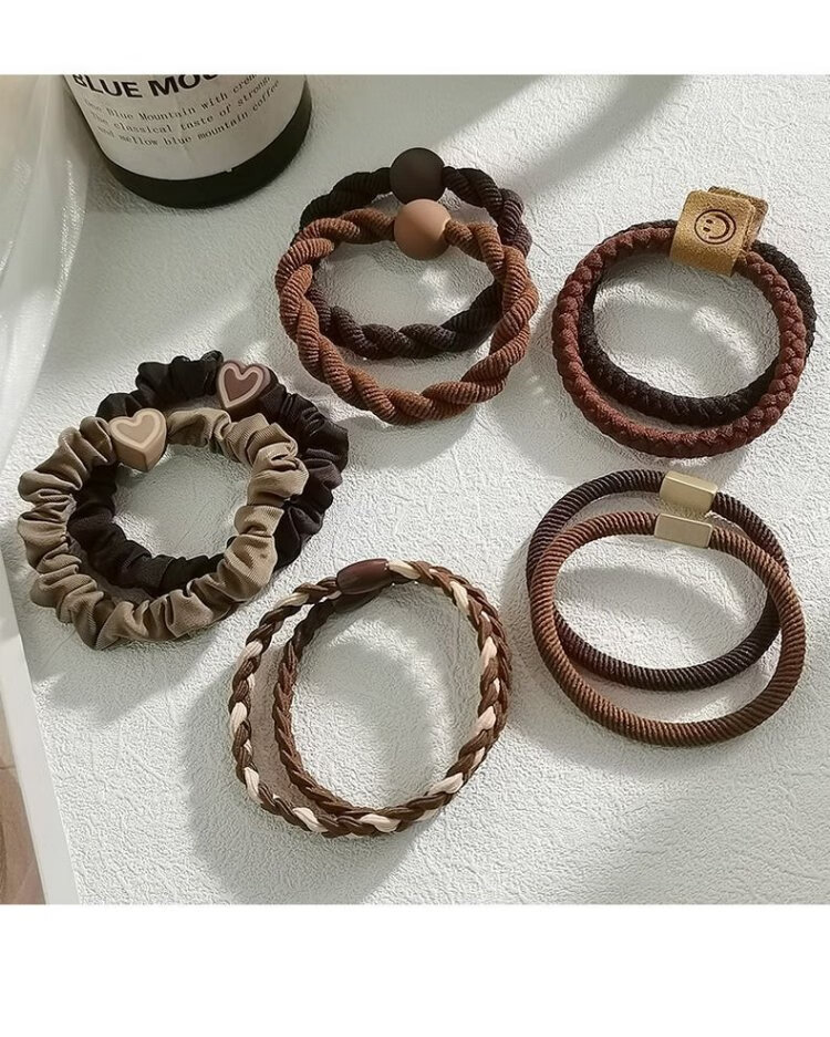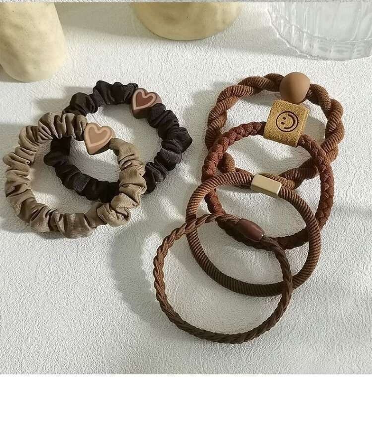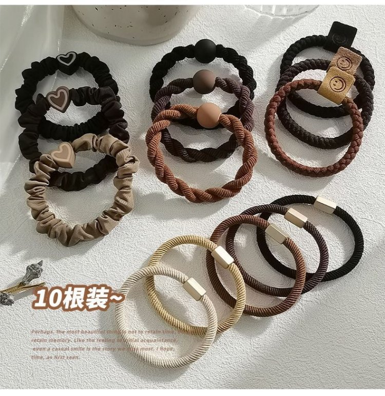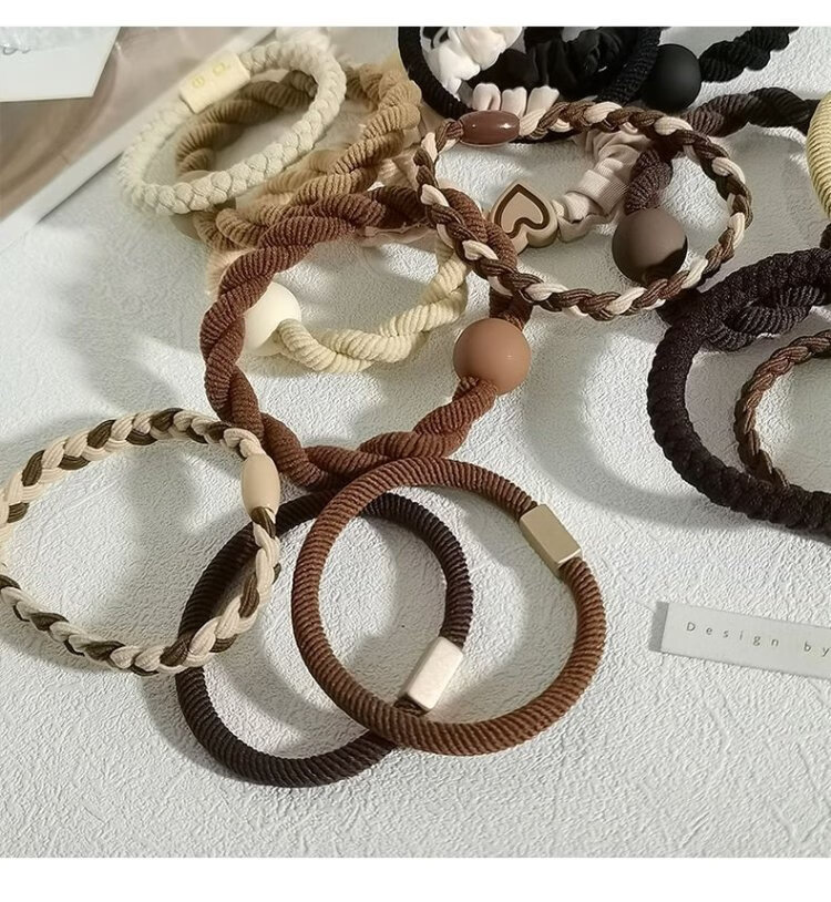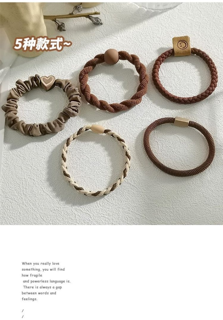 Jisenjia Hair Band High Elasticity Hair Rope Simple Temperament Head Rope Durable Rubber Band Girls' Head High Ponytail Headwear Black 5-piece Set
