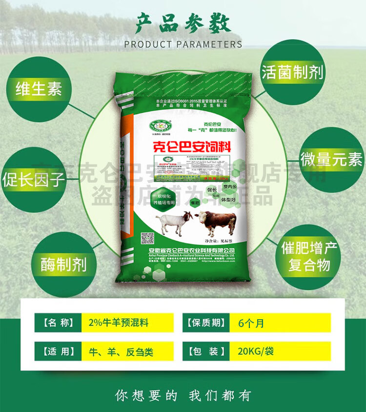 Kelunbaan 2% cattle and sheep premix fattening beef cattle fattening feed calf fattening beef cattle and sheep skeleton breeding cows