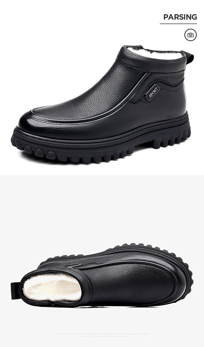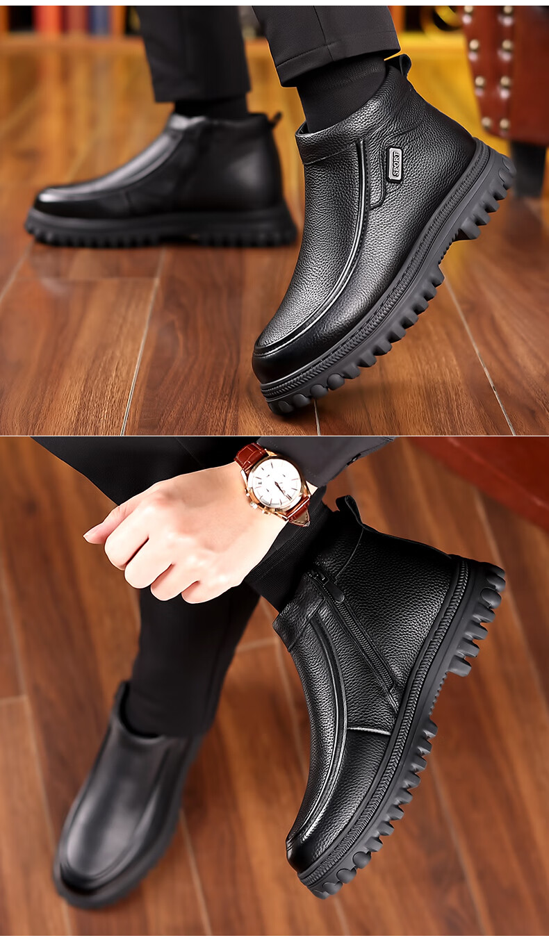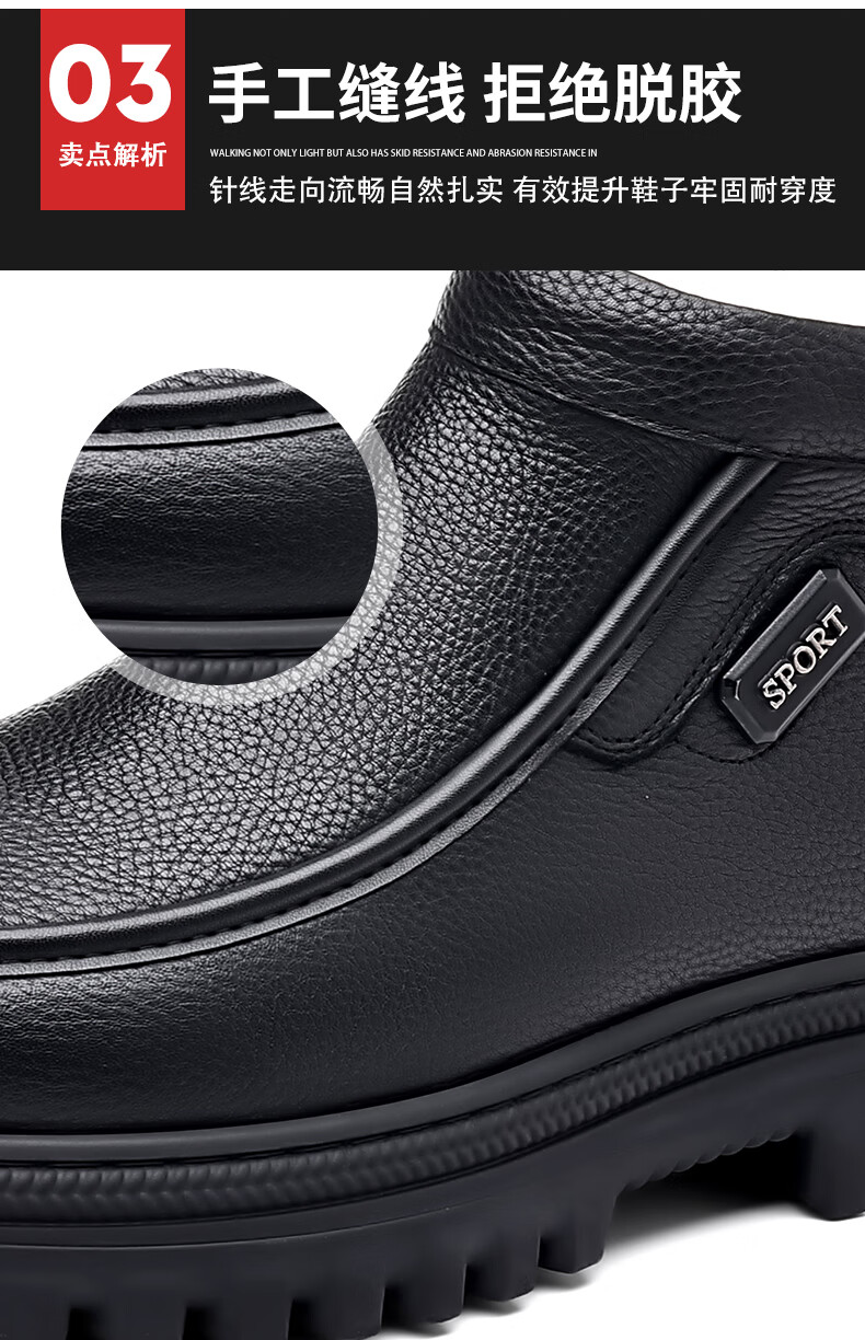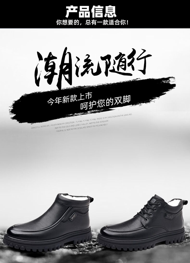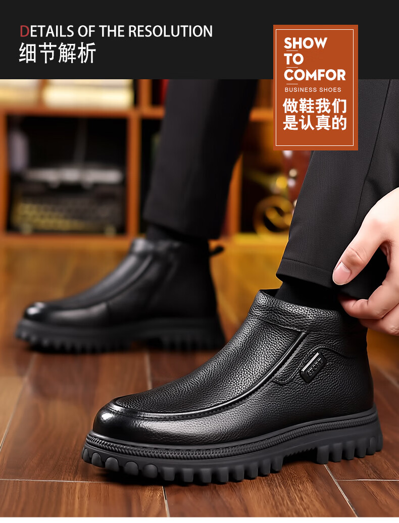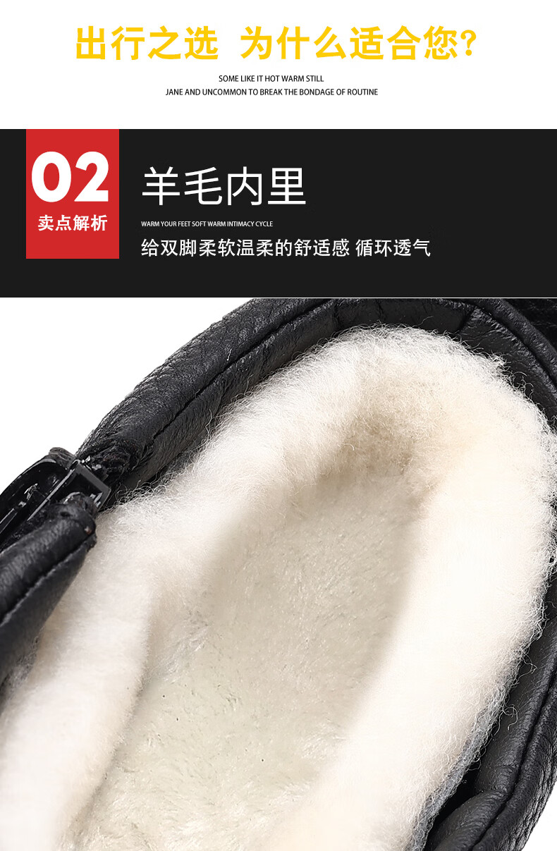 Woodpecker head-layer cowhide wool-lined high-top large cotton shoes formal leather shoes for men plus velvet casual warm middle-aged and elderly dad shoes black lace 41 (standard leather shoe size)