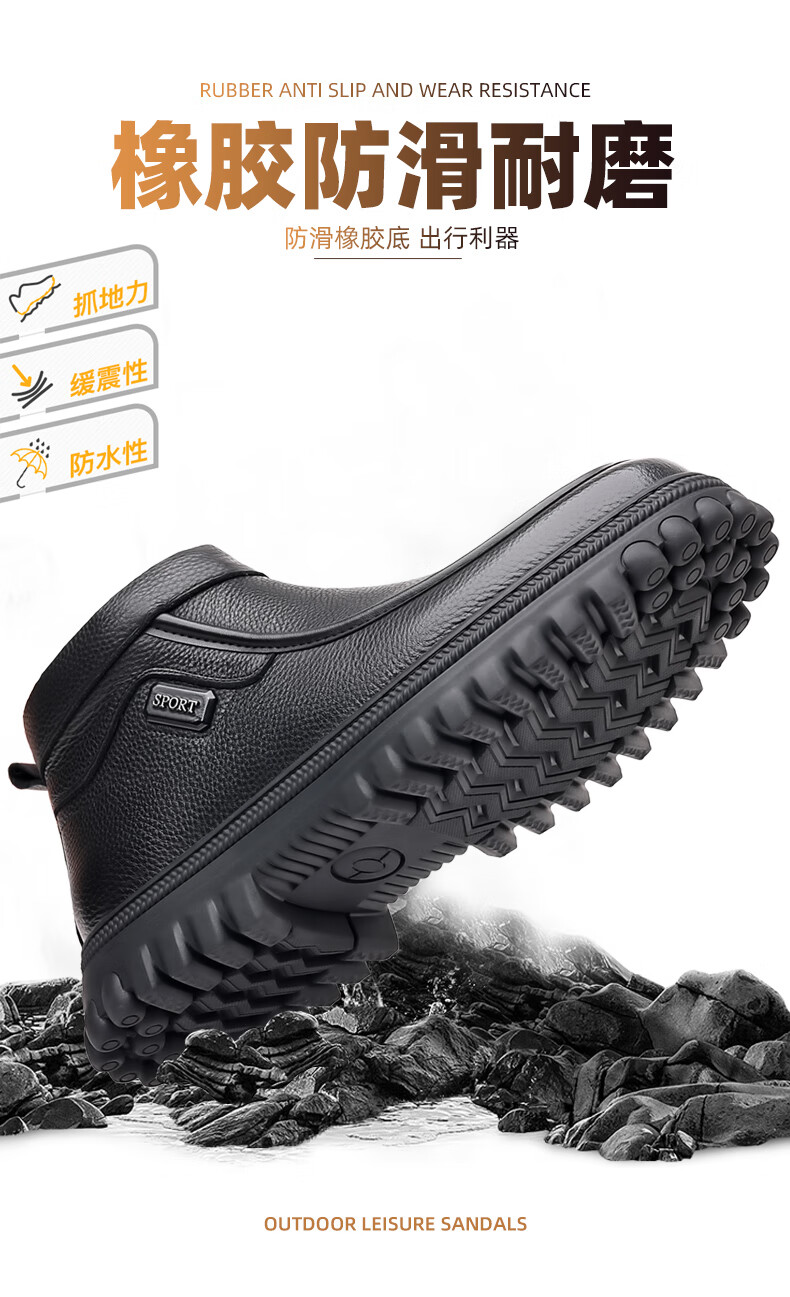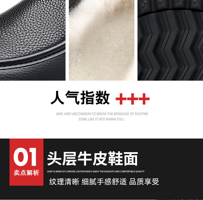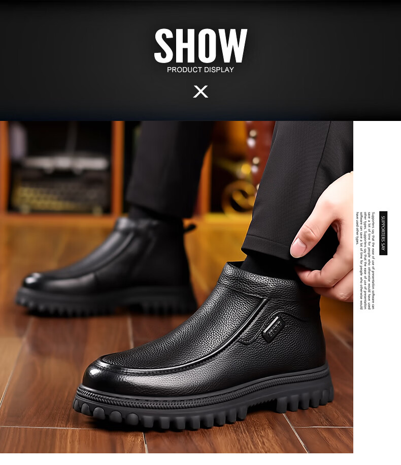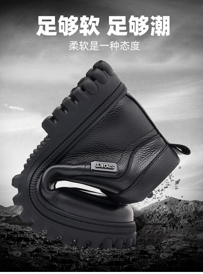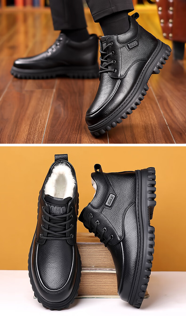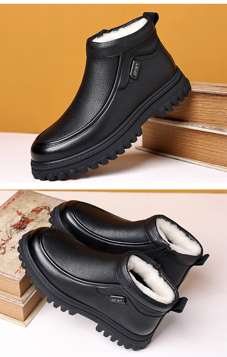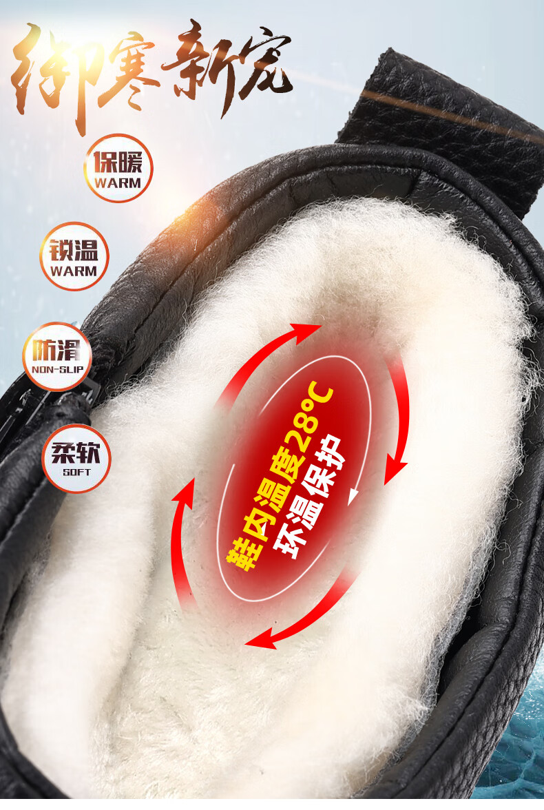 Woodpecker head-layer cowhide wool-lined high-top large cotton shoes formal leather shoes for men plus velvet casual warm middle-aged and elderly dad shoes black lace 41 (standard leather shoe size)