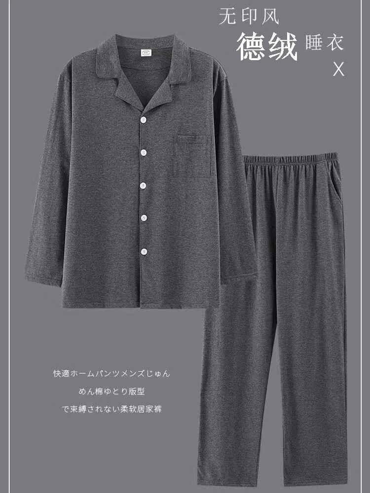 Meijun new pajamas for men and women in autumn and winter brushed German velvet warm lapel long-sleeved casual loose couple unprinted style home clothes dark gray suit men and women same style XXL 140-160Jin Jin is equal to 0.5 kg