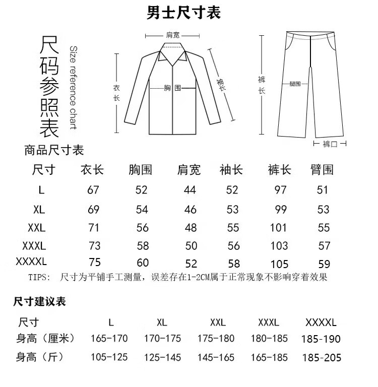China (cm) 165 / 88-90 170 / 96-98 175 / 108-110 180 / 118-122 185 / 126-130