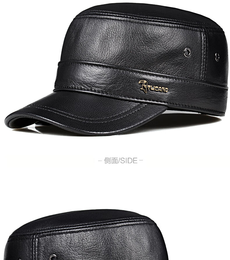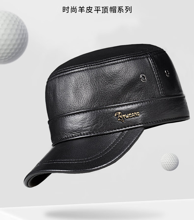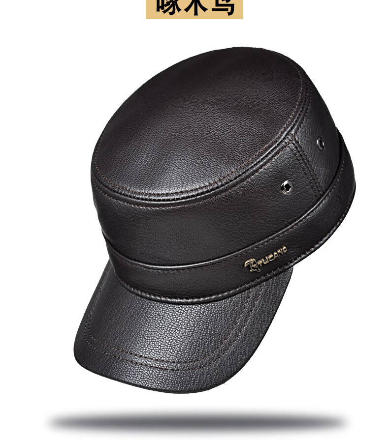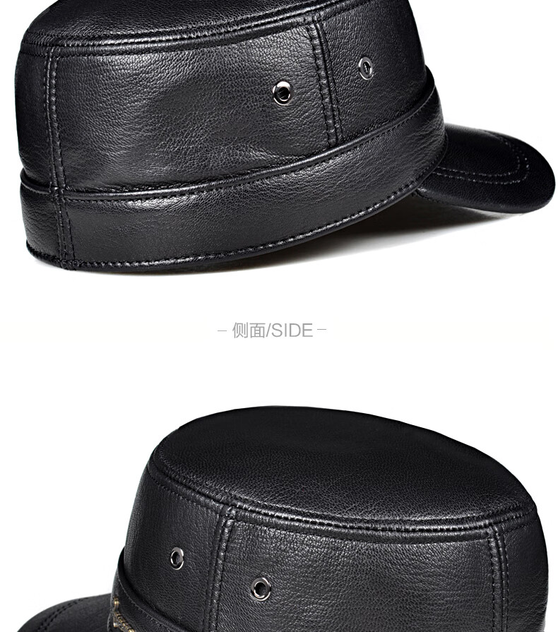 Woodpecker sheepskin hat men's autumn and winter genuine leather hat men's duck tongue flat cap for middle-aged and elderly people warm and cotton-fashionable seal black sheepskin thin style (no ear protection) XXL (59-60cm) small internal adjustment