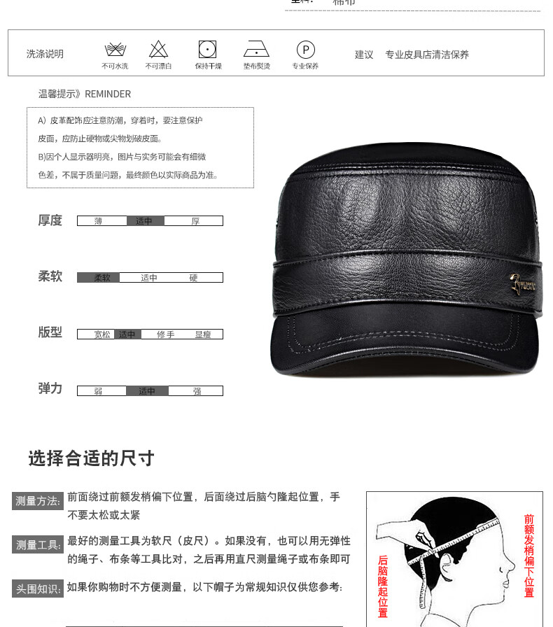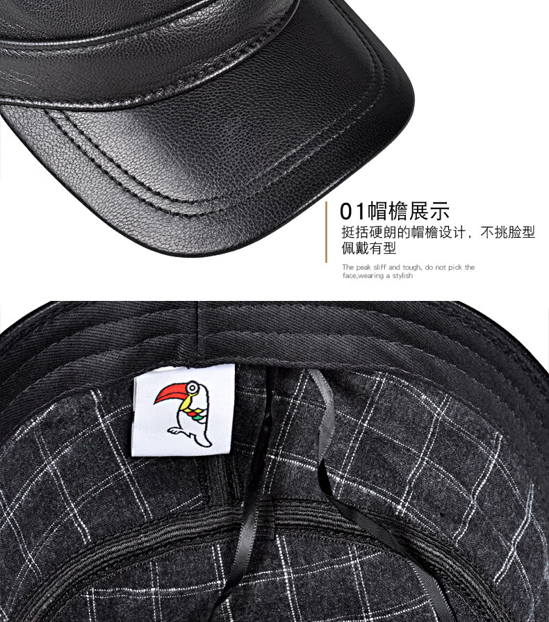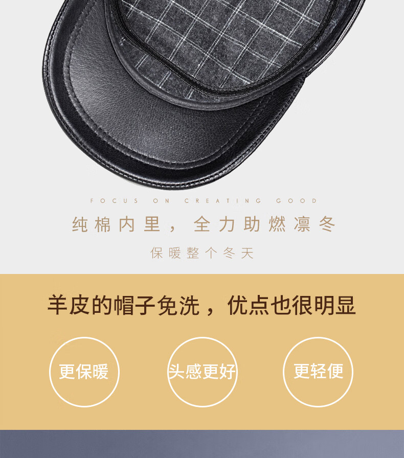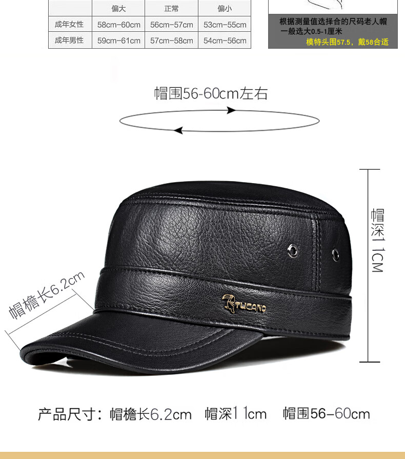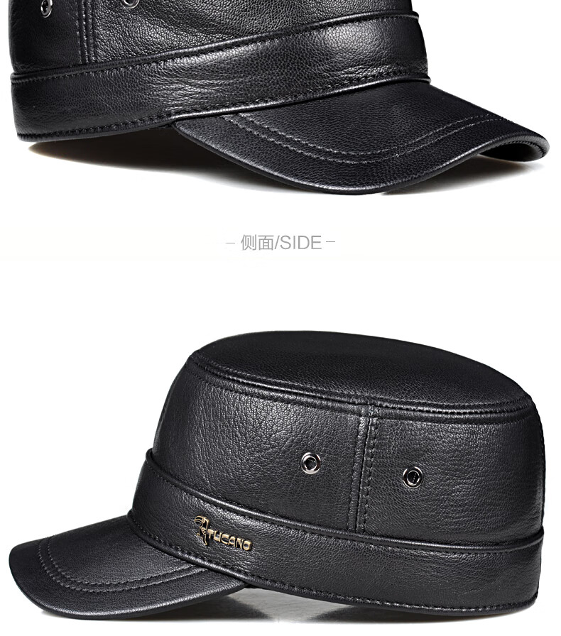Woodpecker sheepskin hat men's autumn and winter genuine leather hat men's duck tongue flat cap for middle-aged and elderly people warm and cotton-fashionable seal black sheepskin thin style (no ear protection) XXL (59-60cm) small internal adjustment