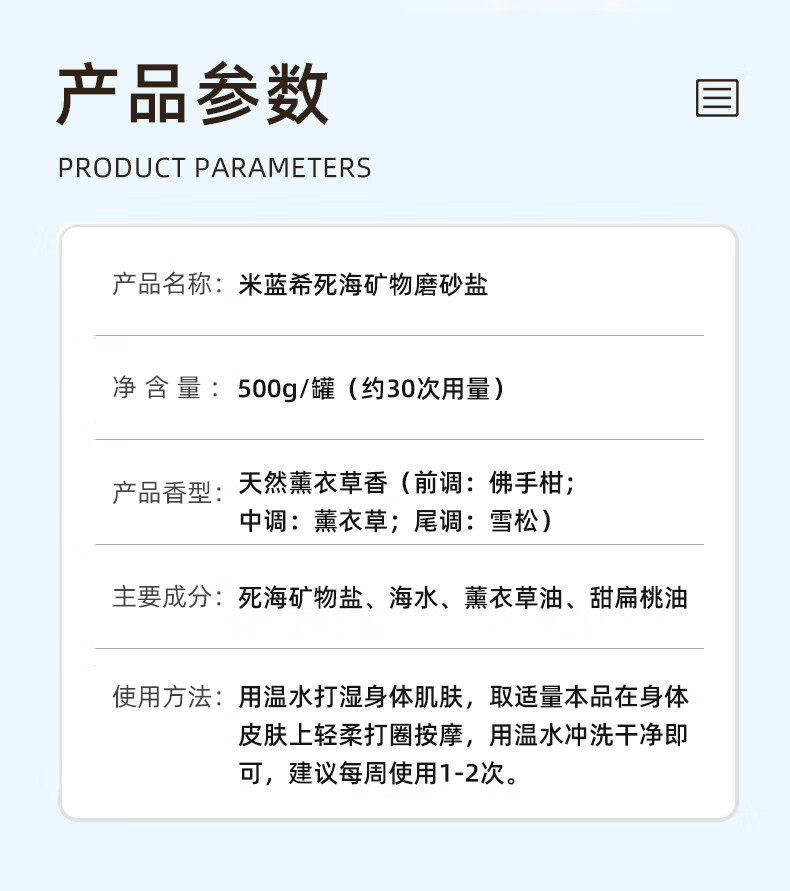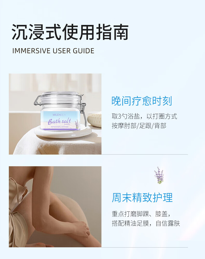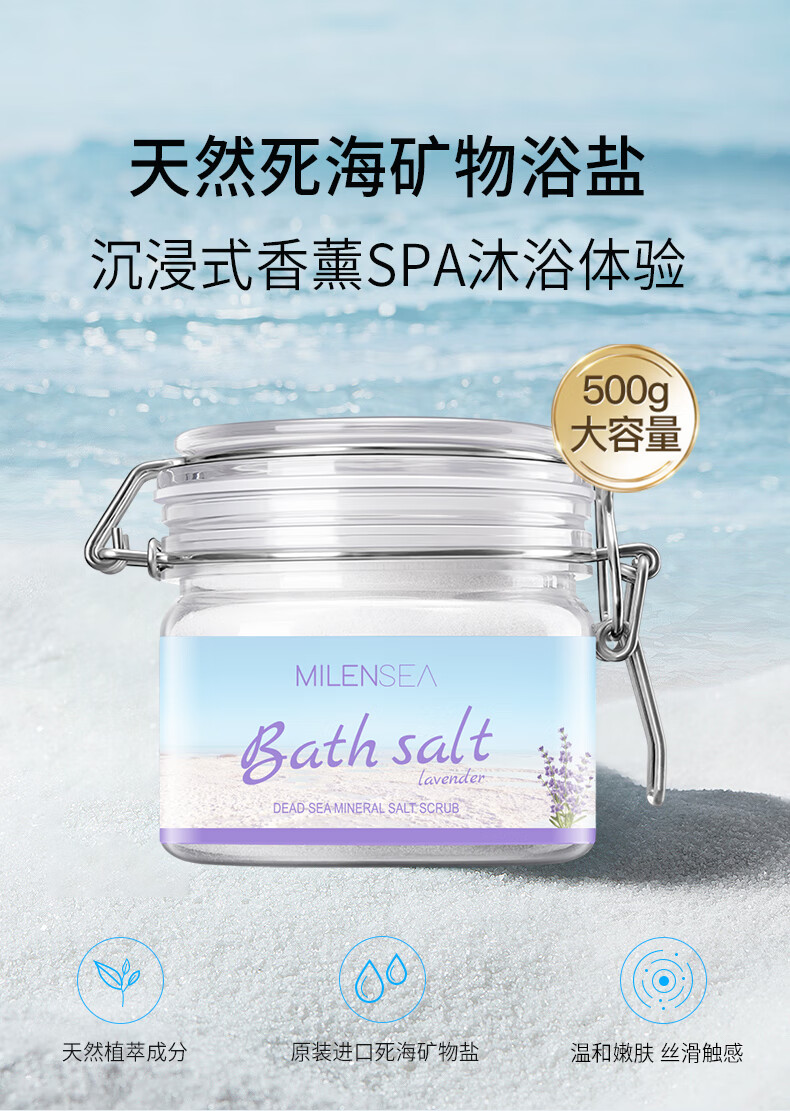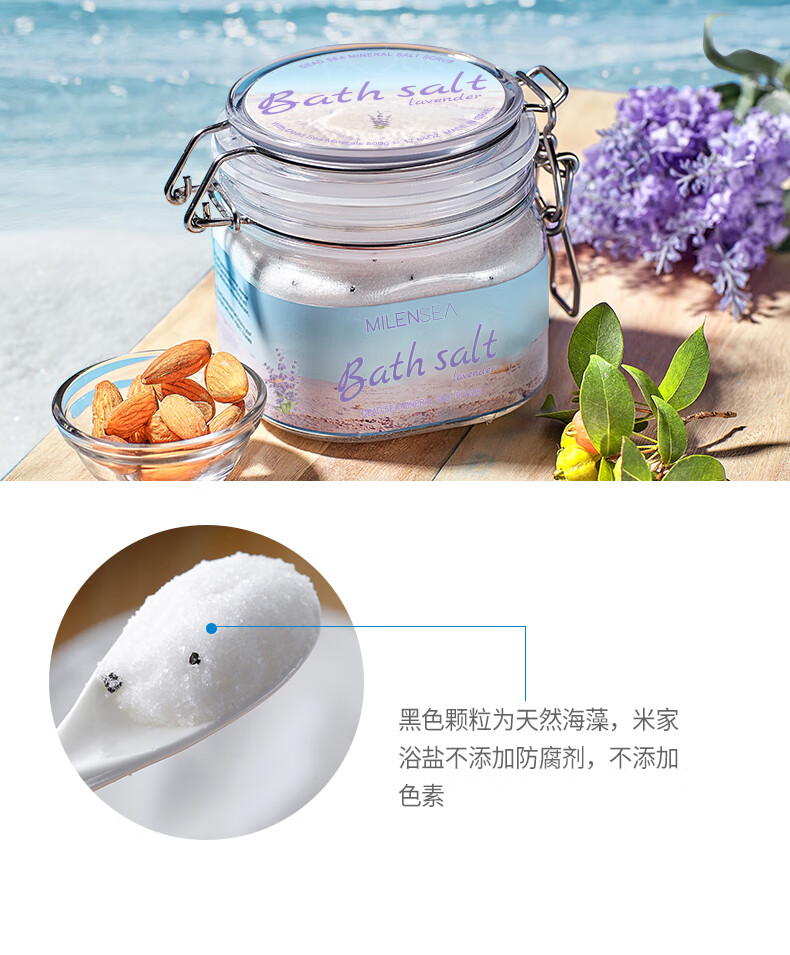 Milanxi imported Dead Sea bath salt body scrub, rub mud, scrub salt, exfoliate, improve rough pimples, tender and smooth skin, lavender bath salt 500g*1 can
