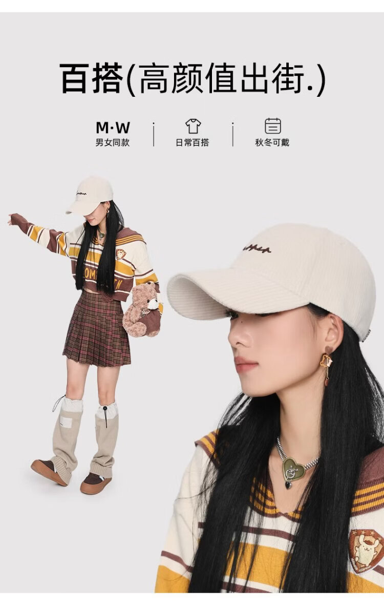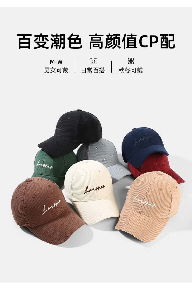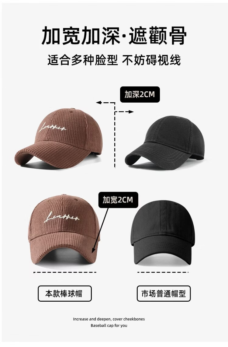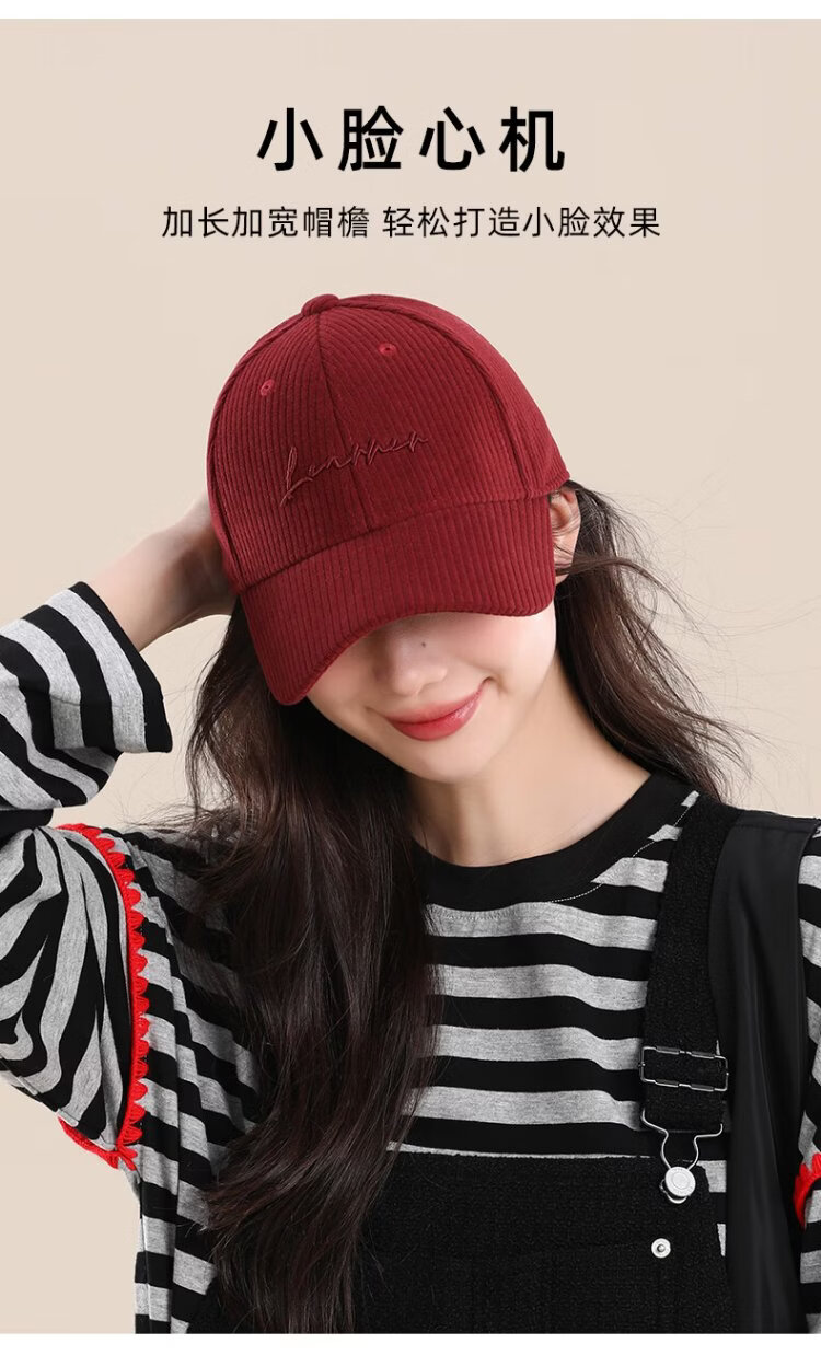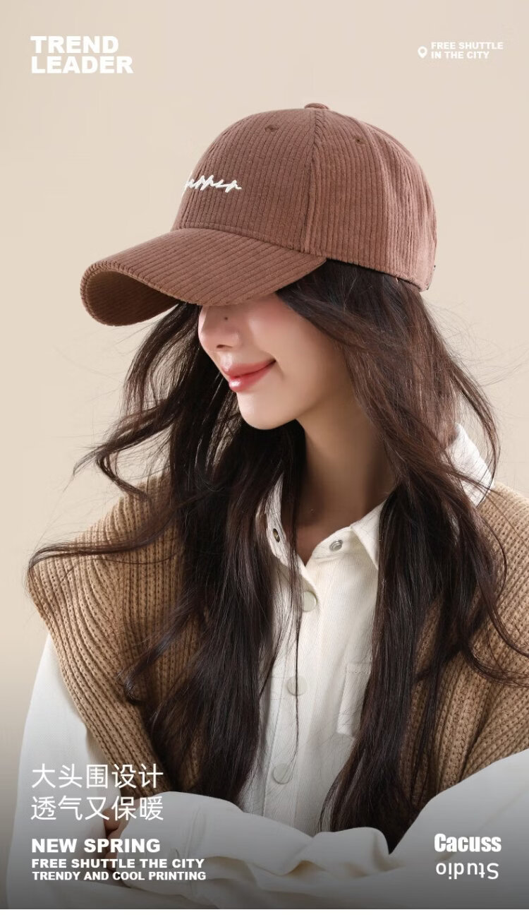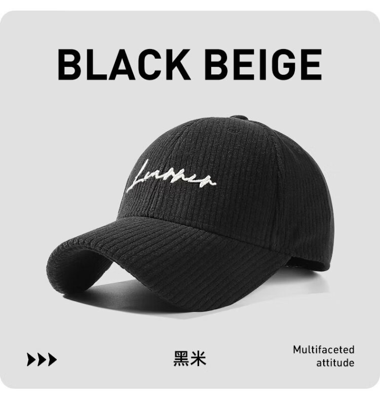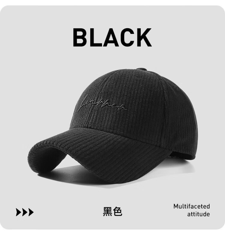 CACUSS hats for men and women in autumn and winter, warm baseball caps with face, small dopamine, versatile peaked caps BQ230696, black, one size fits all, 57-59CM