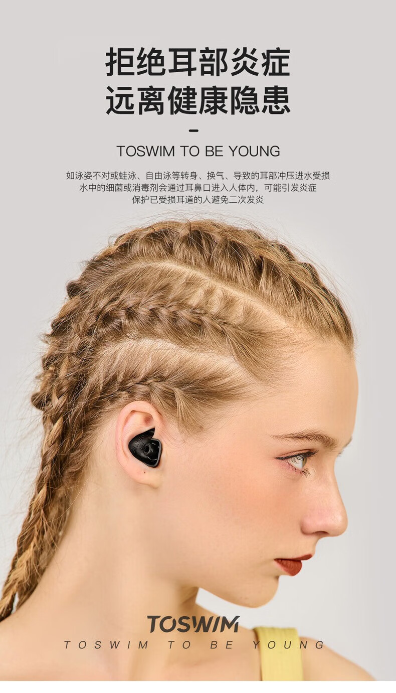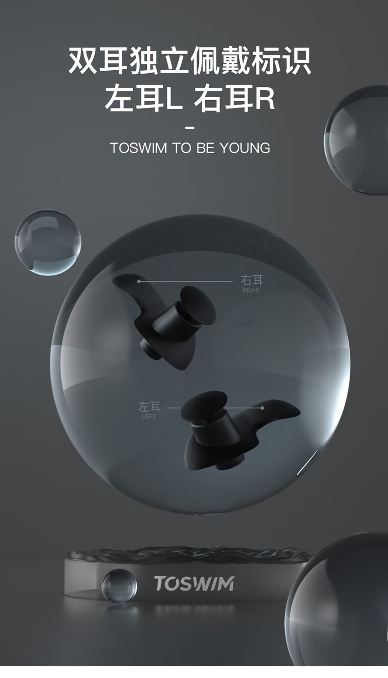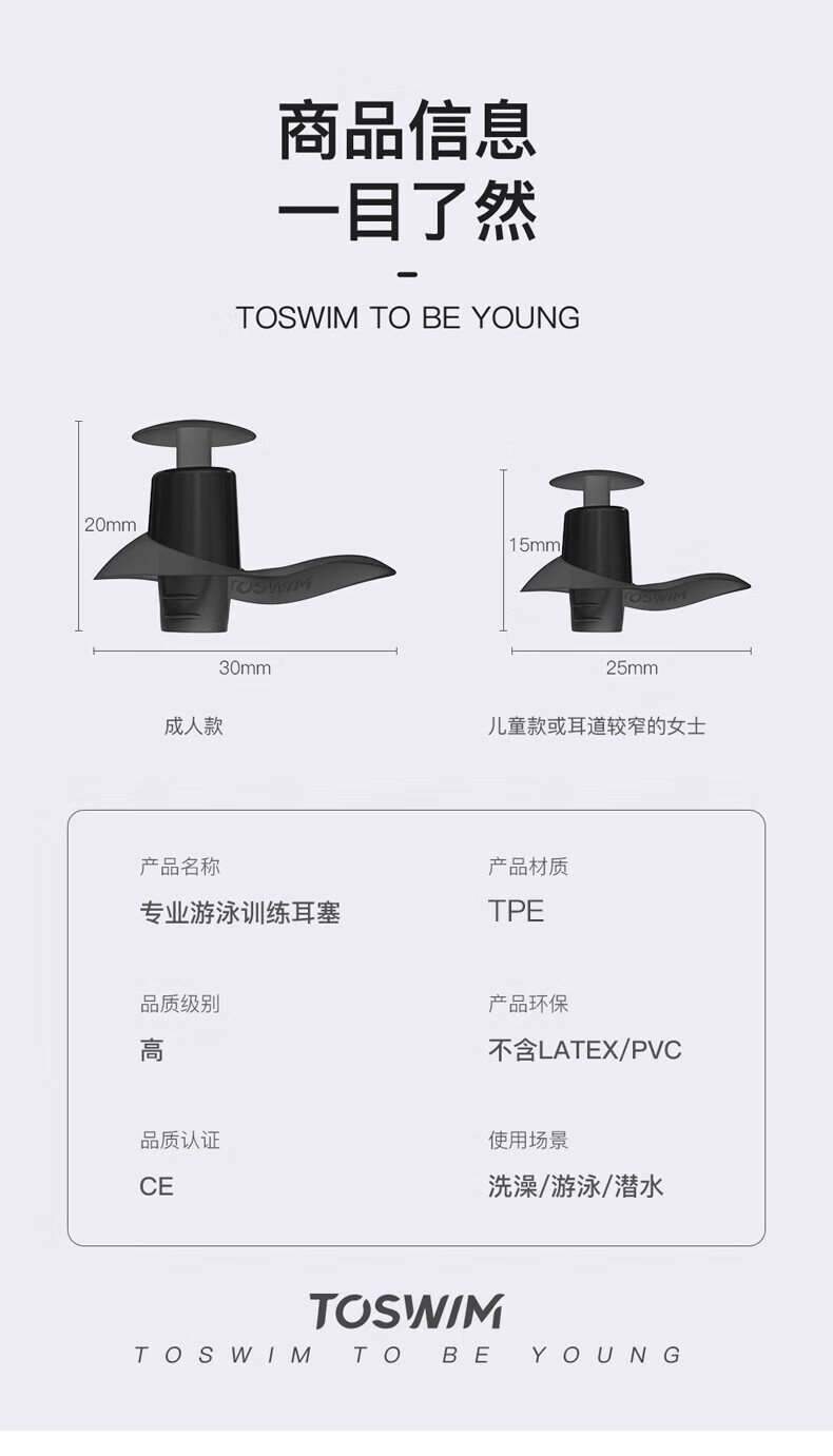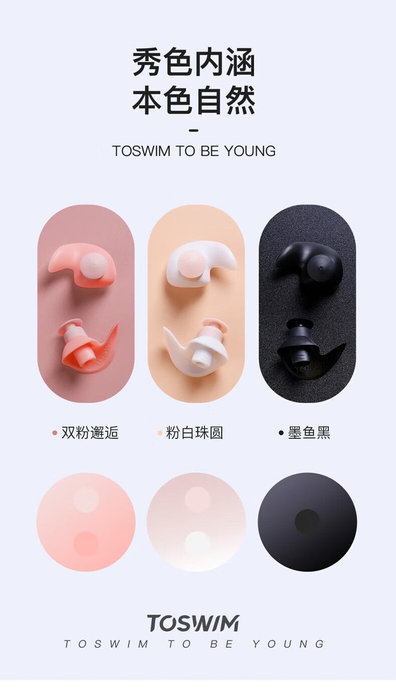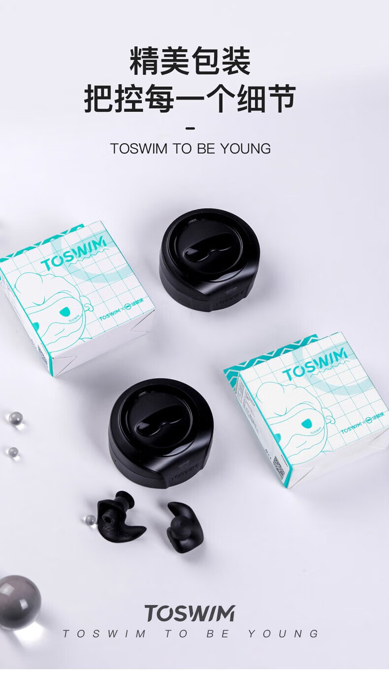 TOSWIM Tuosheng swimming earplugs are soft, comfortable, medium and waterproof, professional otitis bathing essential swimming equipment, cuttlefish black earplugs + - dark nose clip