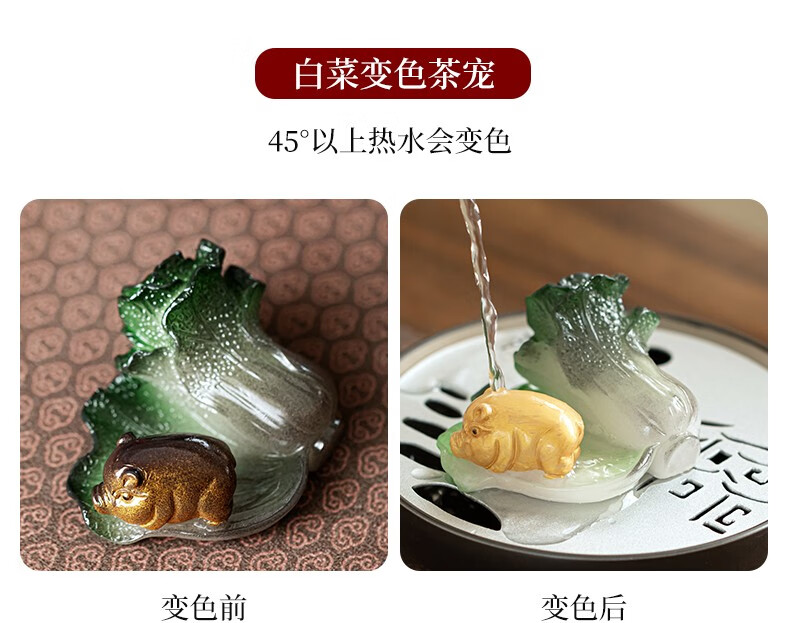 Tao Yu color-changing cabbage tea pet ornaments home tea table tea table decorations tea art small tea play kung fu tea set accessories Lucky pig fortune-changing tea pet