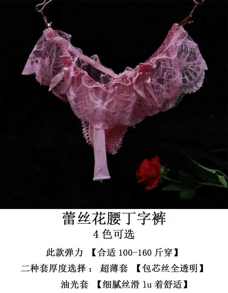 European and American sexy lace thong men's underwear transparent low-waisted seamless temptation bed underwear suspenders red ultra-thin cover jj closed 100-160Jin Jin is equal to 0.5 kg