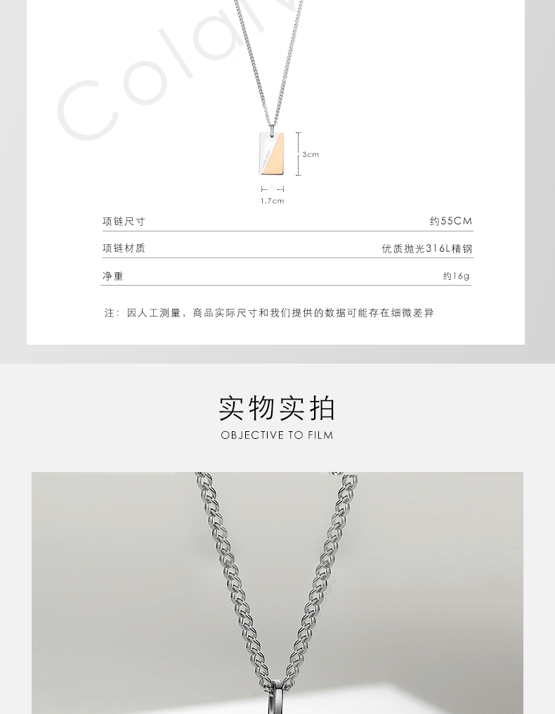 Colaivkloia necklace for men and women, double color matching fashion clavicle chain, titanium steel pendant, Valentine's Day birthday gift for boyfriend and girlfriend XL0108-double color matching necklace