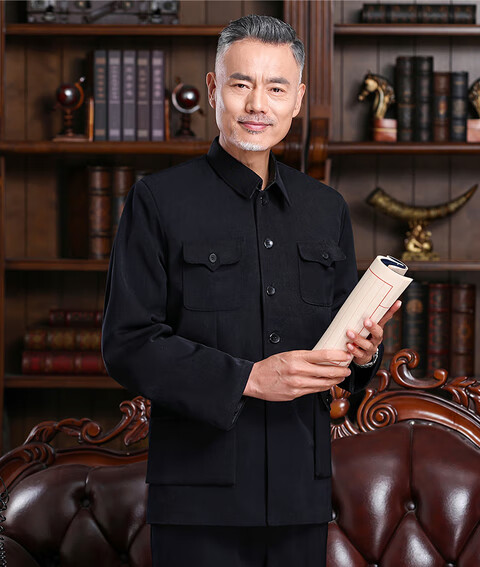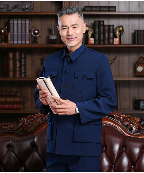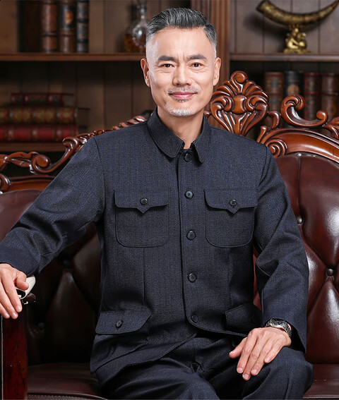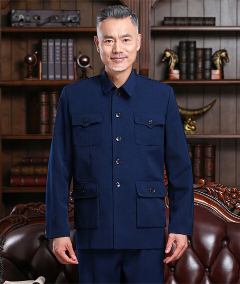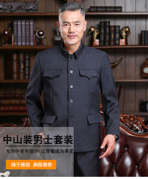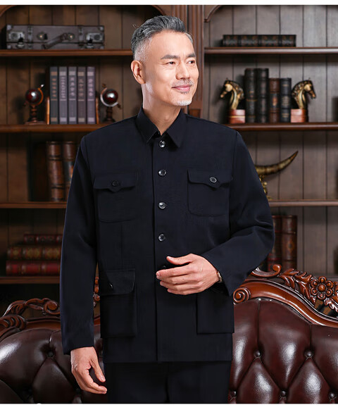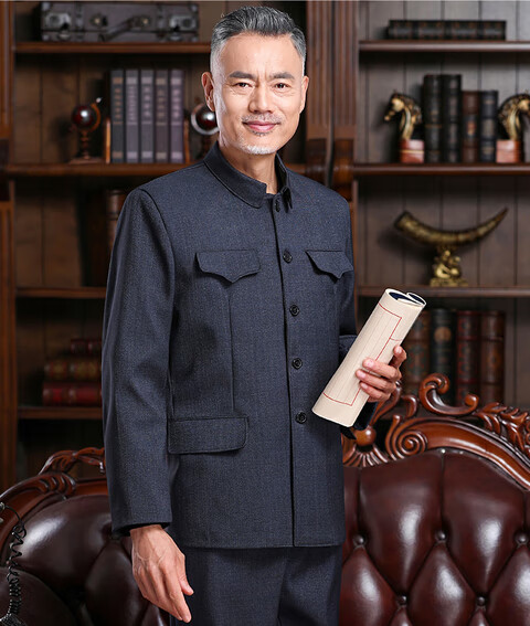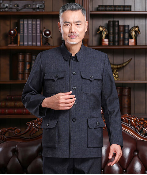 Hengyuanxiang Chinese tunic suit, men's and elderly clothes, autumn and winter old-fashioned Chinese tunic suit, old man's coat, grandpa's outfit, father's outfit, double layer heather gray open pocket top 175/XL 125-140Jin Jin equals 0.5kg wear