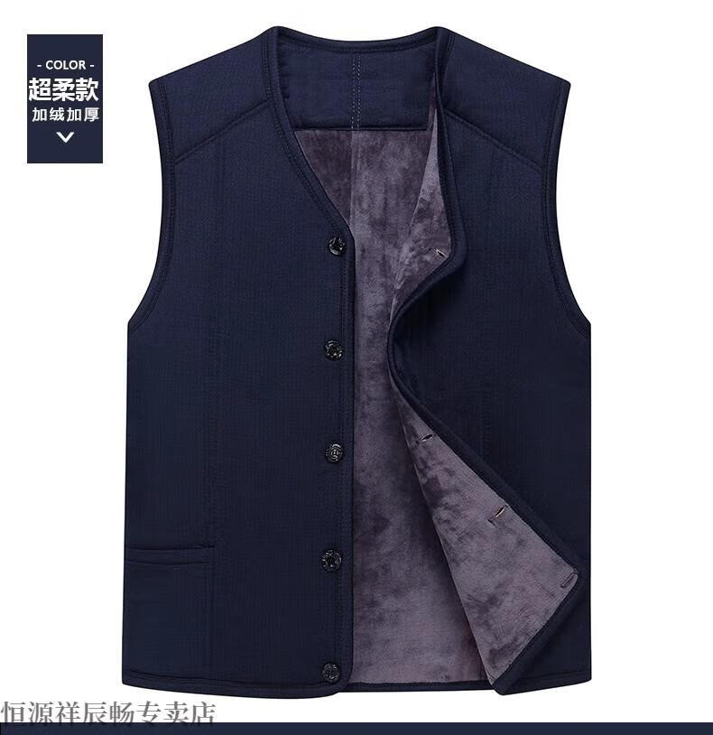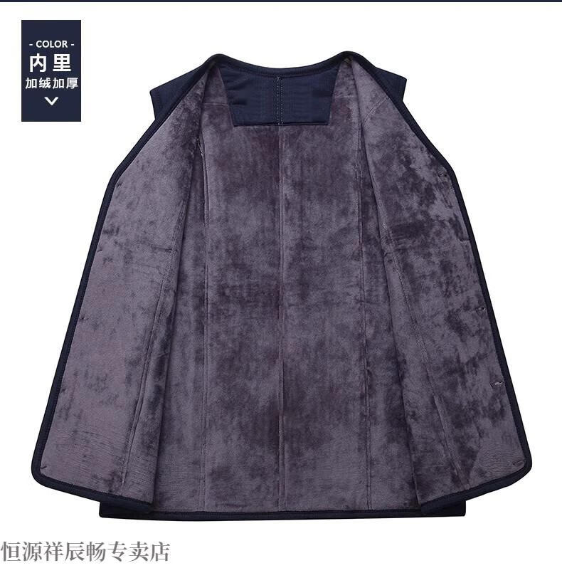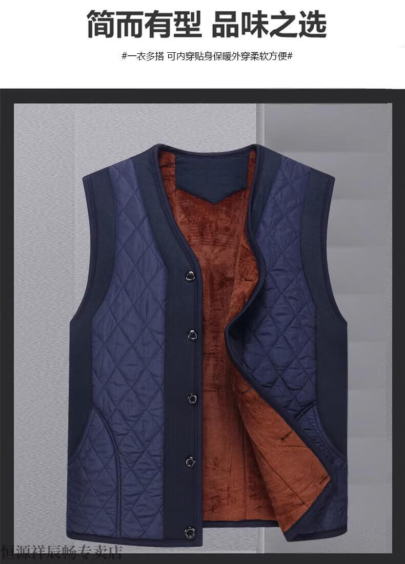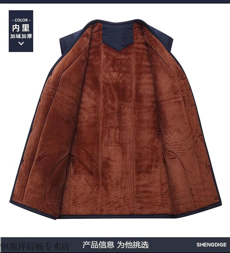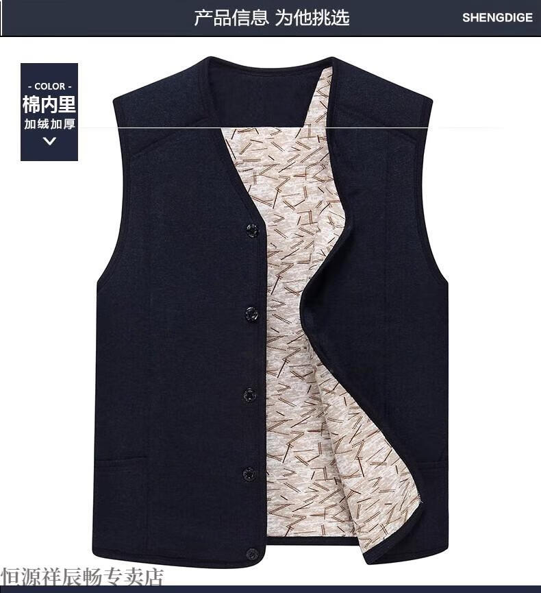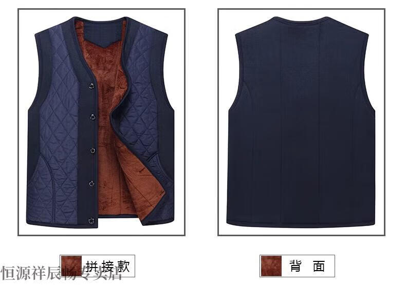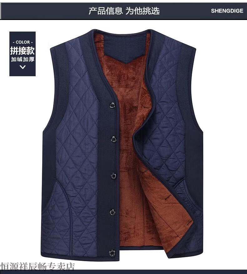 Hengyuanxiang 2025 new autumn and winter new camel hair cotton vest for middle-aged and elderly men, warm and thickened loose waistcoat cotton vest daddy style, spliced style 2XL size recommended 120-140Jin Jin equals 0.5 kg