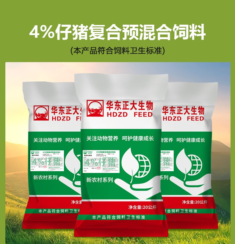 East China Zhengda 4% piglet premix has comprehensive nutrition, good palatability, good feed intake, large skin, red hair, bright hair, no diarrhea, 1 bag