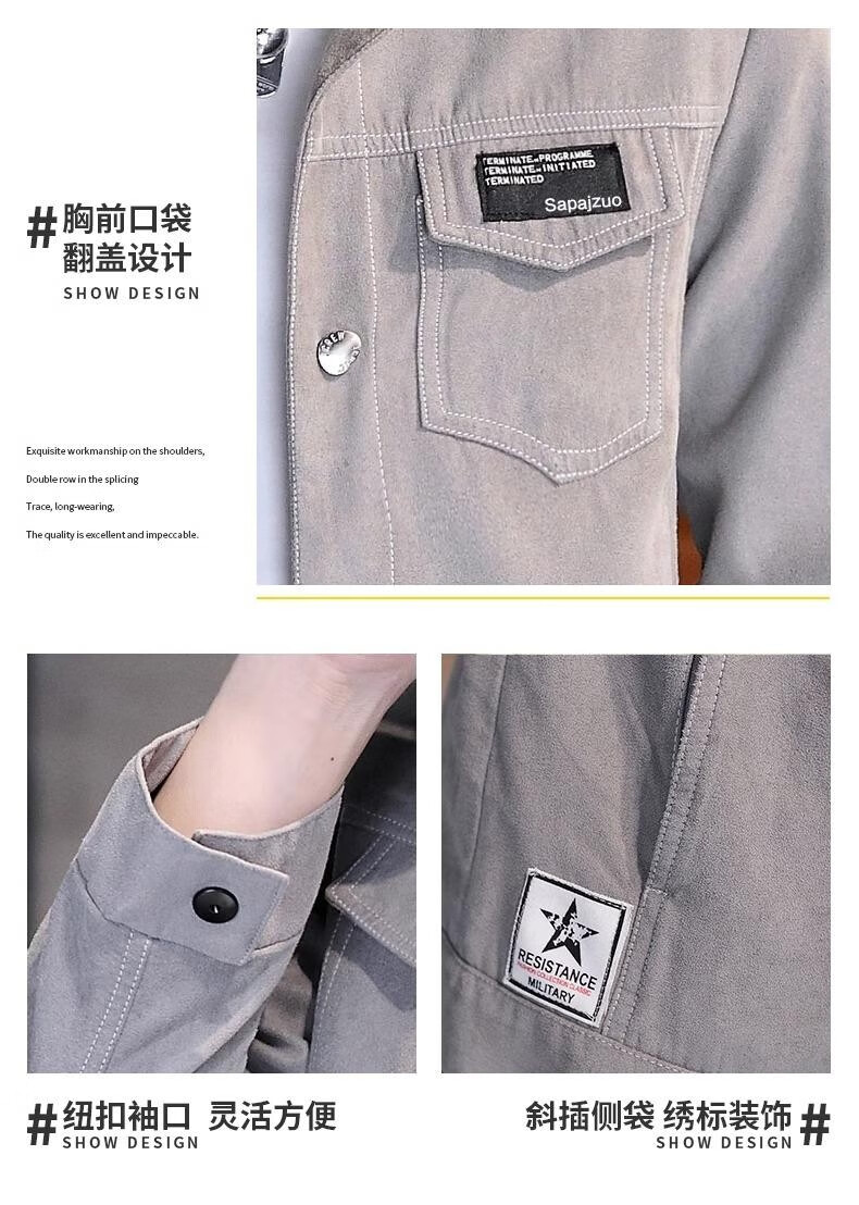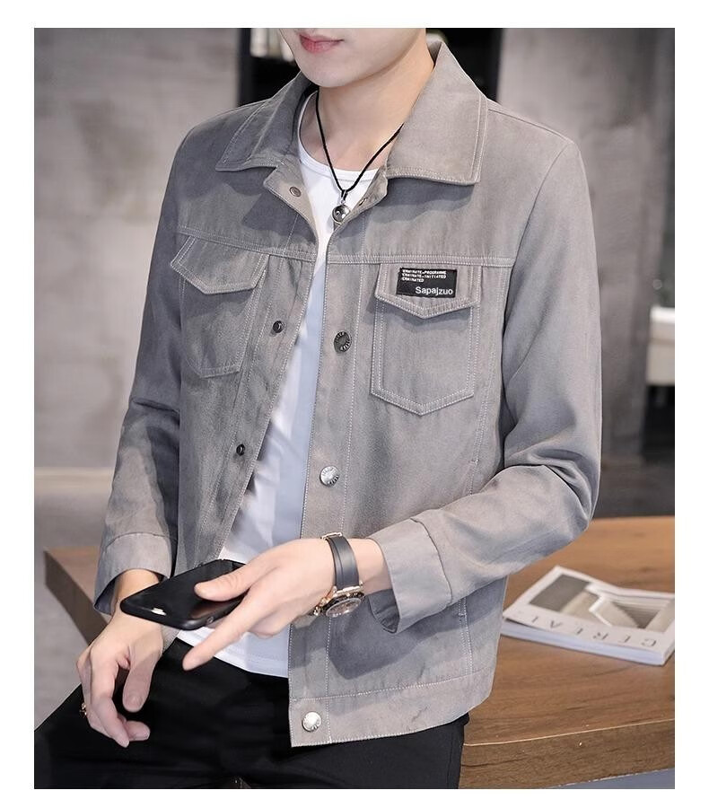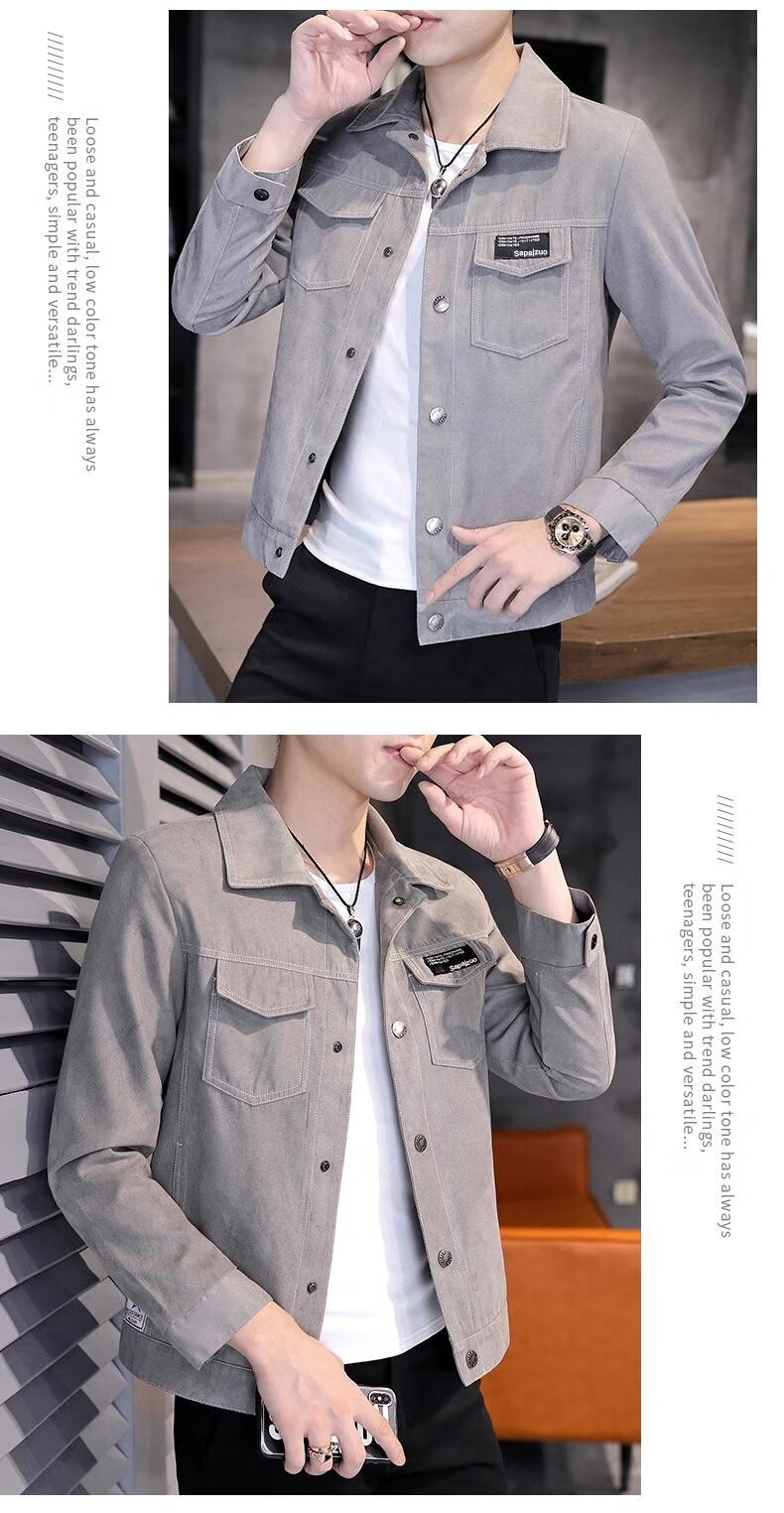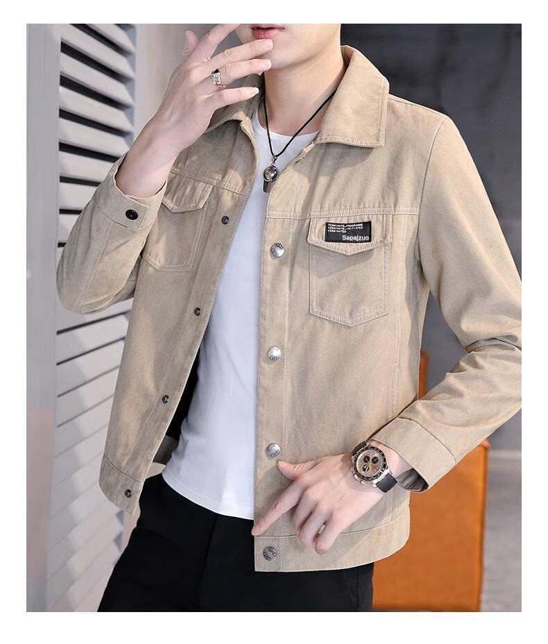 Jeanswest new autumn and winter jacket men's trendy slim fit and versatile top clothes plus velvet thickened casual versatile denim jacket 2008 Khaki Jacket XL 125-140Jin Jin equals 0.5 kg