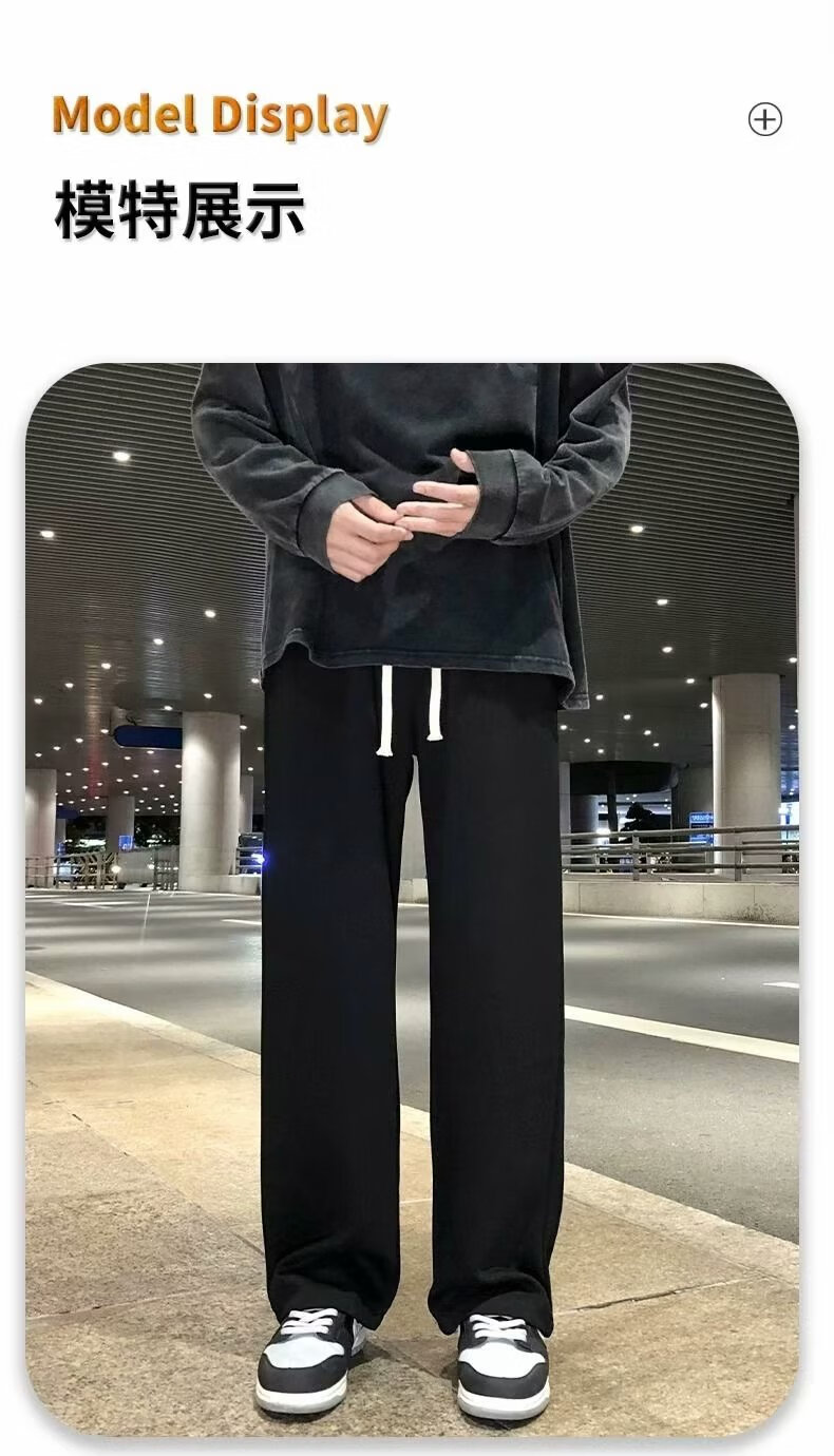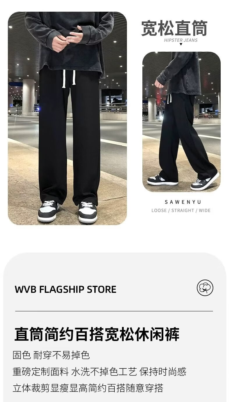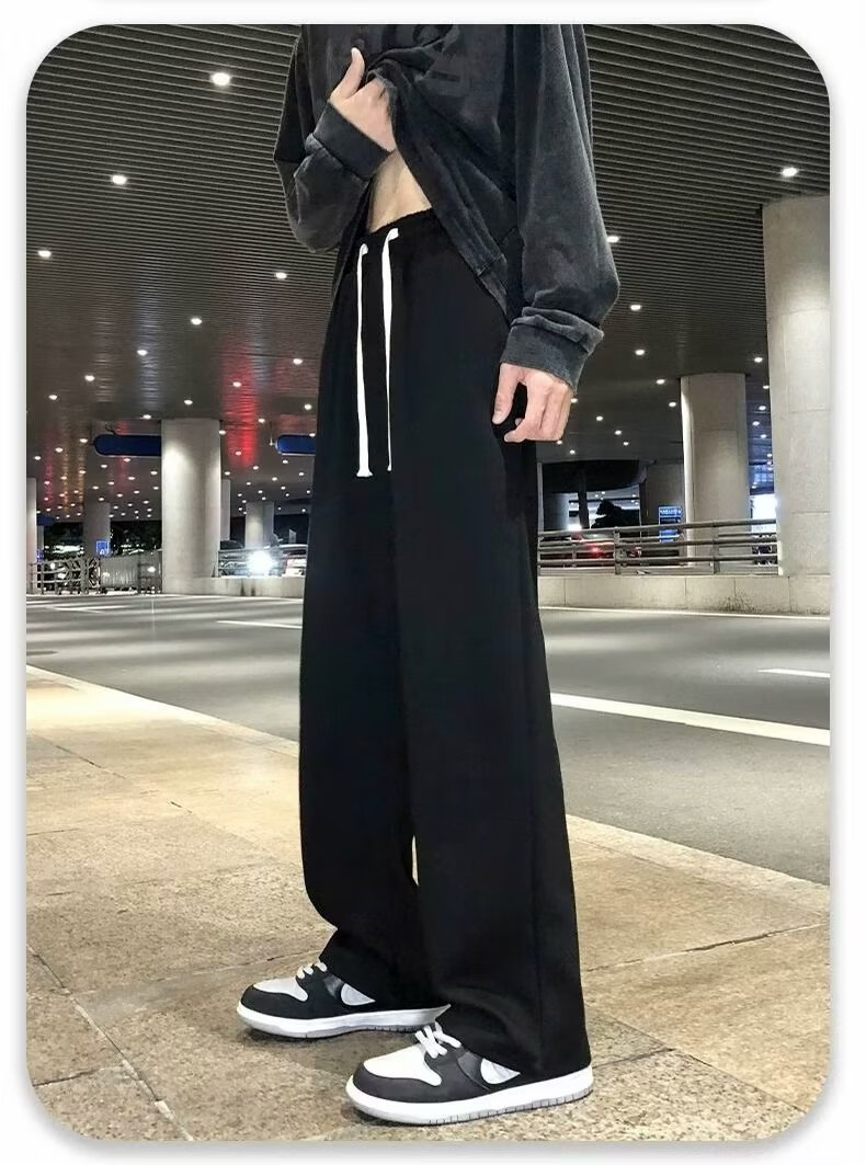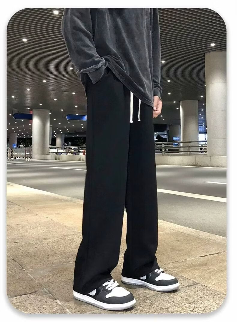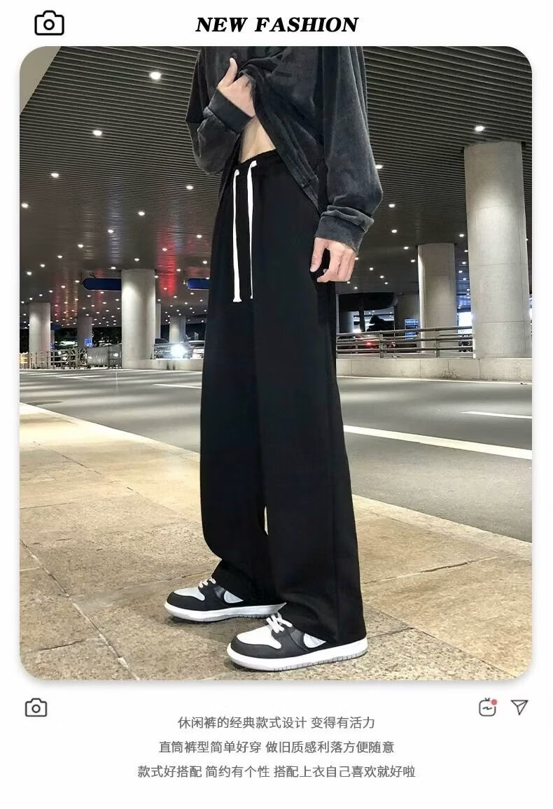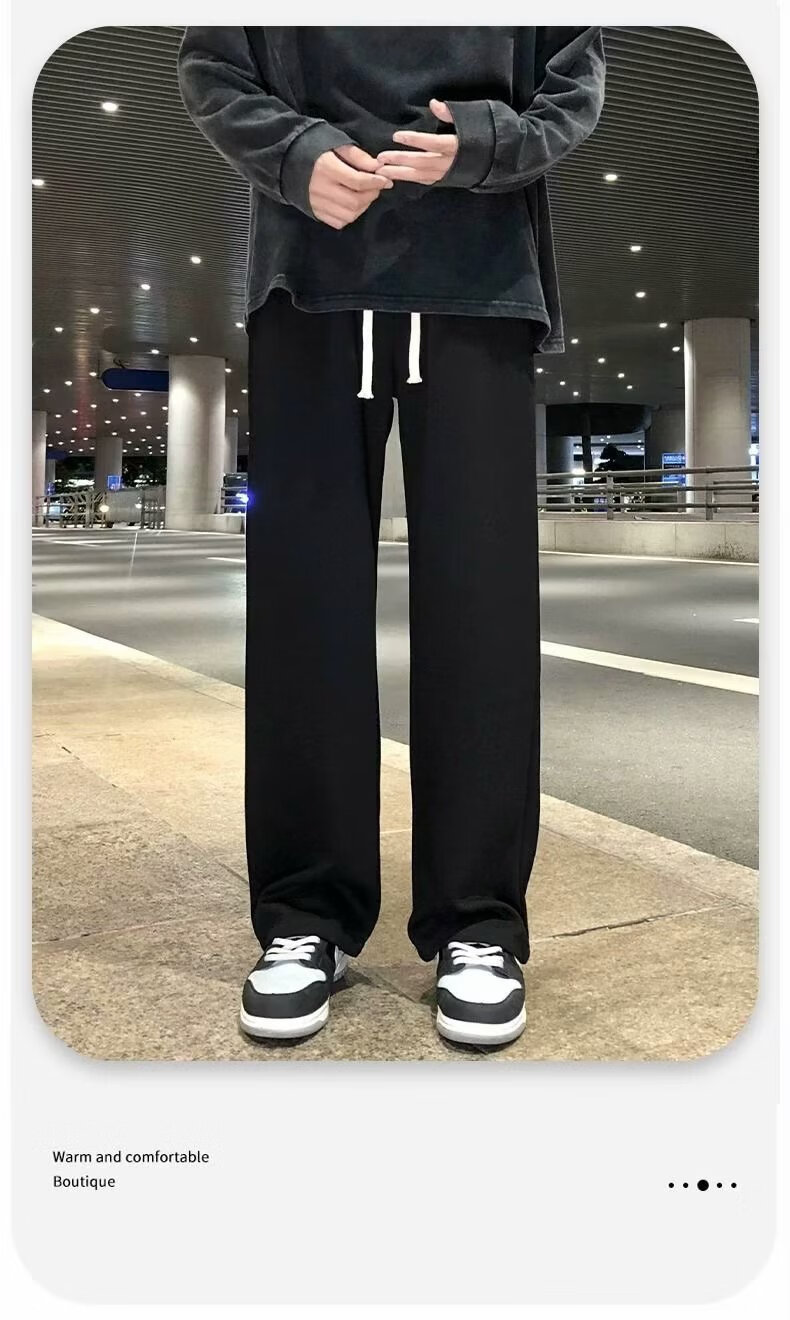 Jiaye black straight casual men's hanging loose and versatile American trendy boys' autumn casual sports plus velvet long pants regular black 1 piece XL 100-120Jin Jin equals 0.5 kg