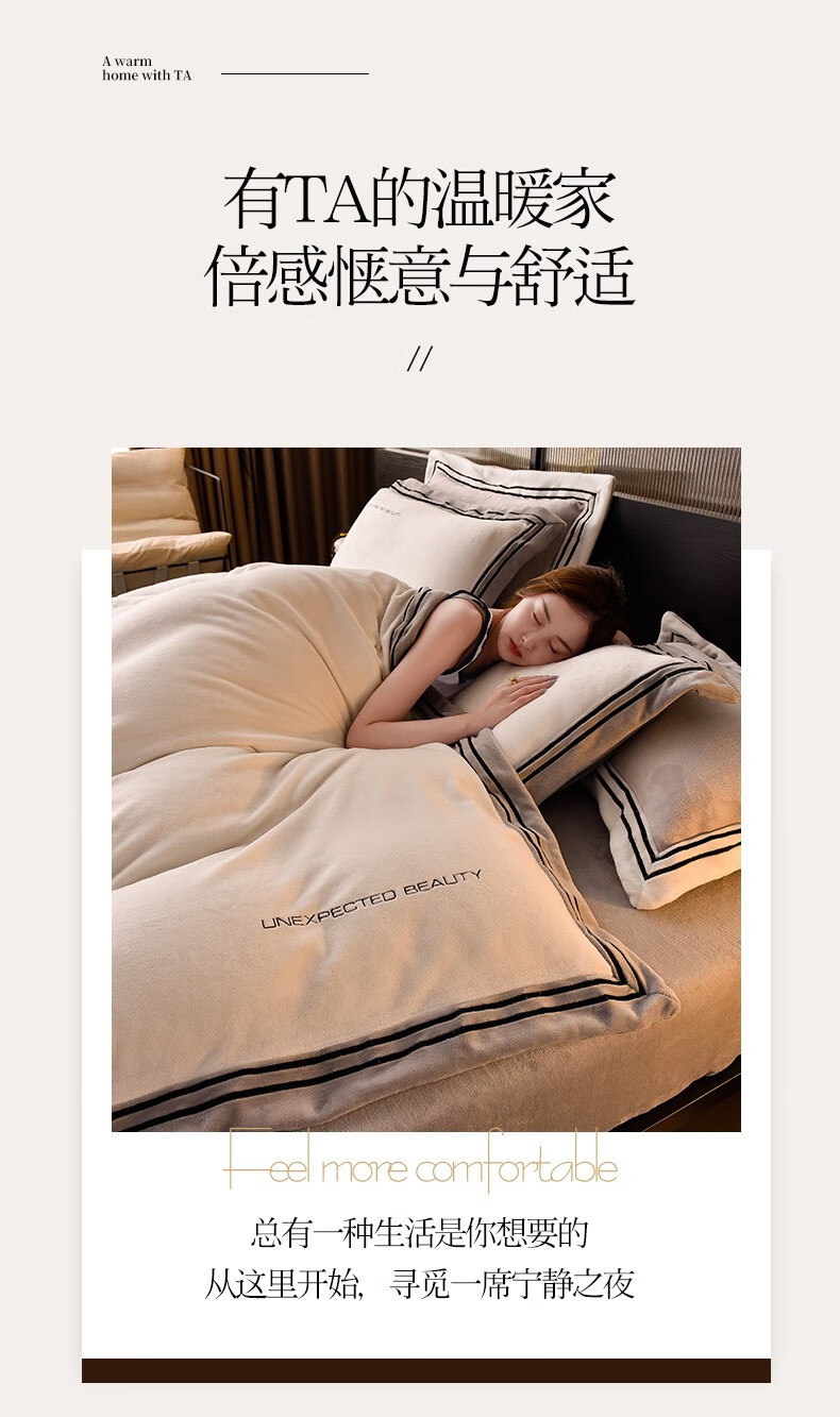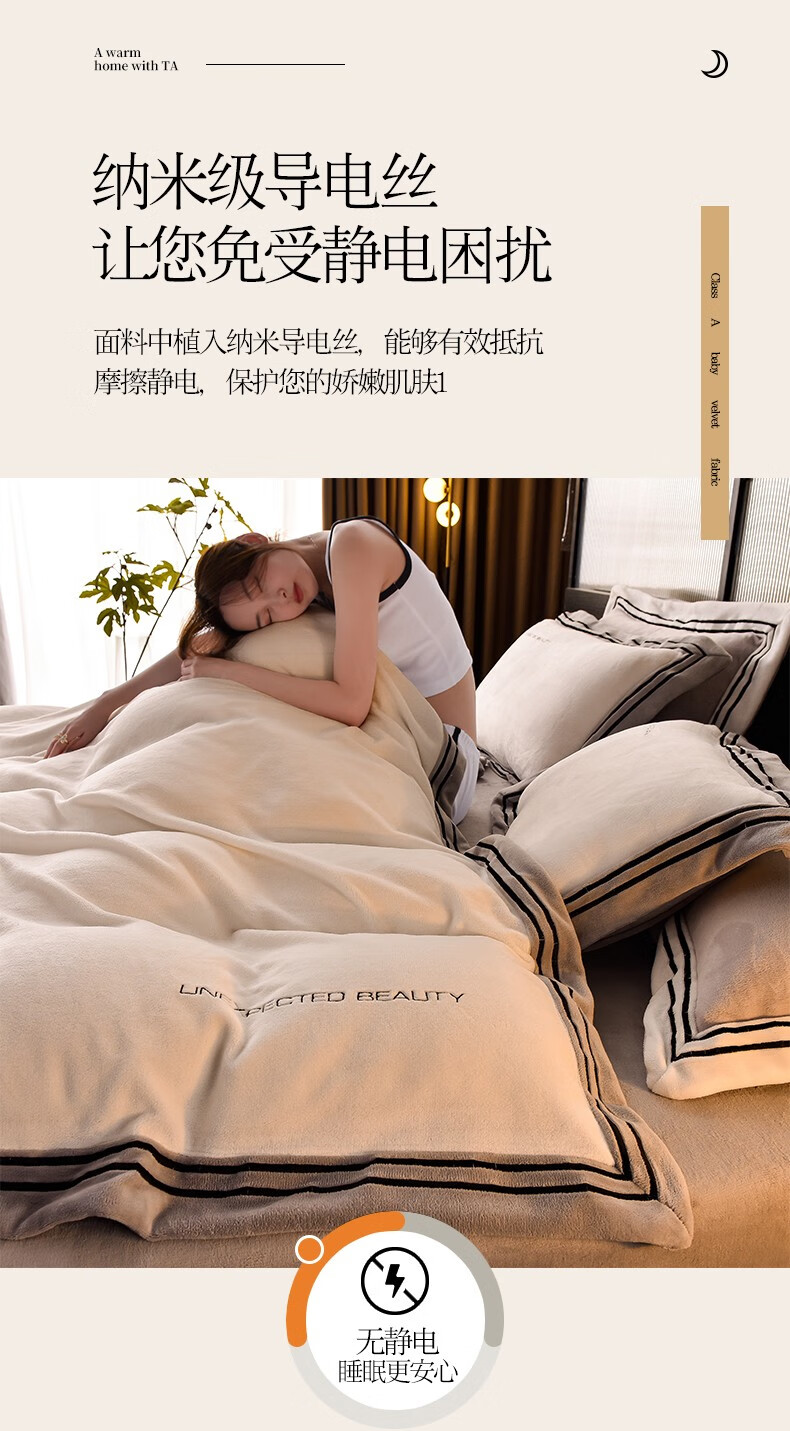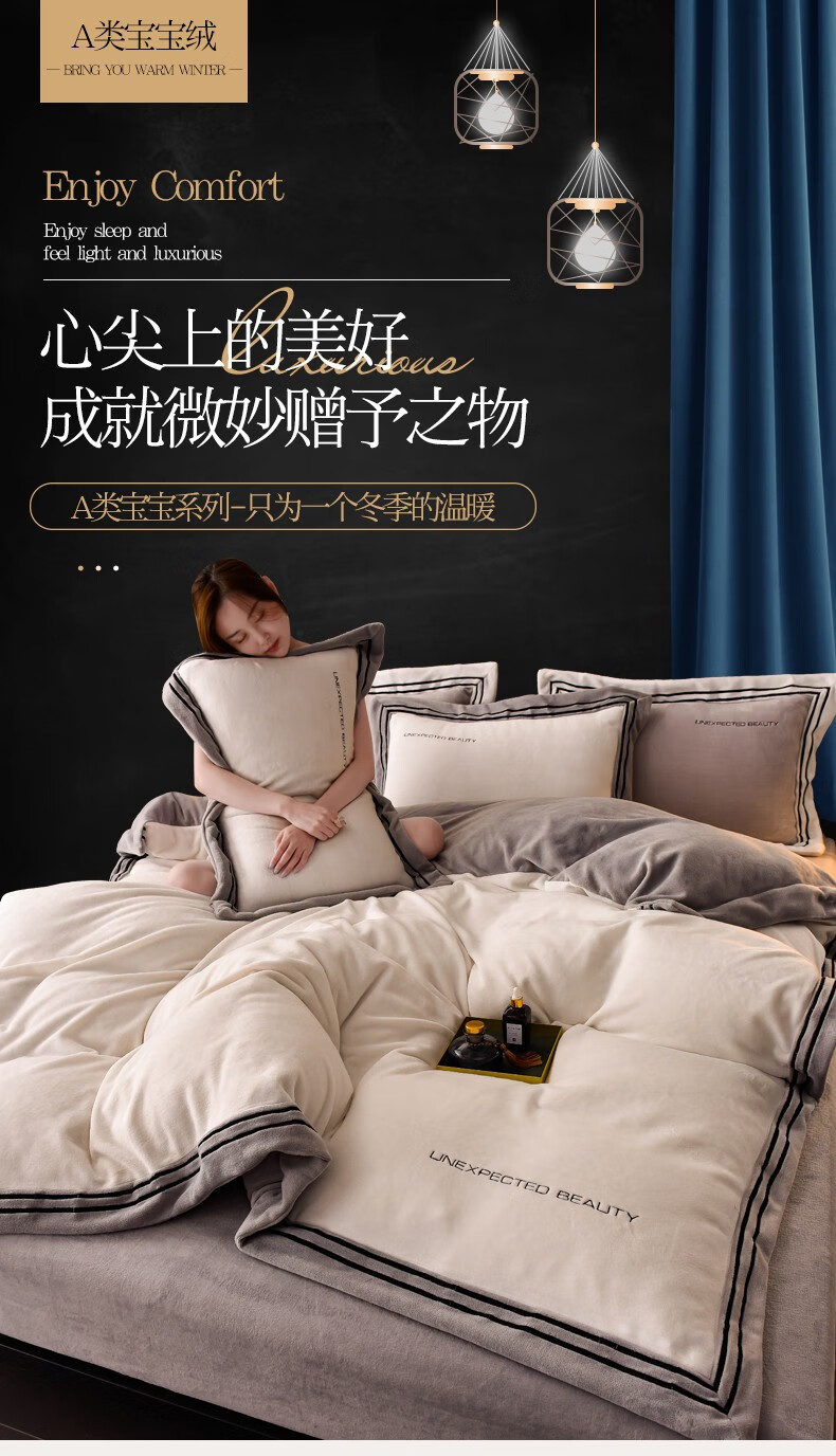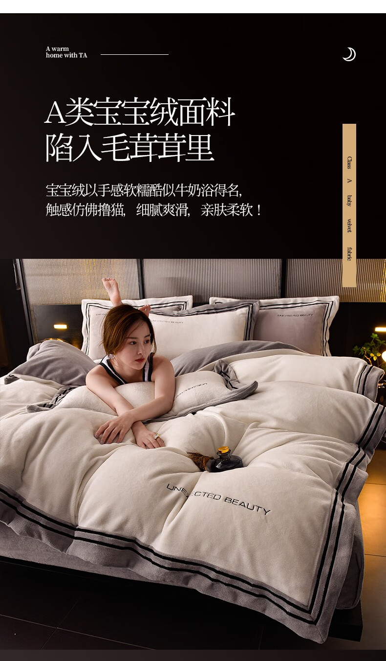 Yalu Class A baby milk velvet four-piece set high-end bedding flannel sheets winter coral velvet duvet cover bed sheet M Vick - Ivory White Class A baby velvet 1.8m bed sheet style four-piece set - quilt cover 200*230cm