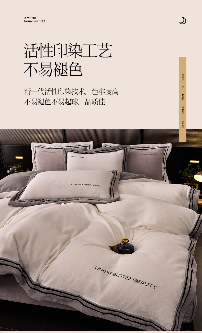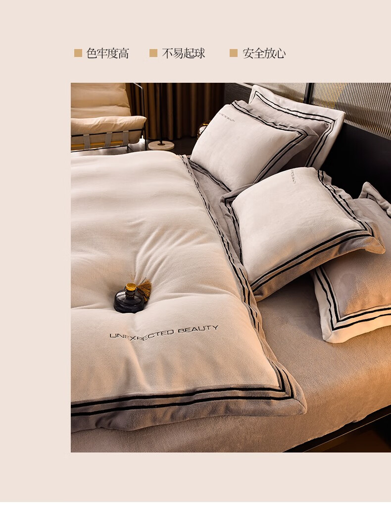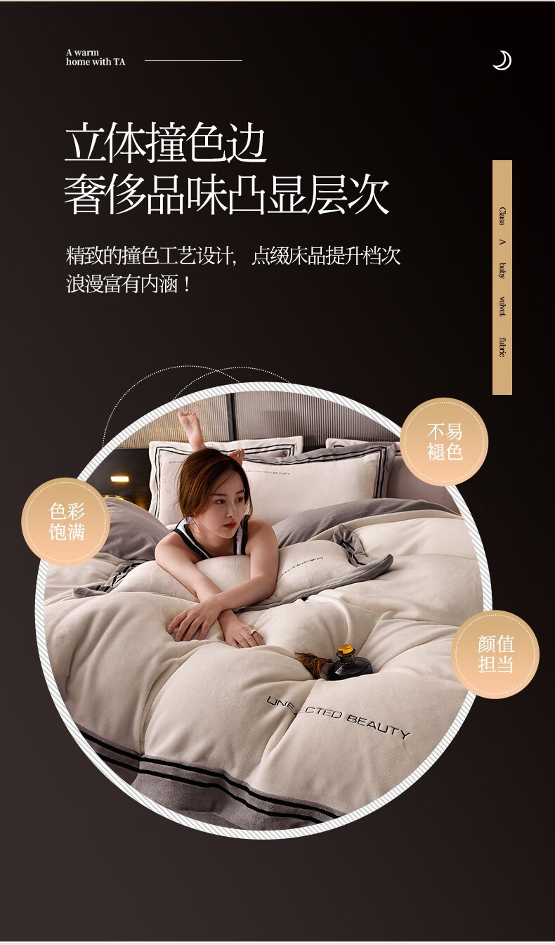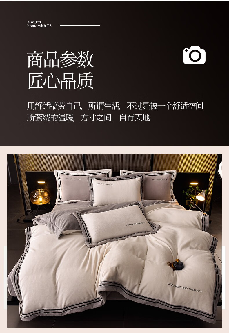 Yalu Class A baby milk velvet four-piece set high-end bedding flannel sheets winter coral velvet duvet cover bed sheet M Vick - Ivory White Class A baby velvet 1.8m bed sheet style four-piece set - quilt cover 200*230cm