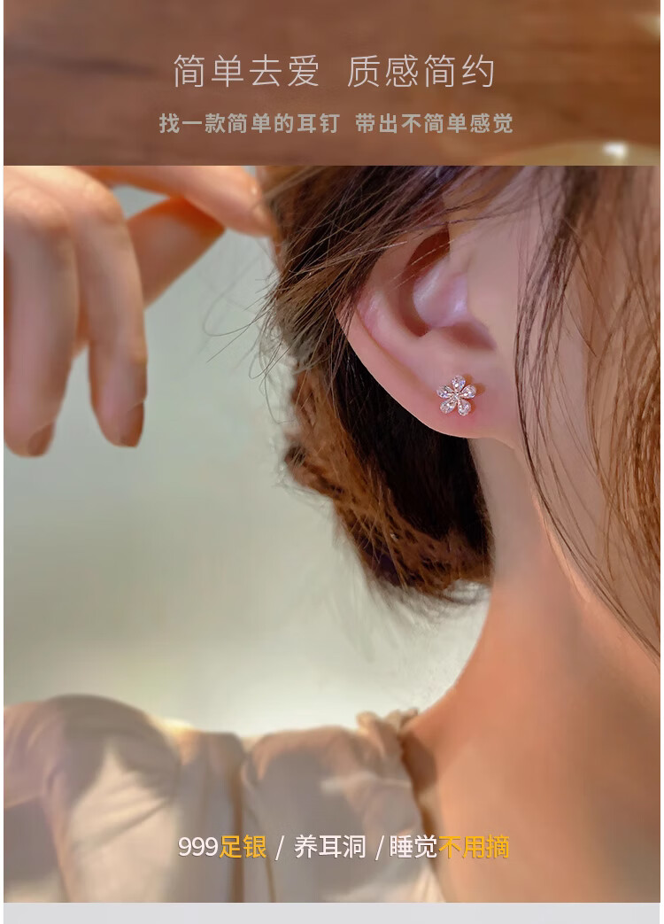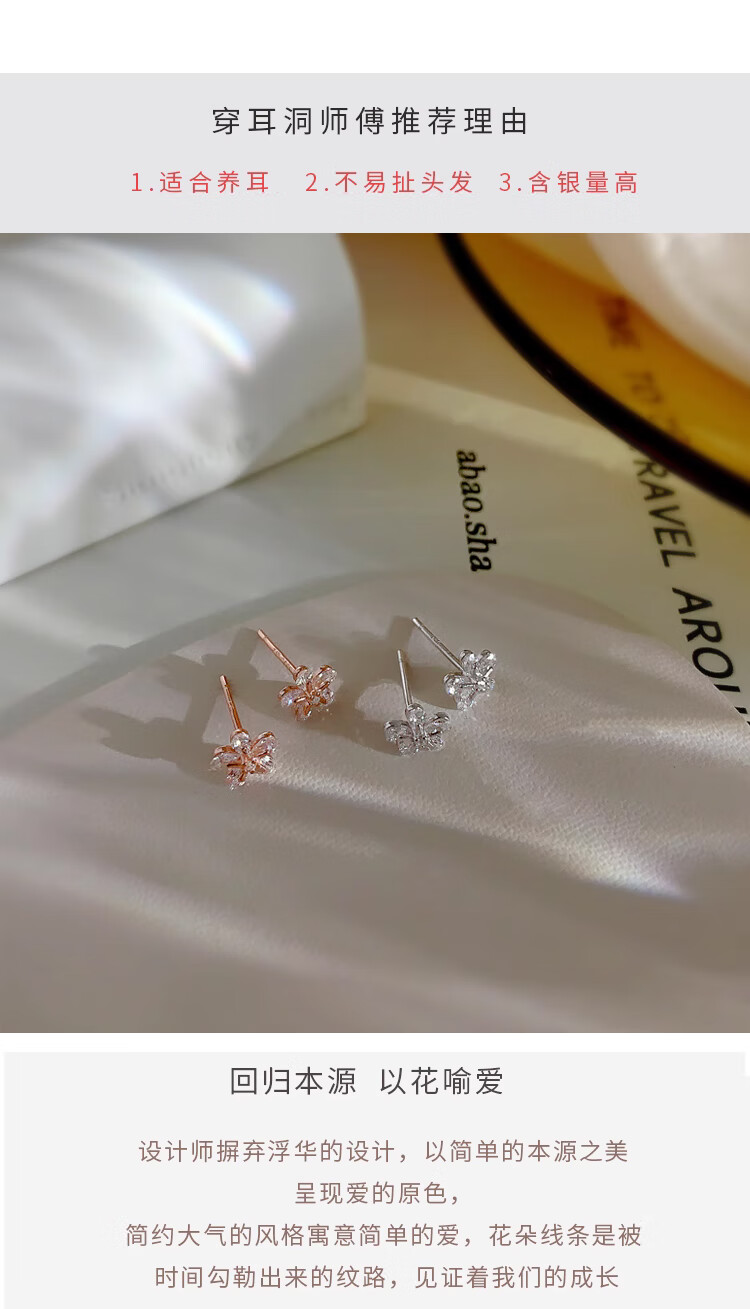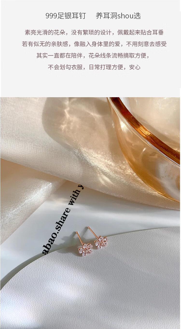 PWL999 pure silver earrings, fashionable and elegant earrings, light luxury and high-end 2025 new sweet flower earrings, rose gold flower silver earrings