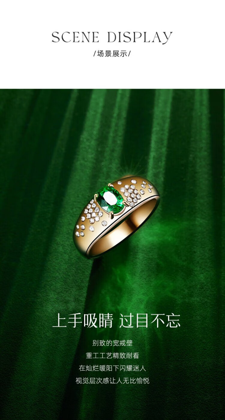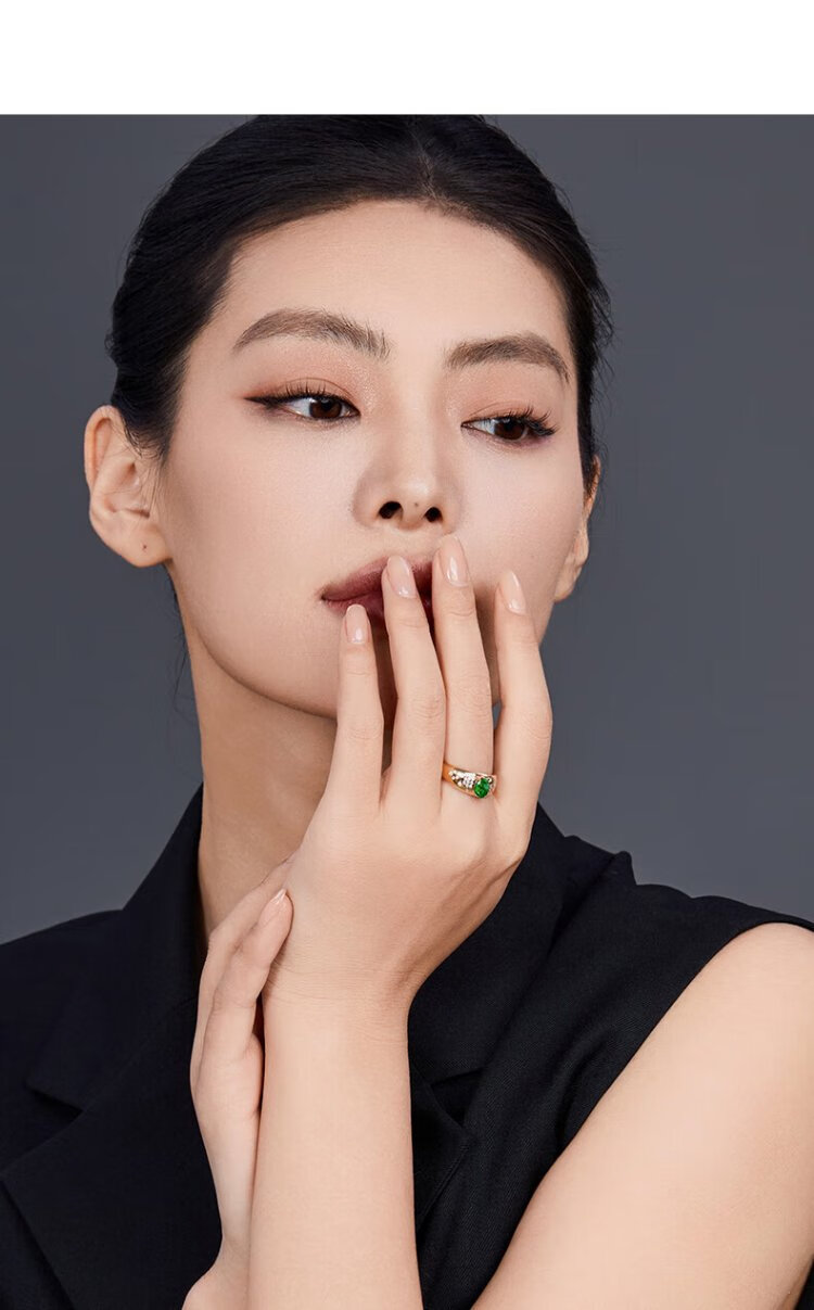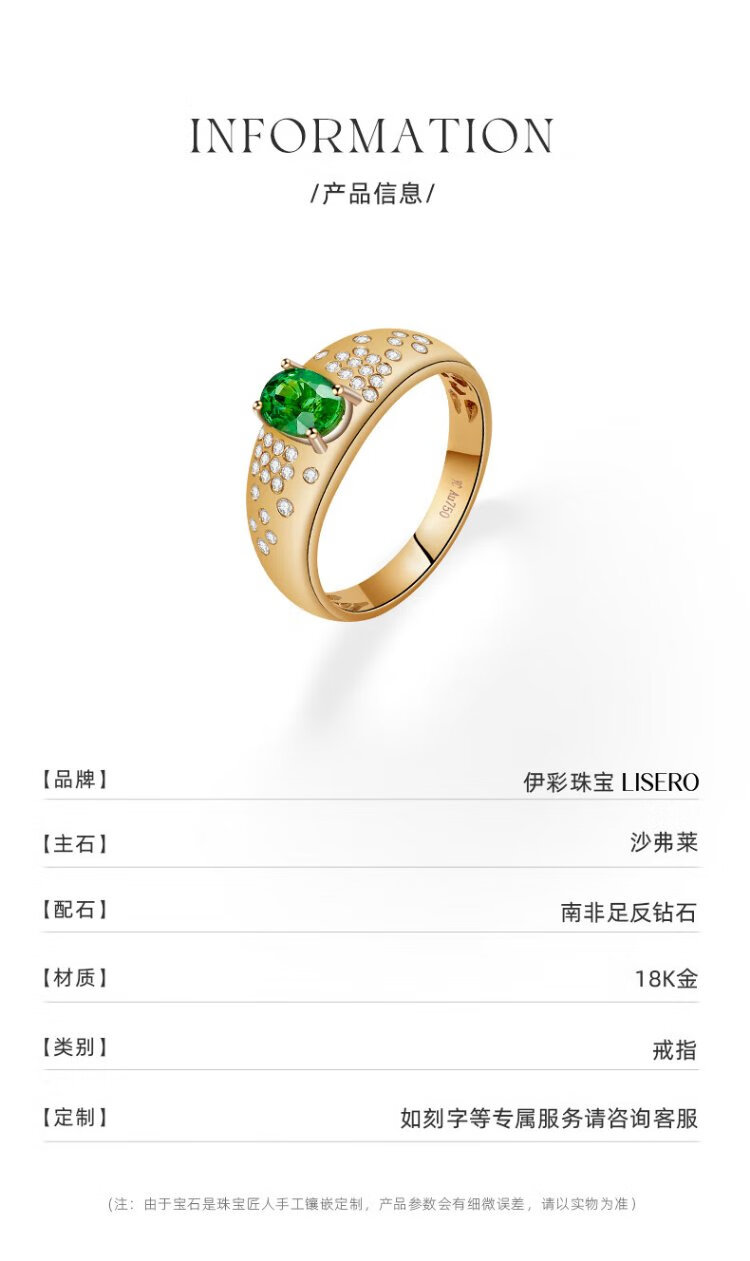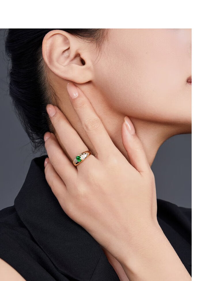 Yicai natural tsavorite ring women's 18k gold diamond ring birthday gift for girlfriend Tsavorite 1 carat/Gilder