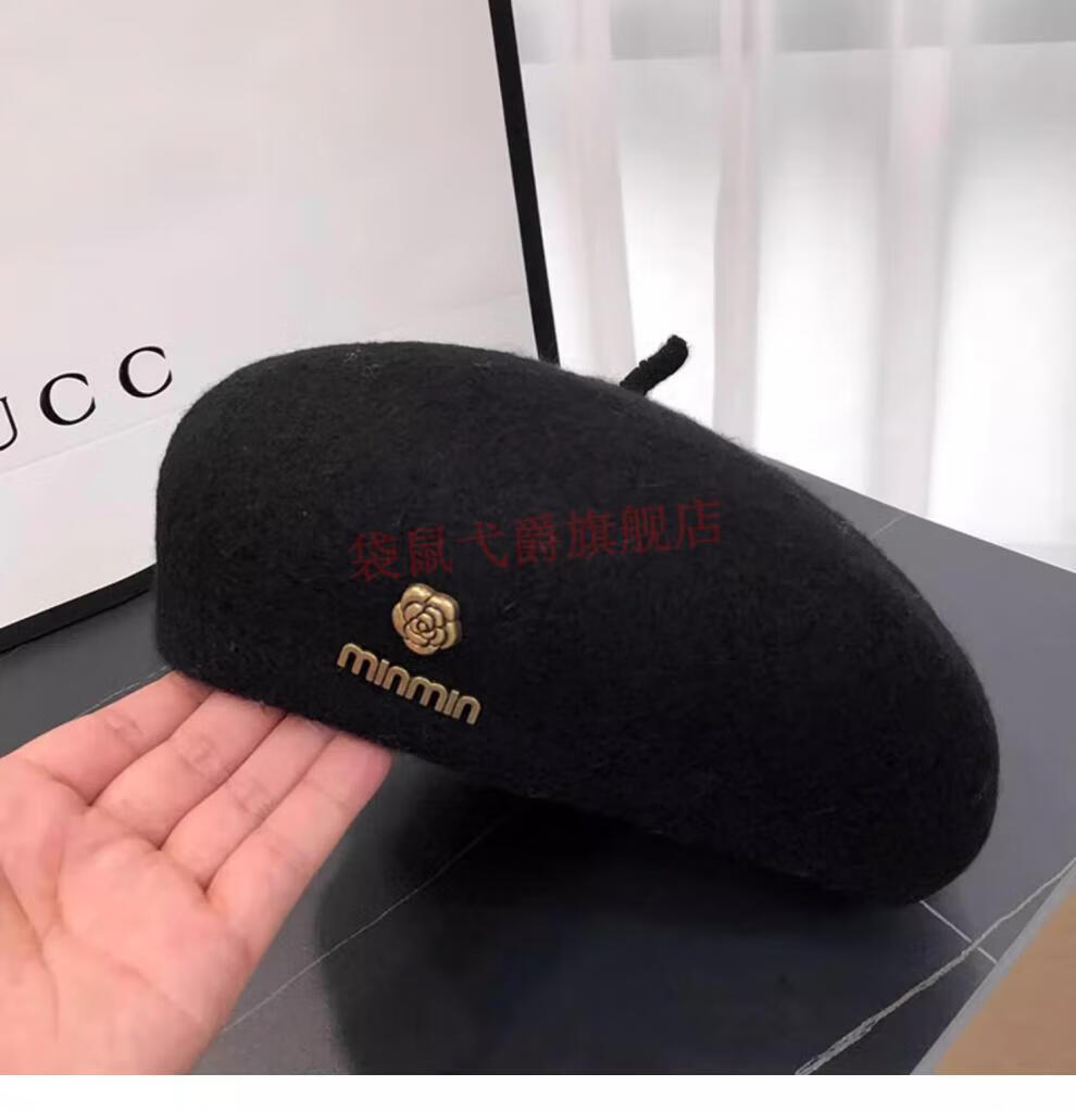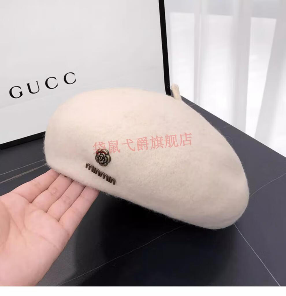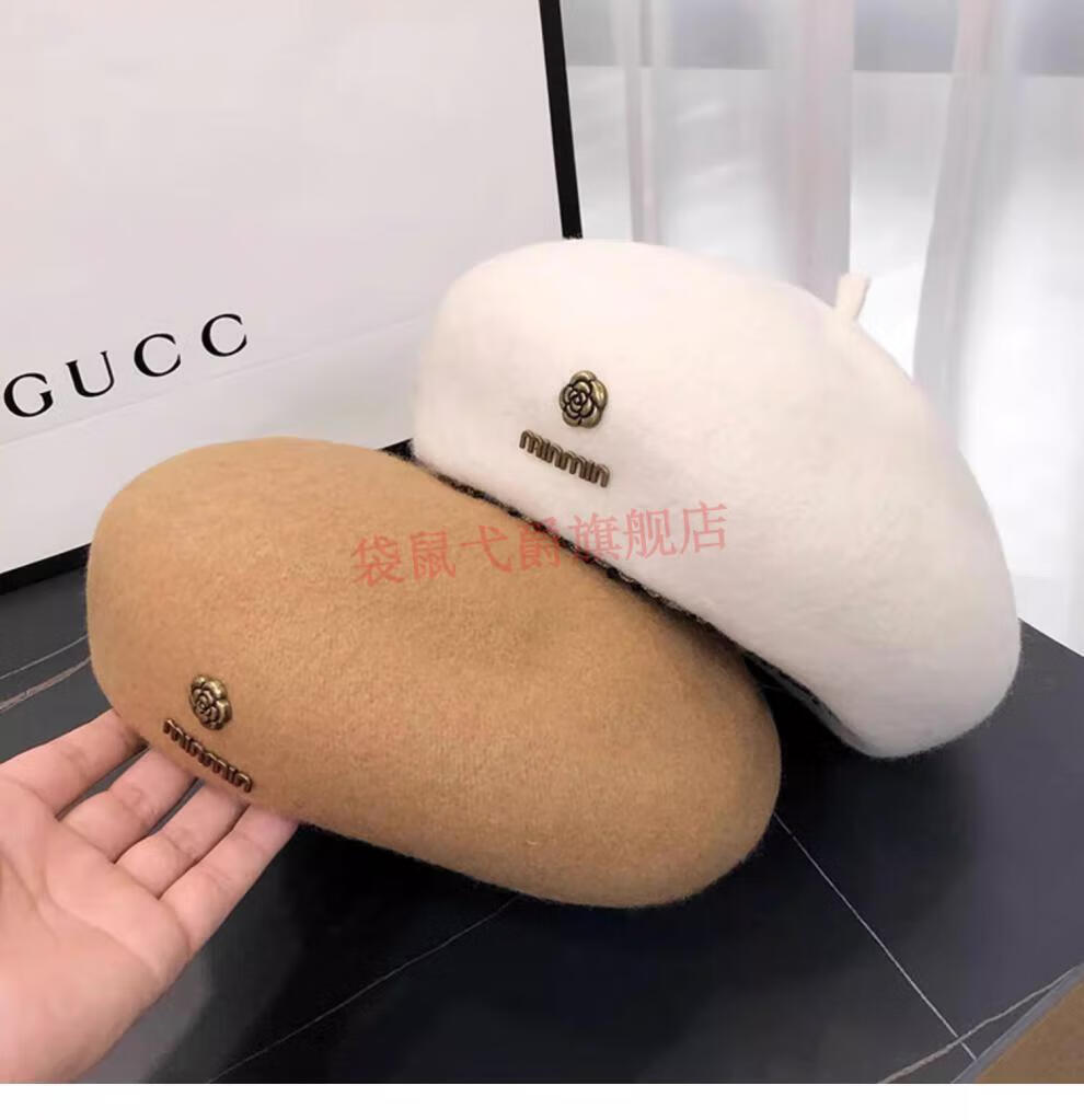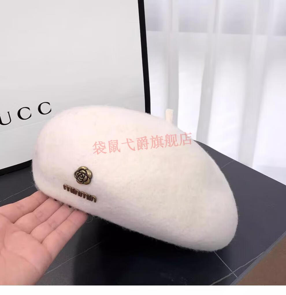 NY-NYM Korean style woolen beret women's autumn and winter large head circumference versatile octagonal hat Japanese style literary and artistic little painter hat off-white min beret
