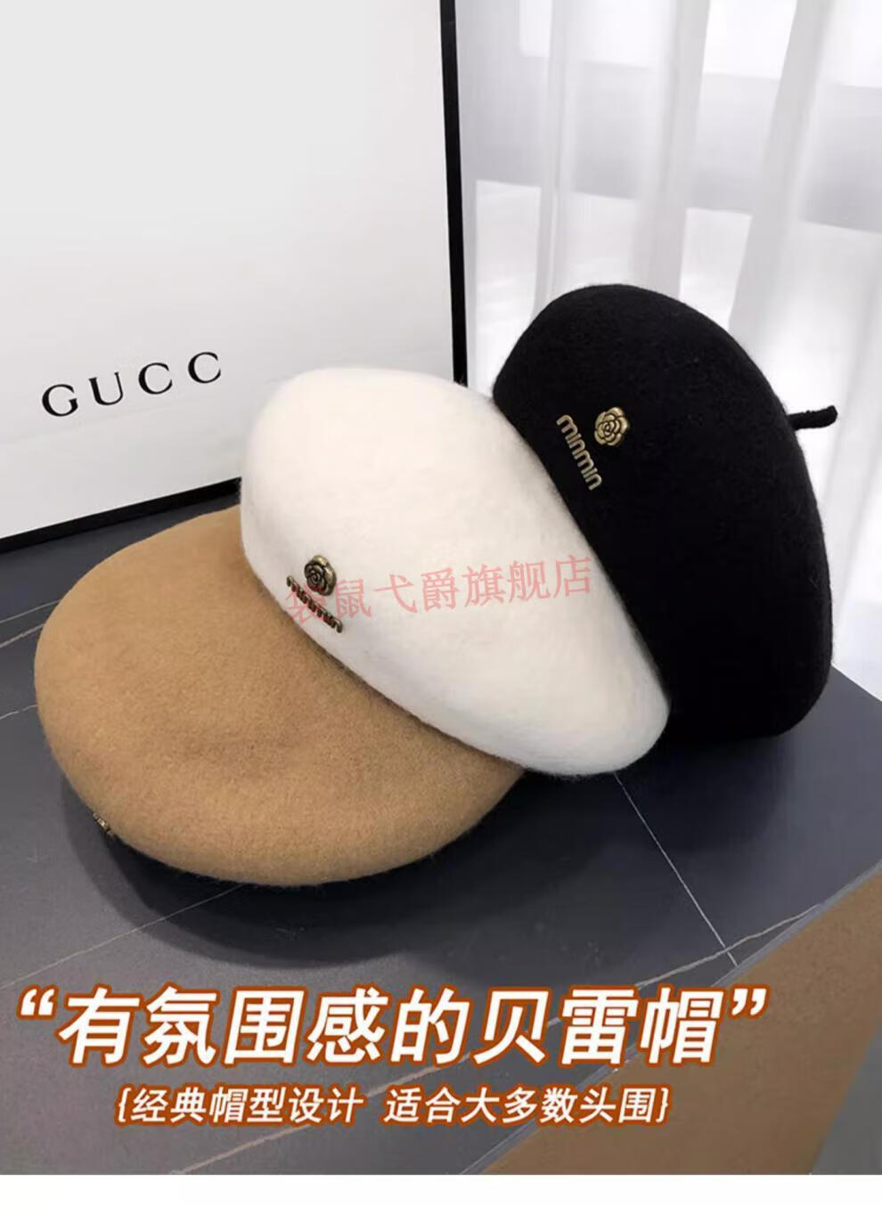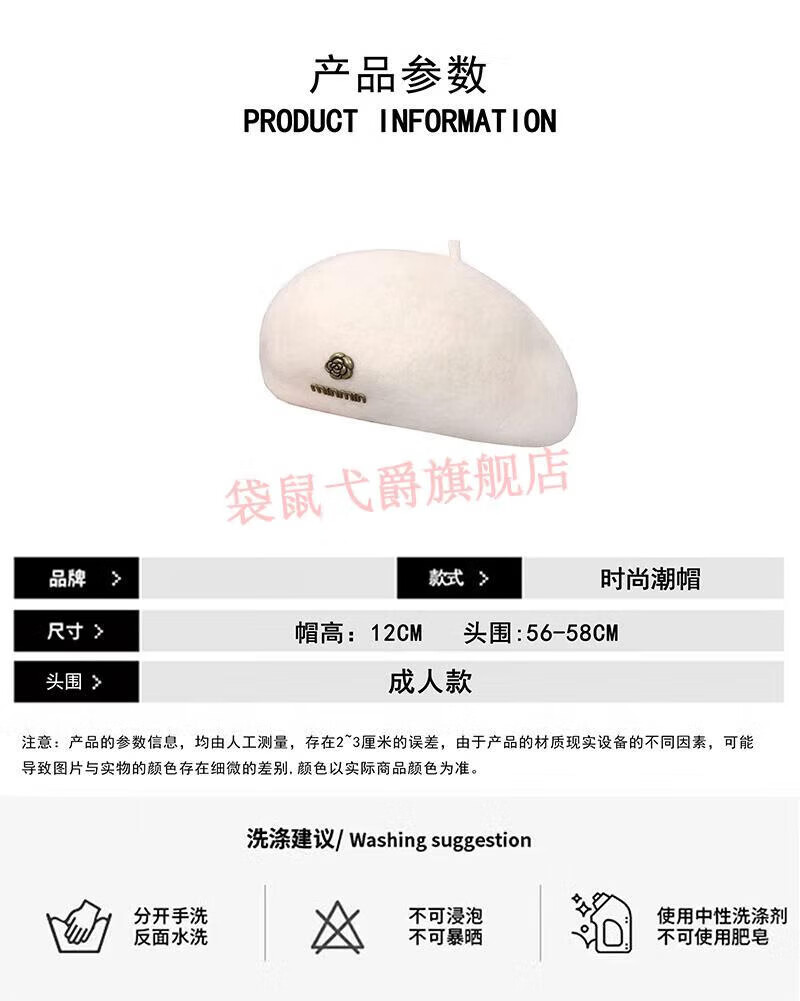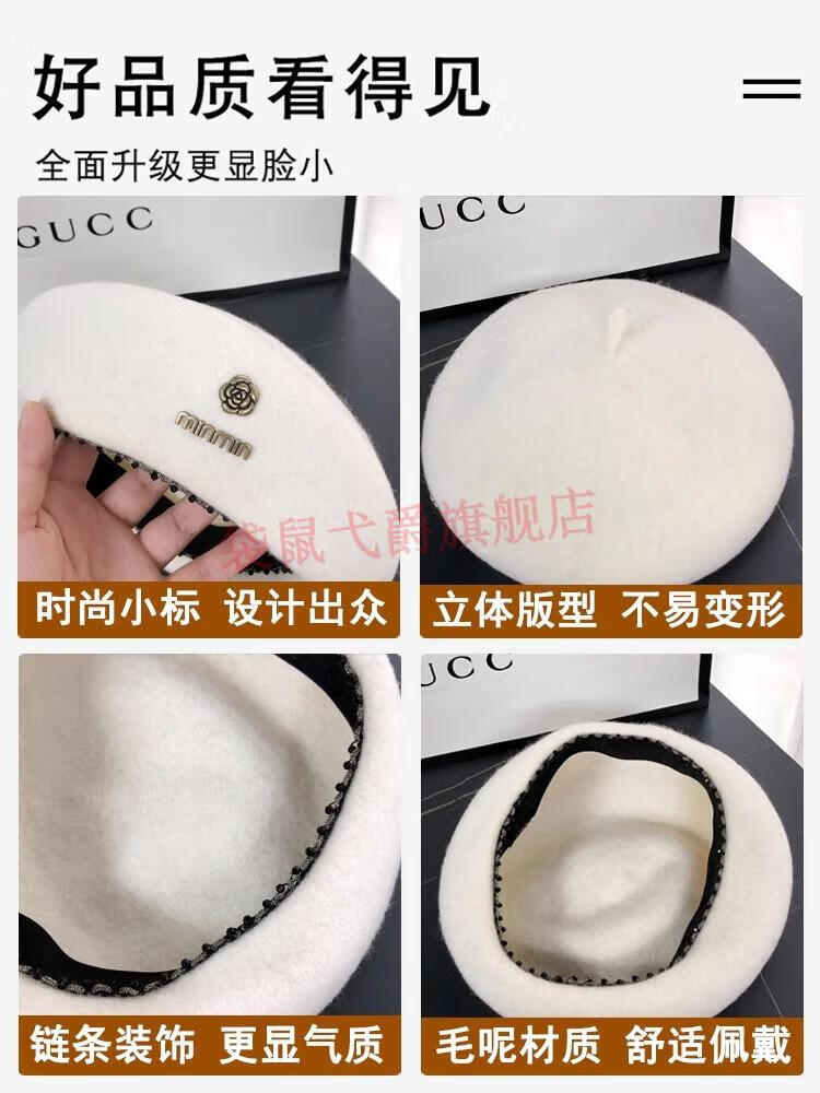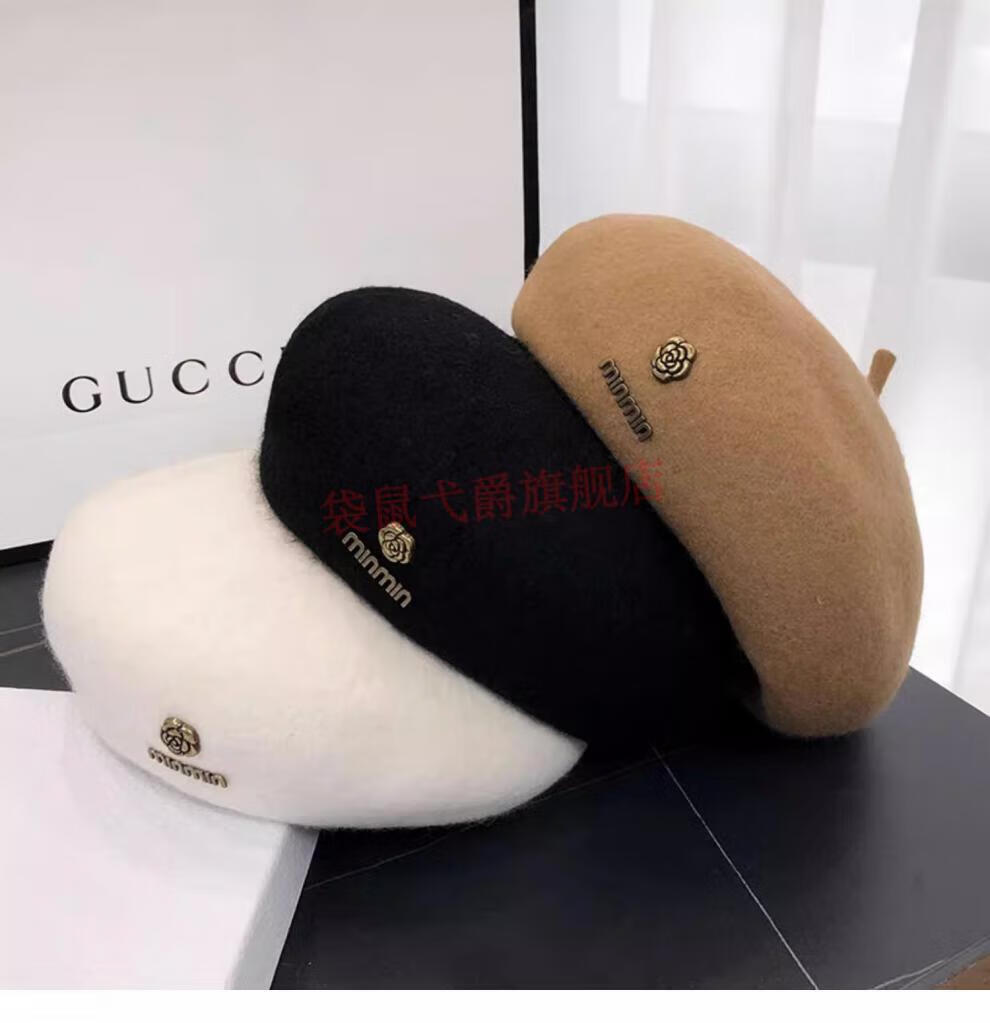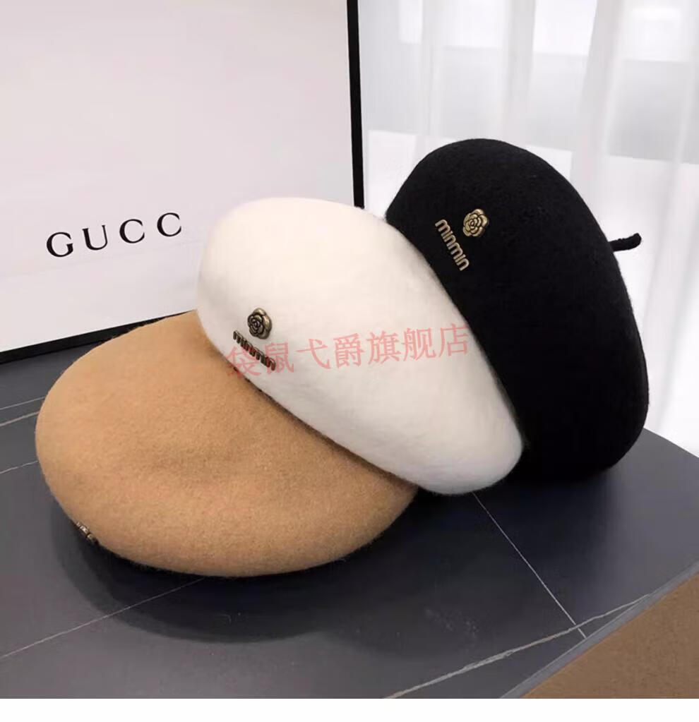NY-NYM Korean style woolen beret women's autumn and winter large head circumference versatile octagonal hat Japanese style literary and artistic little painter hat off-white min beret