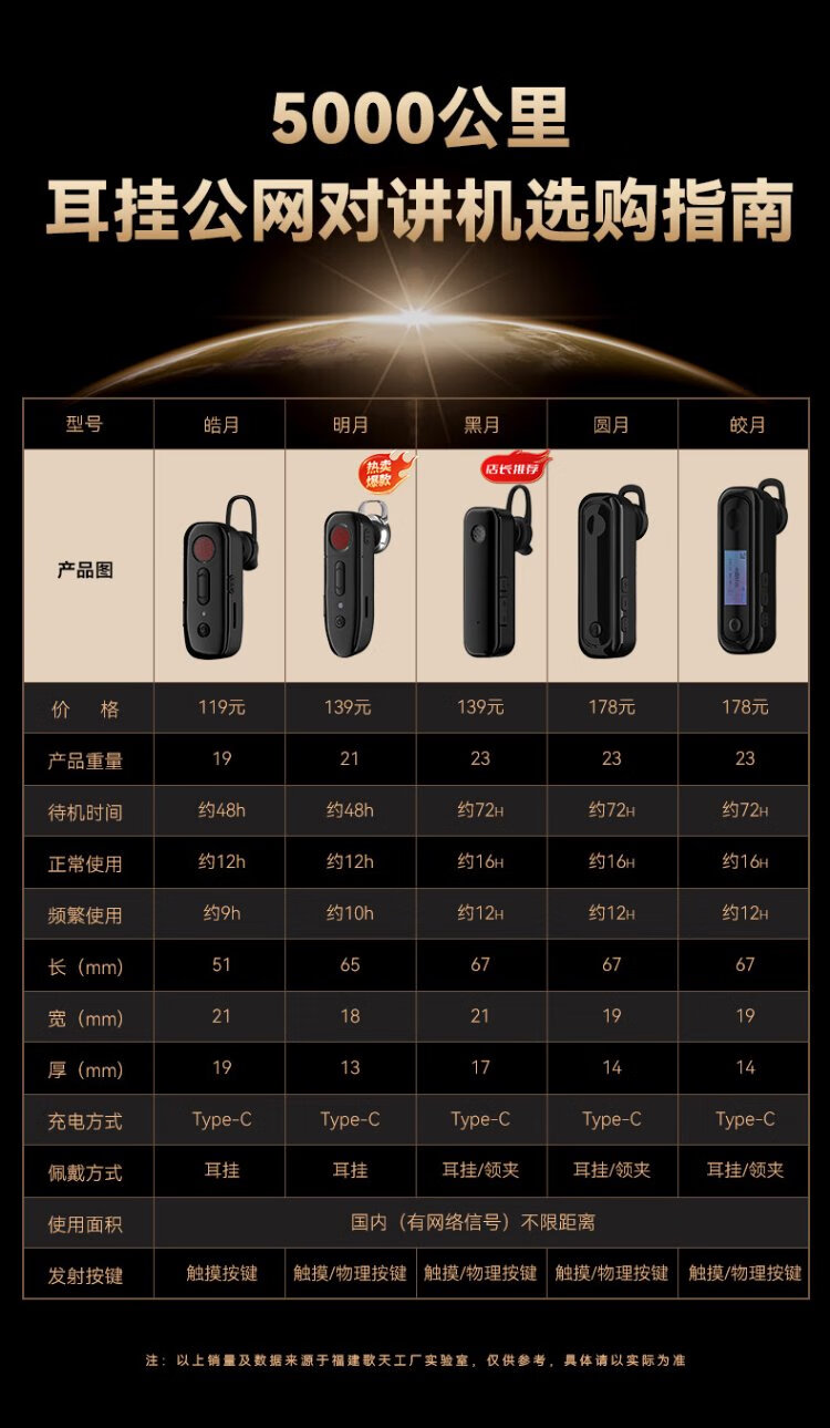 KENENG ear-hook public network intercom mini national communication 5000 kilometers ultra-long distance mini micro lavalier intercom Haoyue (touch intercom/ear-hook type)