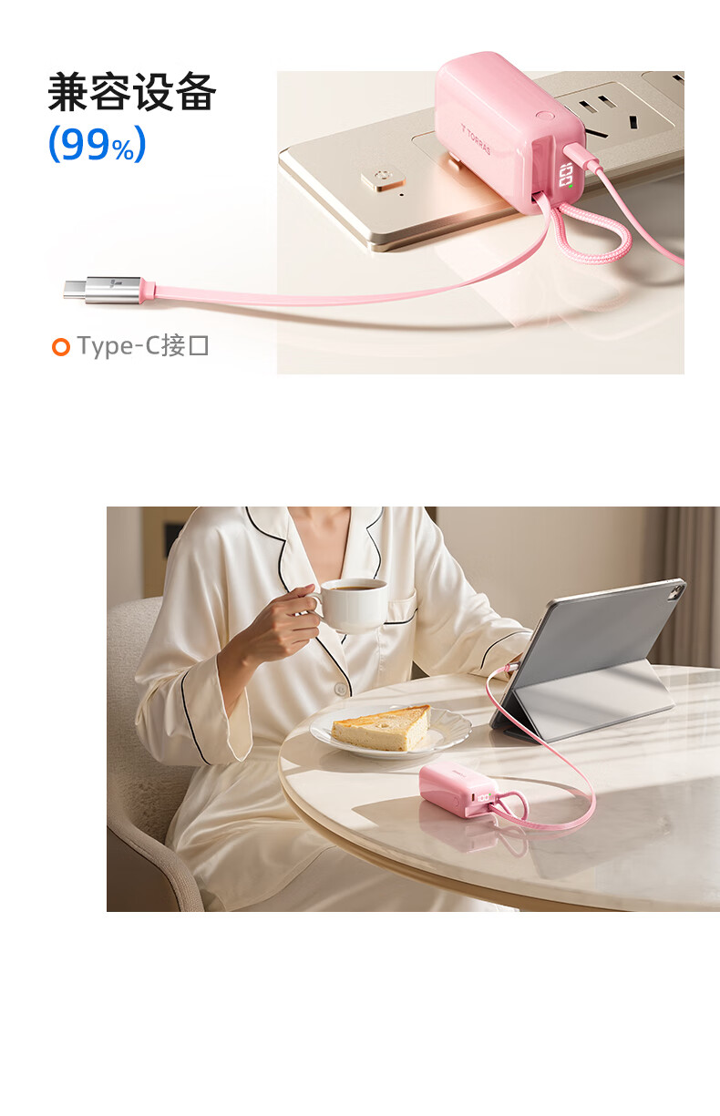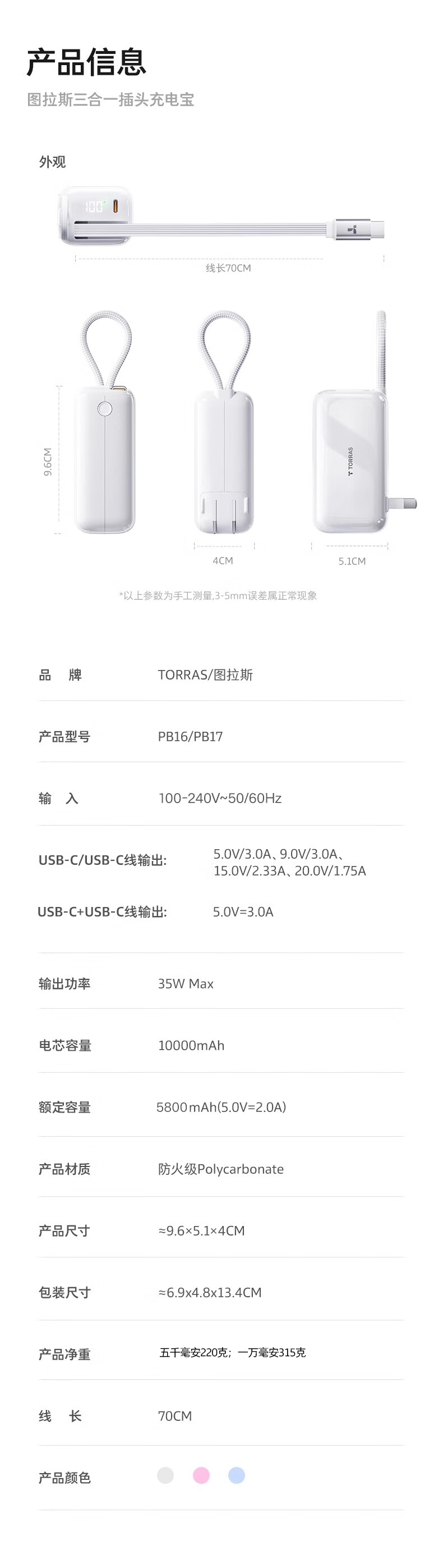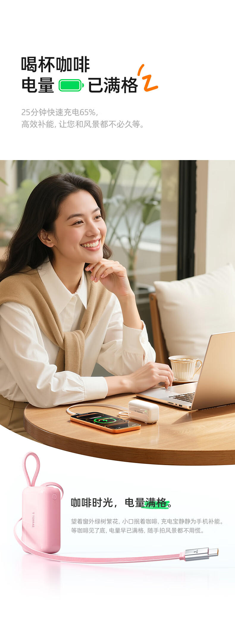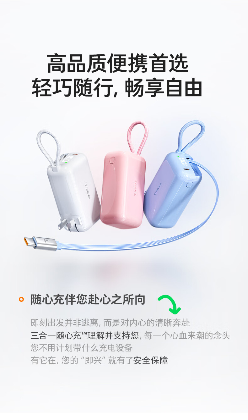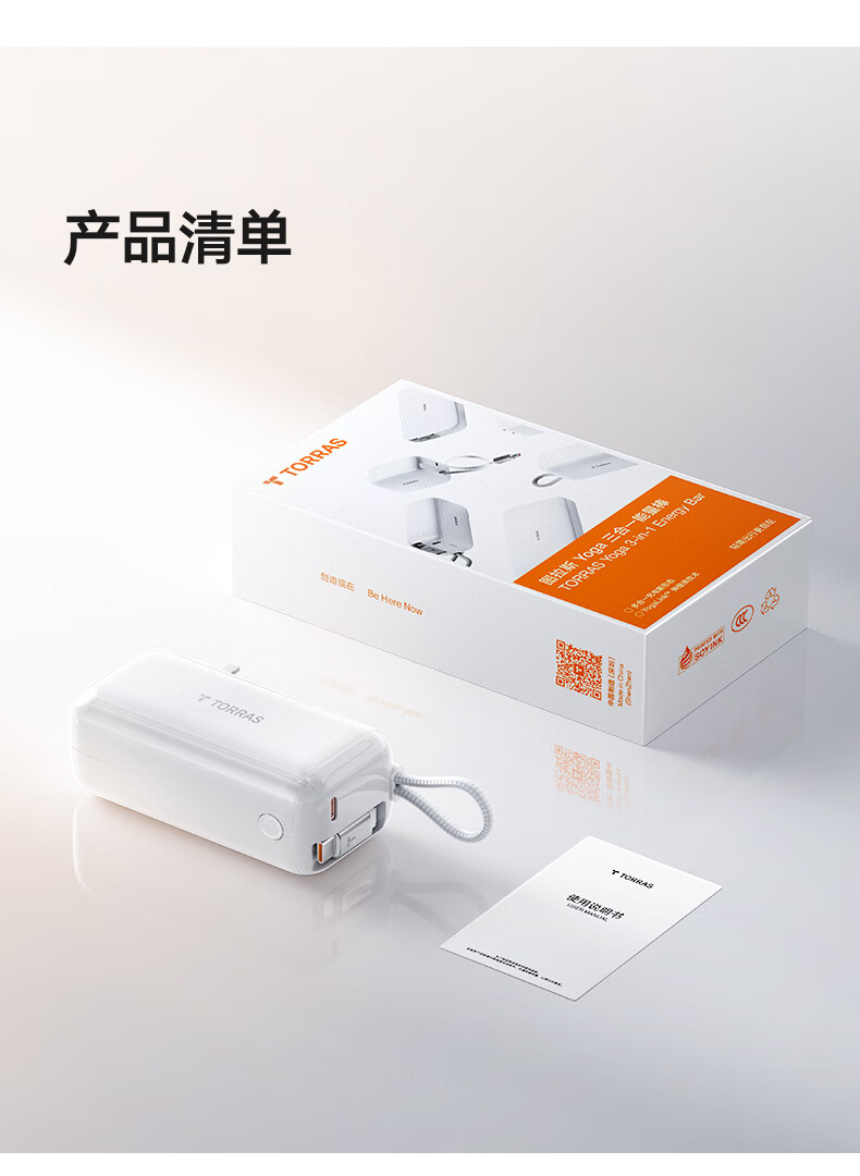 Tulas power bank, 15% off | 3-in-1 free charging, 3C certified, can be used on airplanes, 10,000 mAh energy bar with plug, comes with cable for fast charging, Apple is compact and portable, 3C certified, Yunduo White | 10,000 mAh, 2025 new model | Type-C interface, fully compatible with Apple/Android