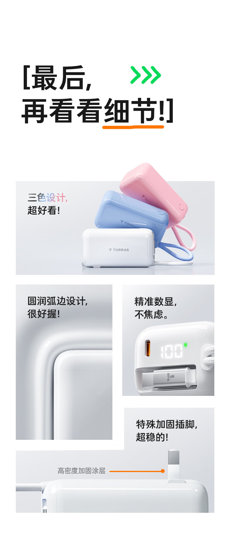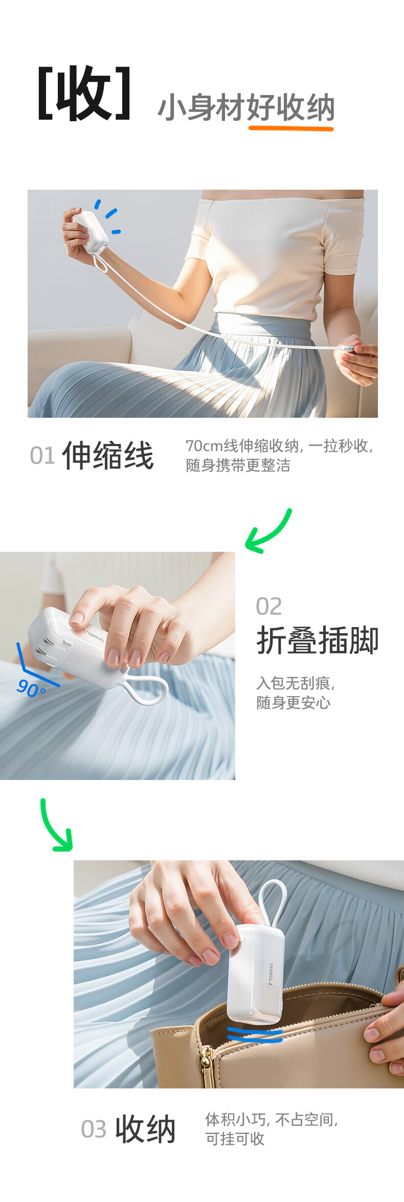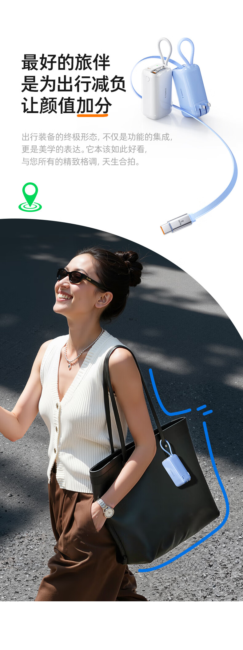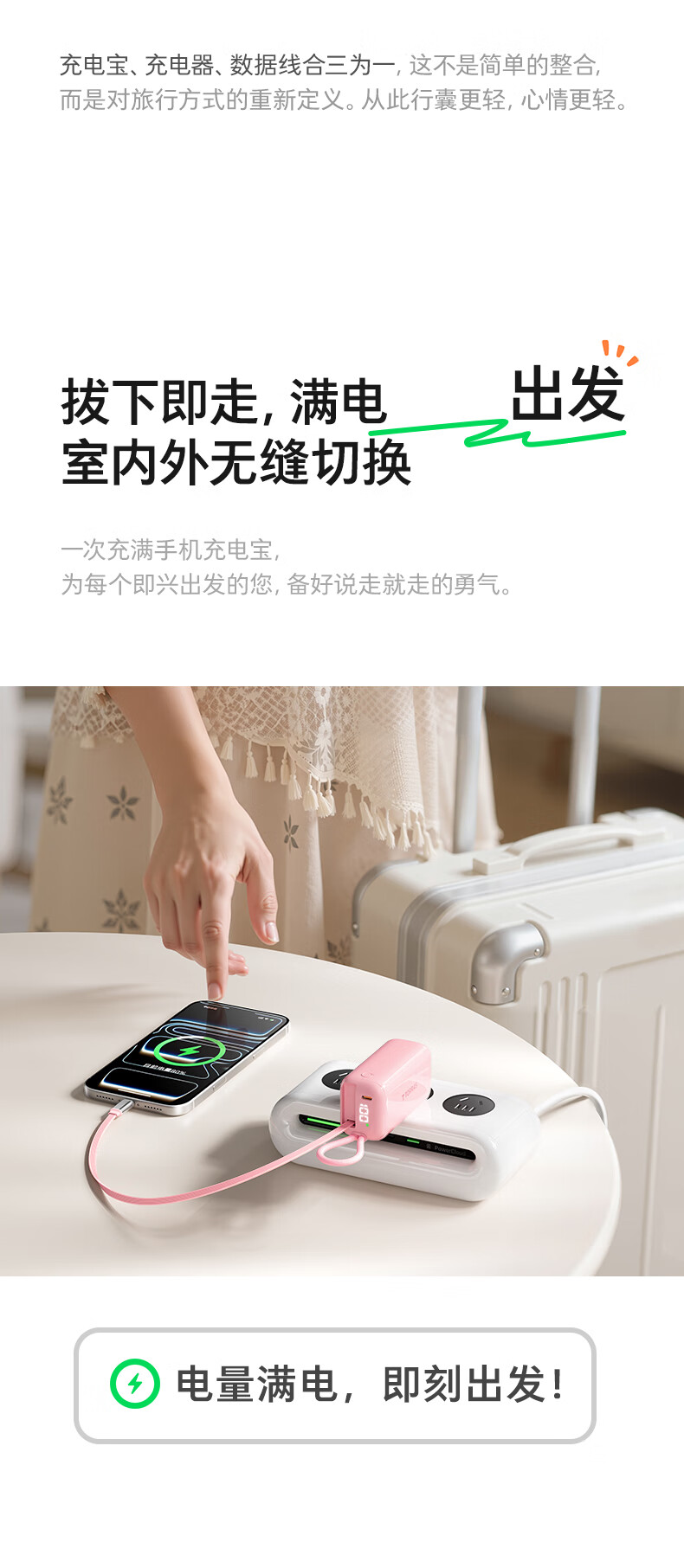 Tulas power bank, 15% off | 3-in-1 free charging, 3C certified, can be used on airplanes, 10,000 mAh energy bar with plug, comes with cable for fast charging, Apple is compact and portable, 3C certified, Yunduo White | 10,000 mAh, 2025 new model | Type-C interface, fully compatible with Apple/Android