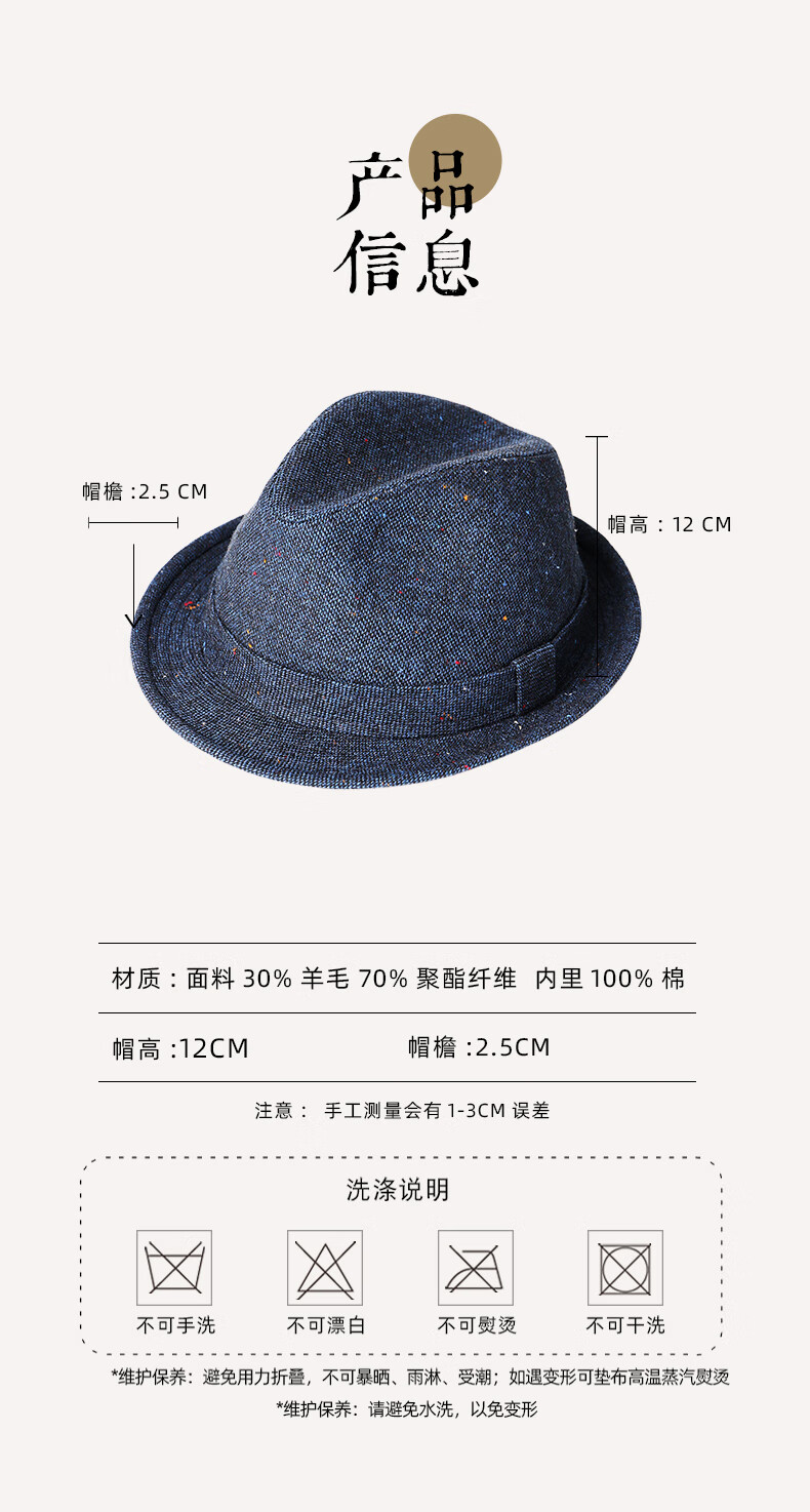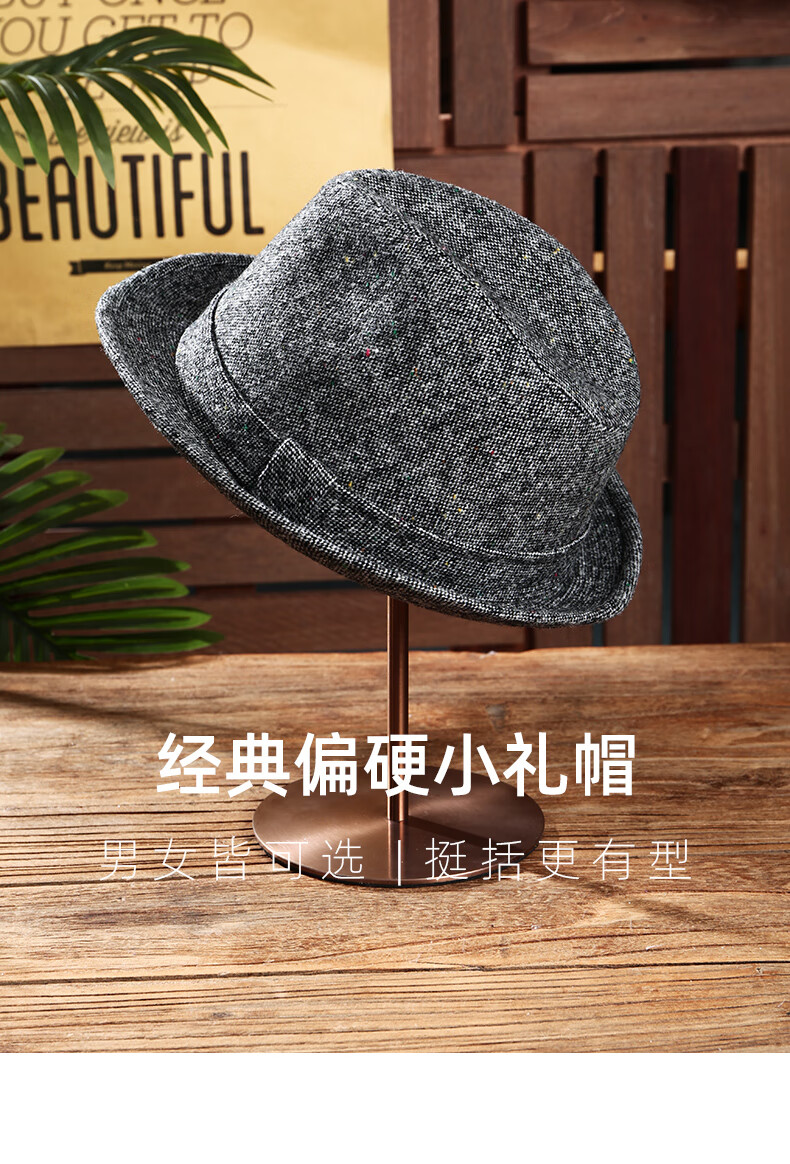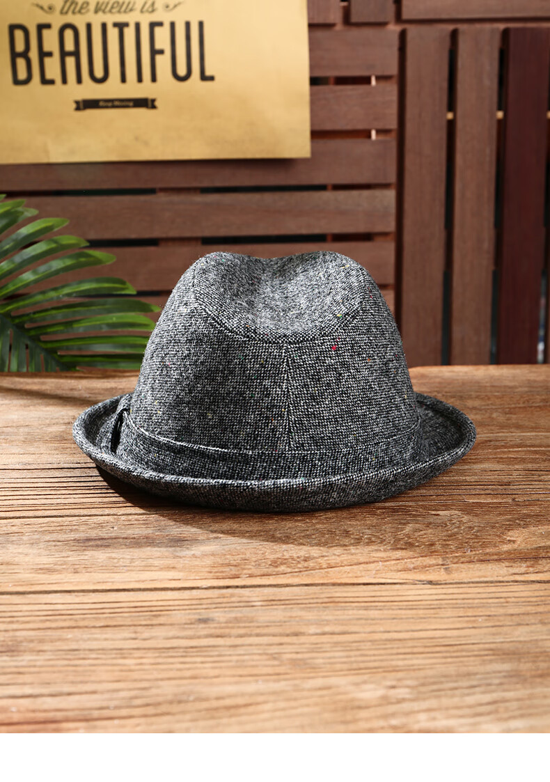 Oufandi kleiner Zylinderhut für Herren in Herbst- und Wintermode, lässig, gekräuselt, atmungsaktiv, Nizi-Gentleman-Hut aus Wolle, Retro-Woll-Jazzhut für Damen, hellgrau, modisch und vielseitig, M (56–58 cm)