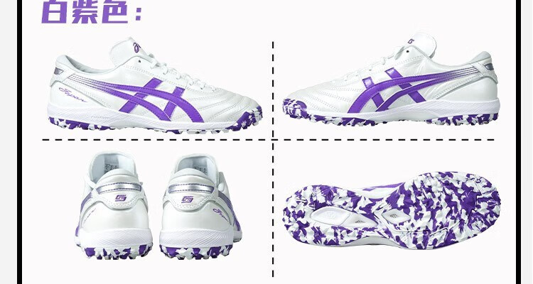 ASICS football shoes men's kangaroo leather C3 FF TF broken nails lightweight cushioning football sneakers professional competition shoes white/purple 42.5