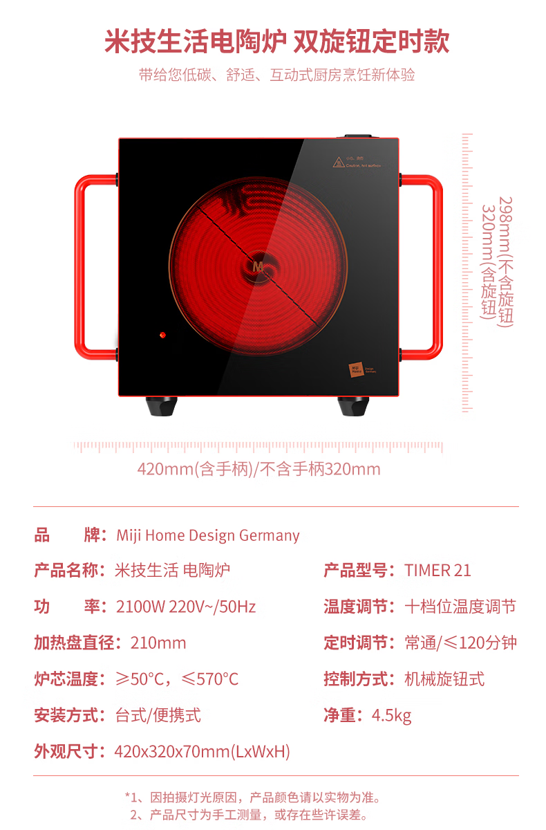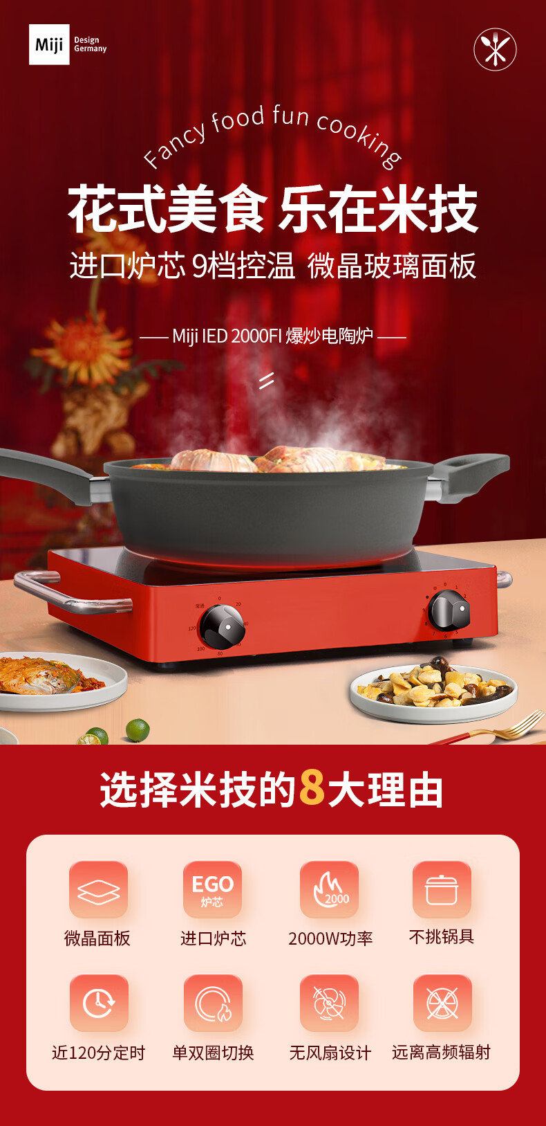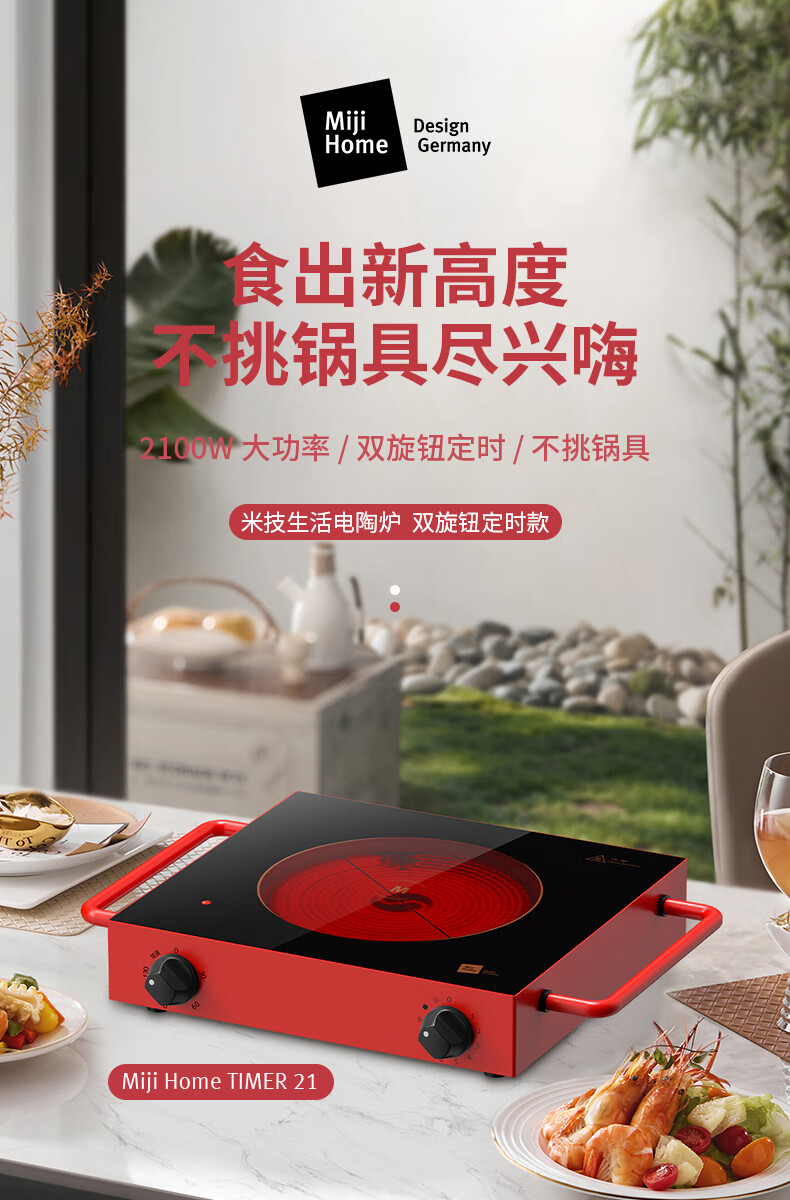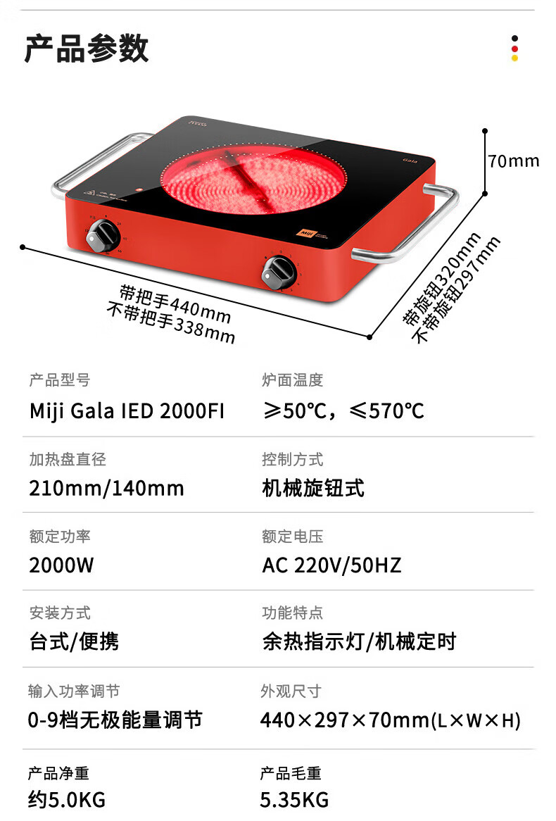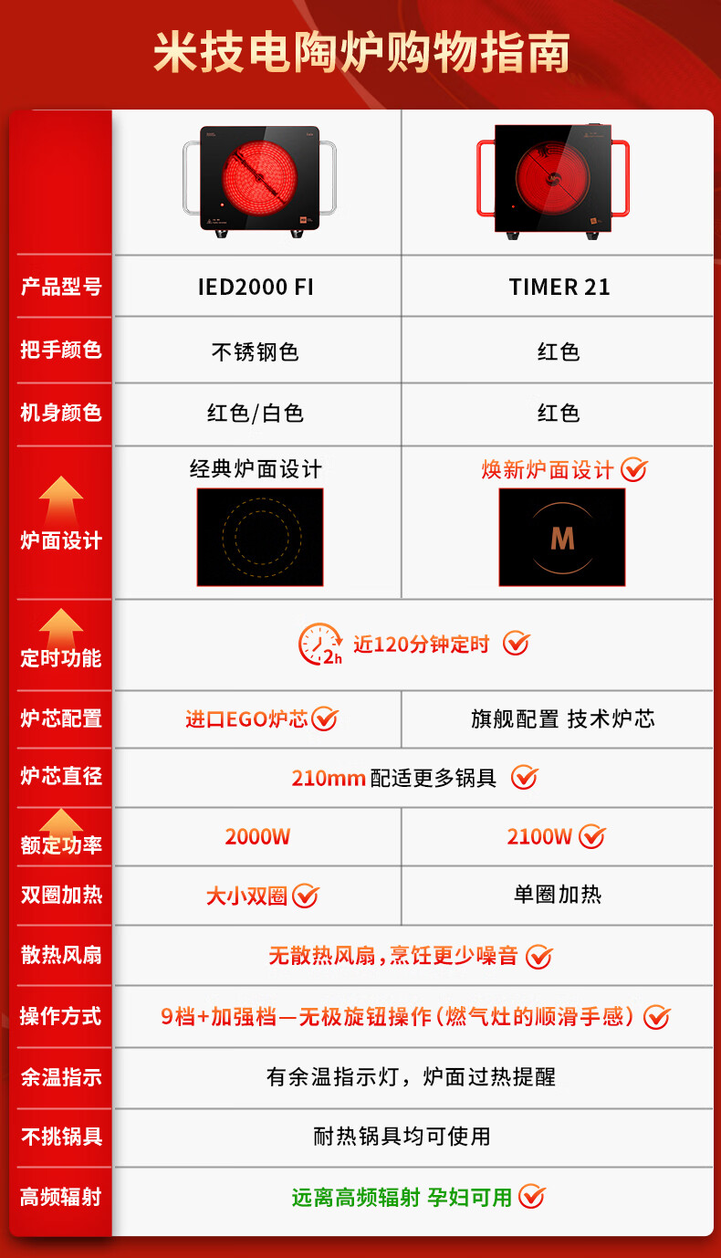 MIJI Electric Ceramic Cooker Induction Cooktop Home Desktop Technology Stove Core Upgraded Double Knob MIJI Stove Nine-level Fire Power and Long Timing Store Manager Highly Recommends IED2000 Red