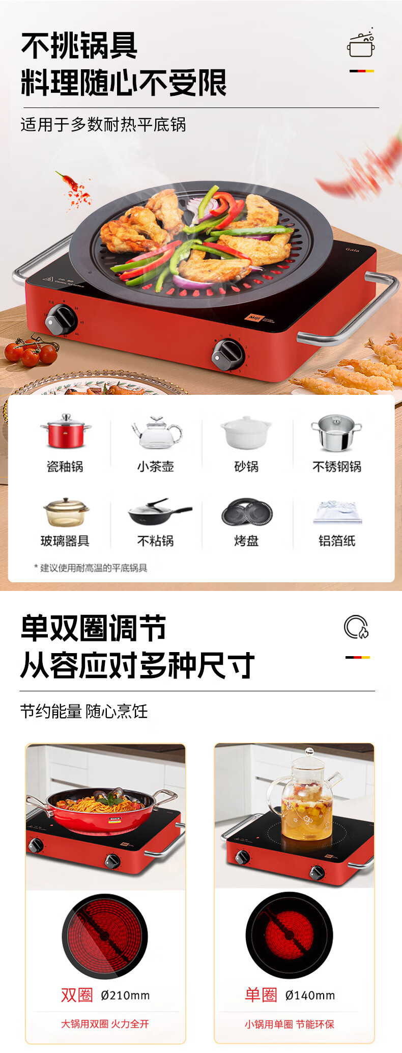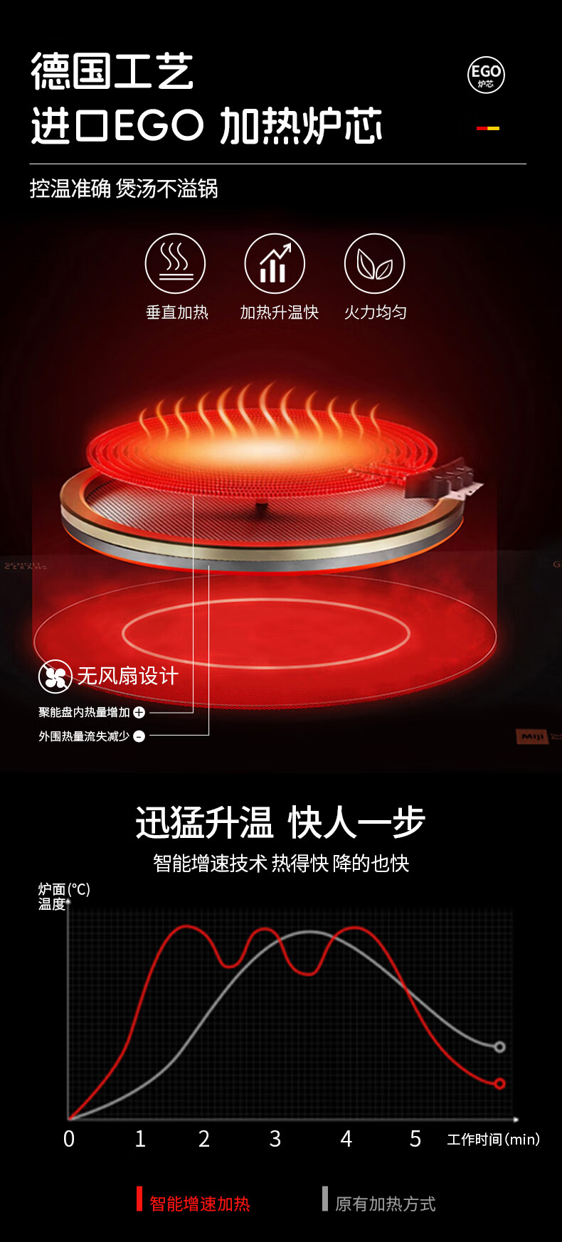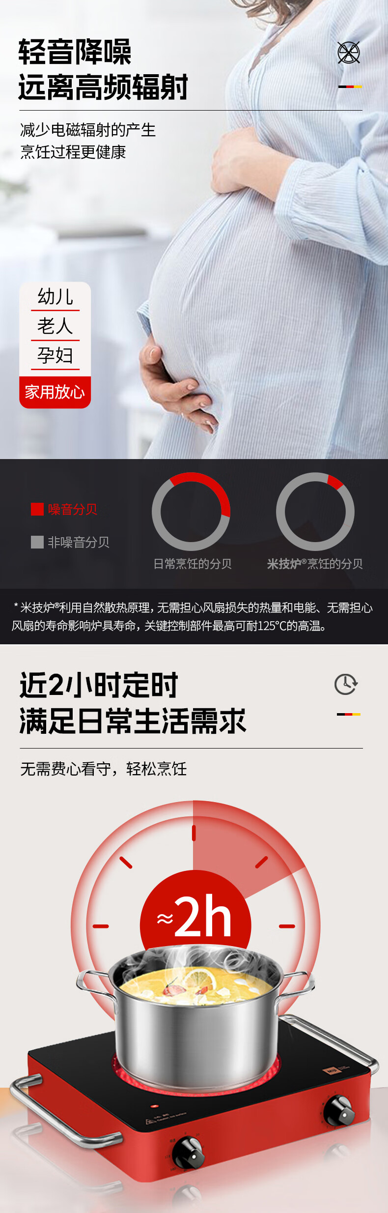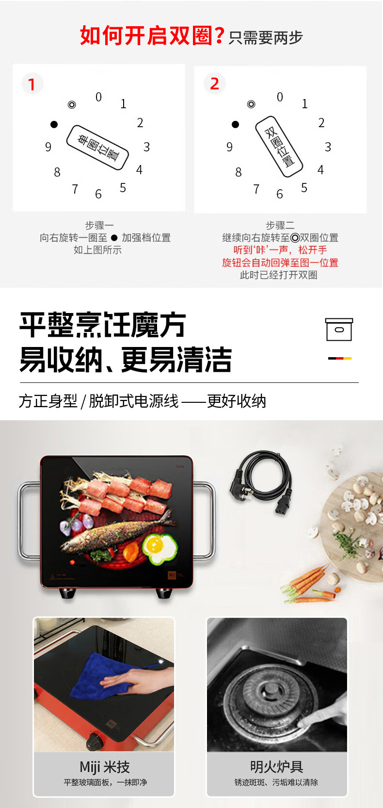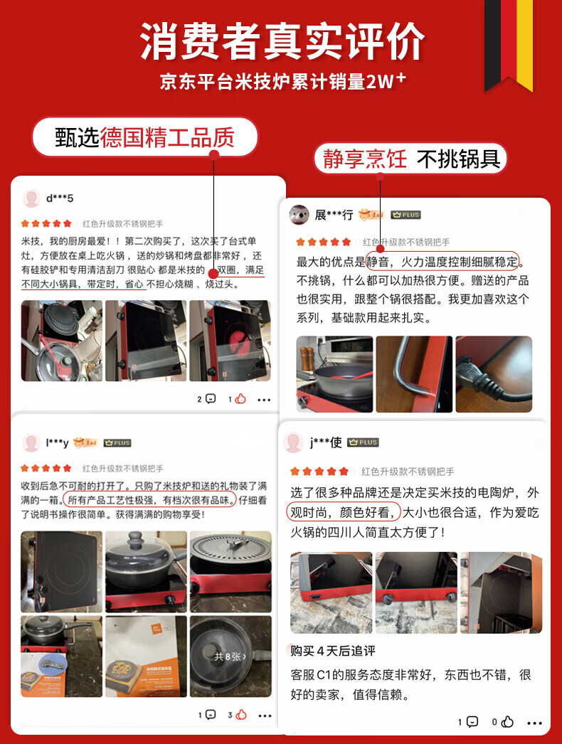 MIJI Electric Ceramic Cooker Induction Cooktop Home Desktop Technology Stove Core Upgraded Double Knob MIJI Stove Nine-level Fire Power and Long Timing Store Manager Highly Recommends IED2000 Red