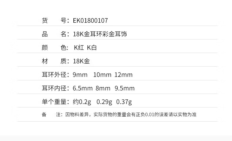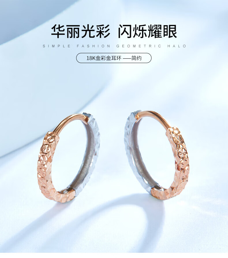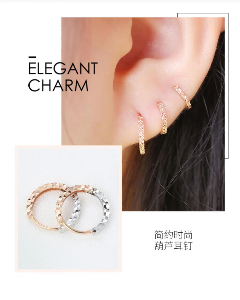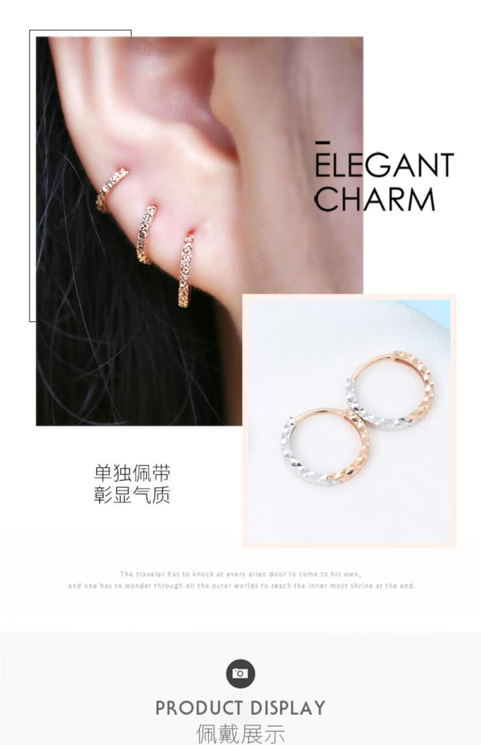 Yubo Gongfang (YUBOGONGFANG) Yubo Gongfang 18K gold earrings, gypsophila gold earrings for women, 18k rose gold ear bone rings, K gold earrings for fans, 18K gold earrings, small diameter 9mm pair