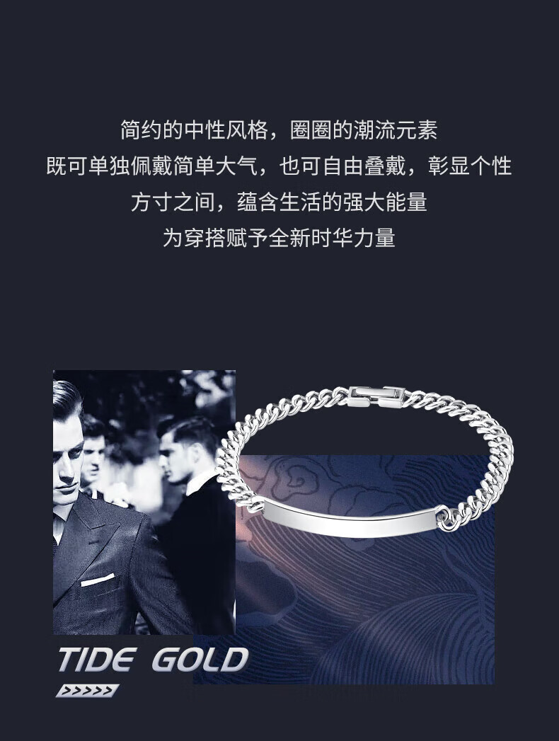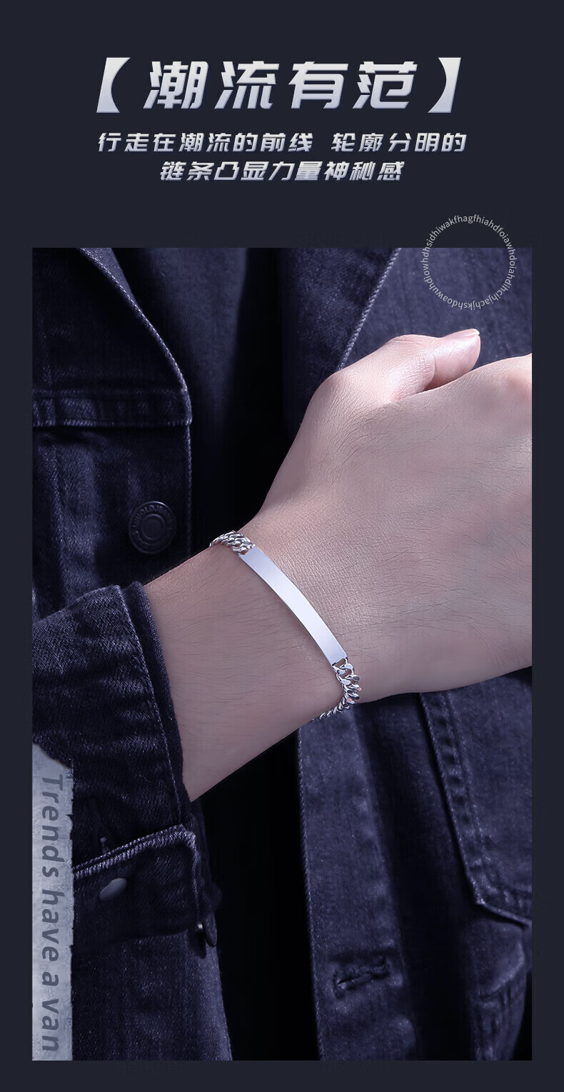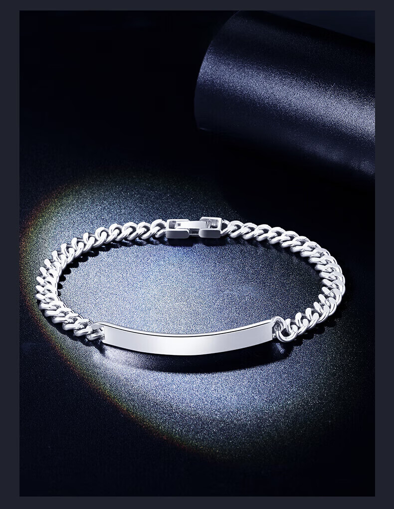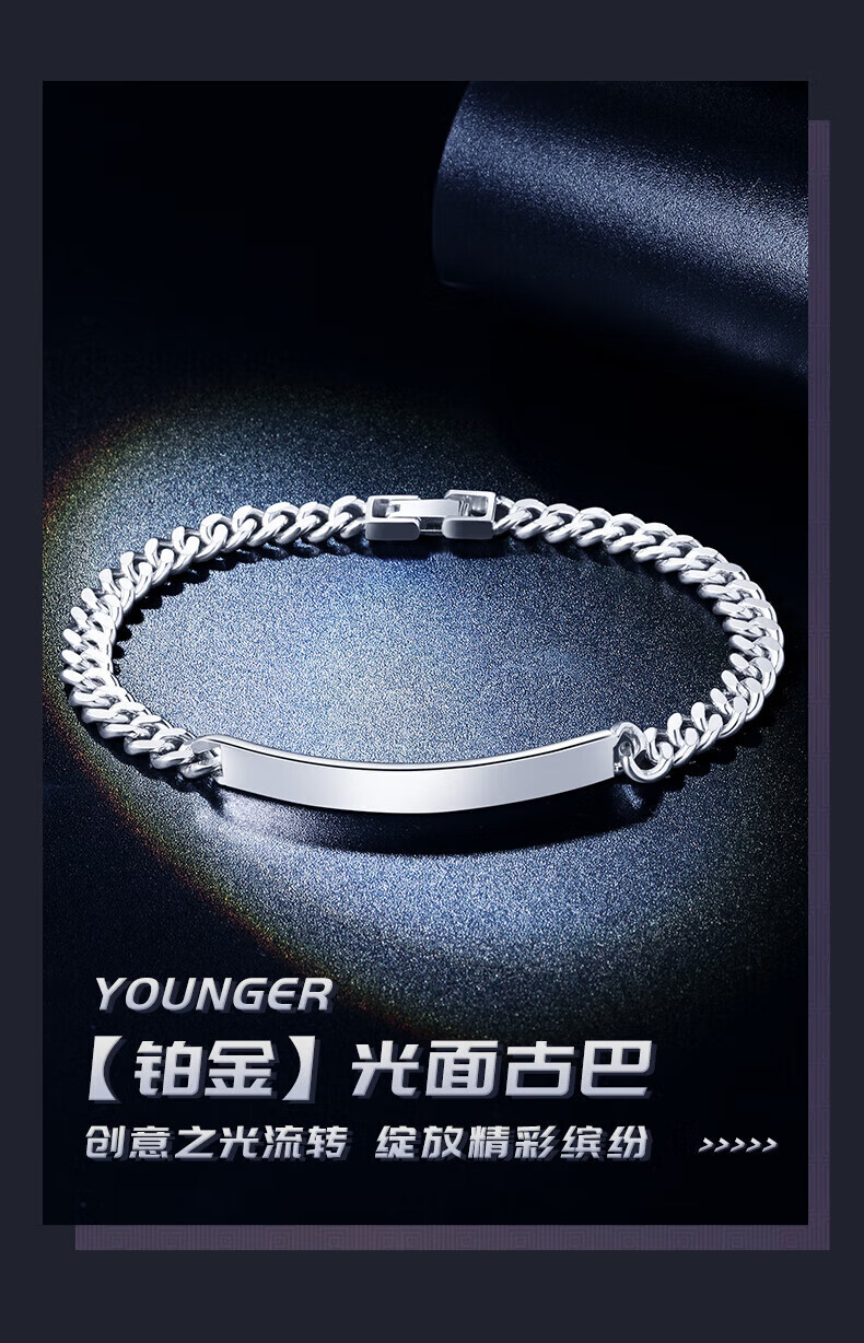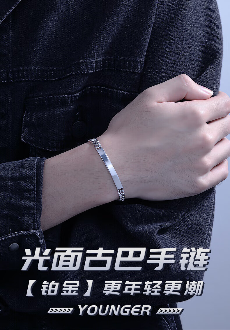 Yubo Workshop platinum bracelet for men pt950 personalized fashionable platinum Cuban men's bracelet domineering chain platinum 950 18cm 23-25g width about 6mm