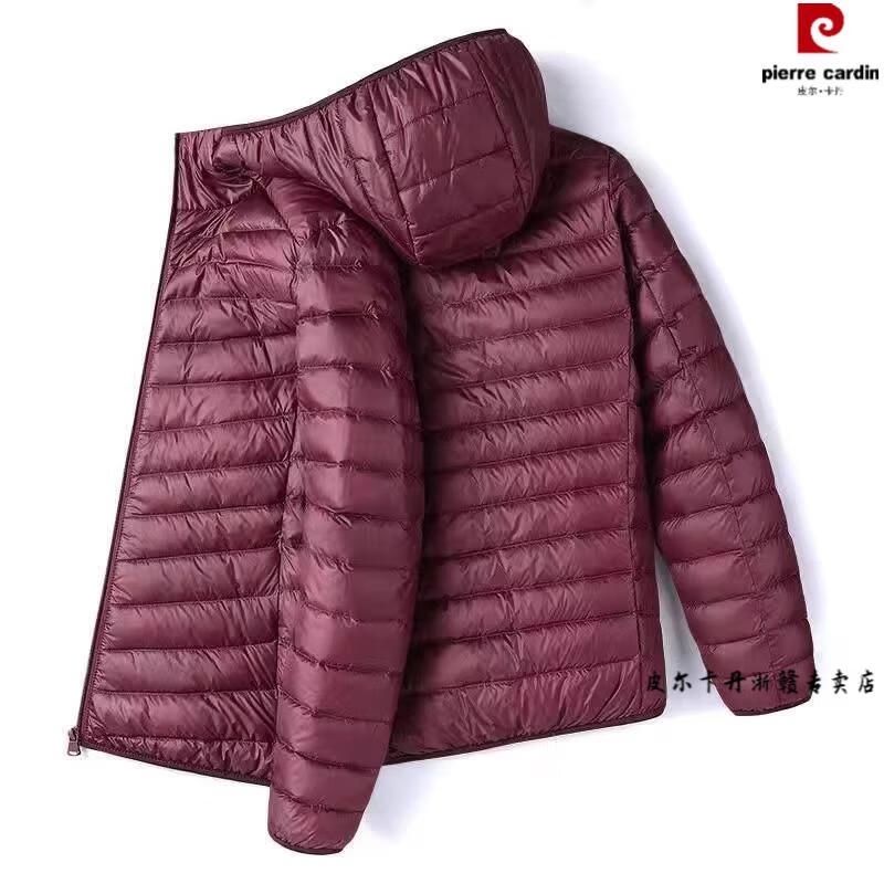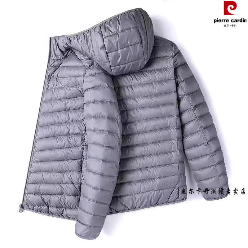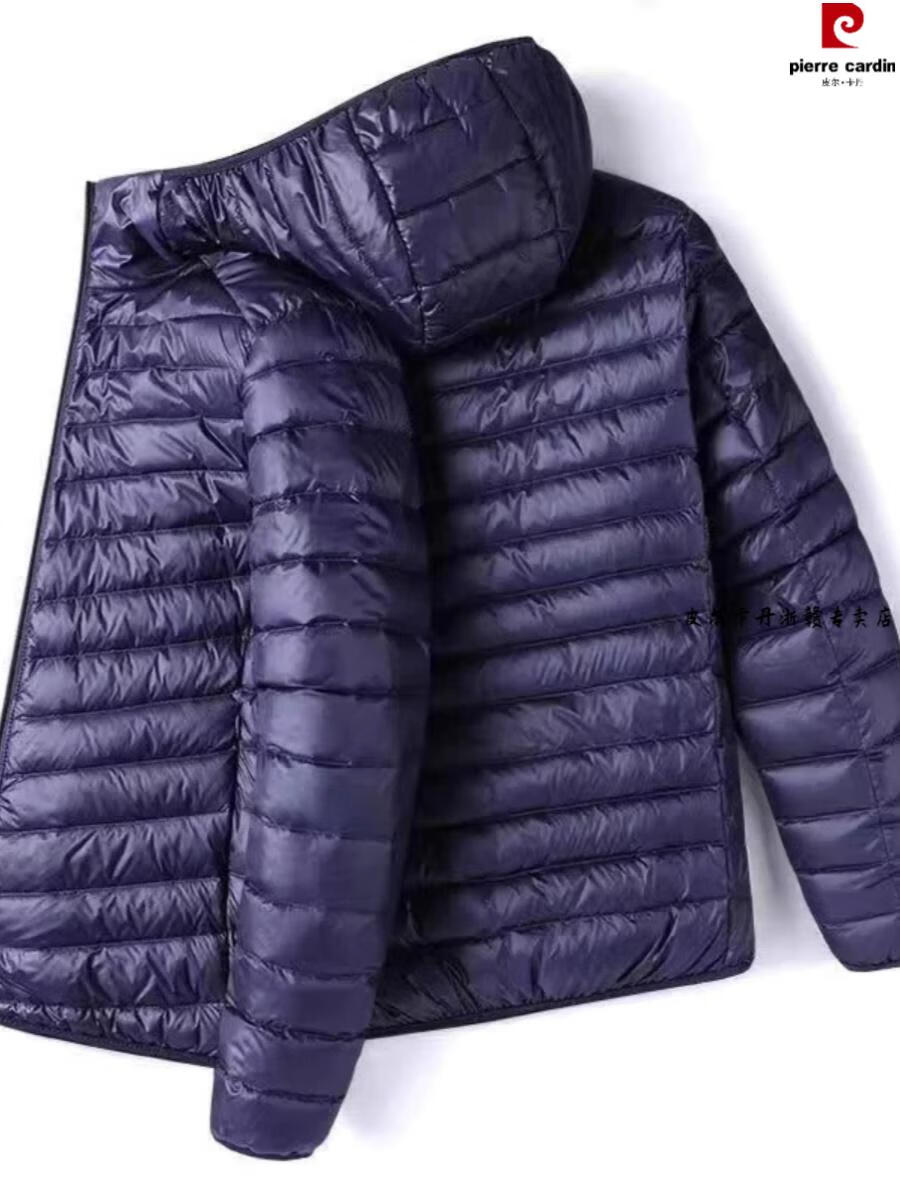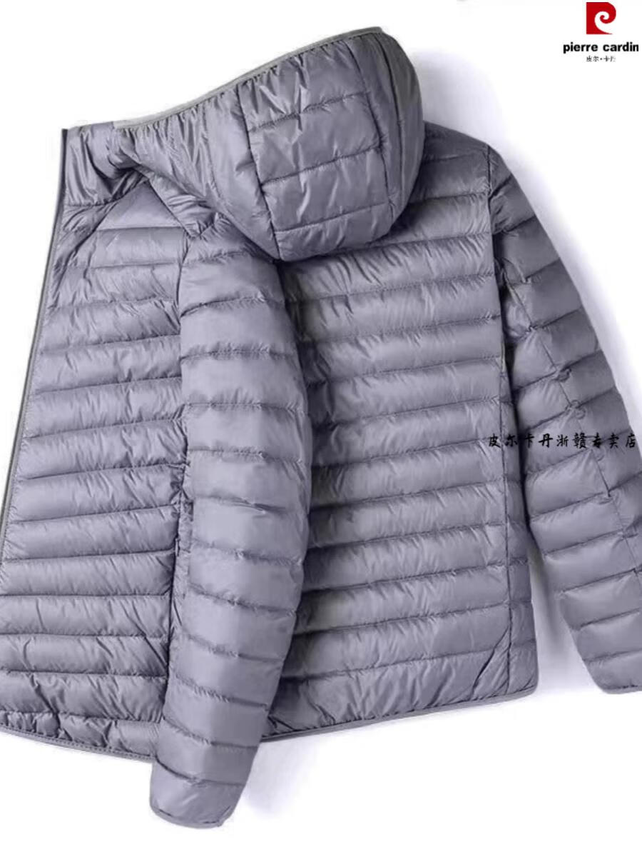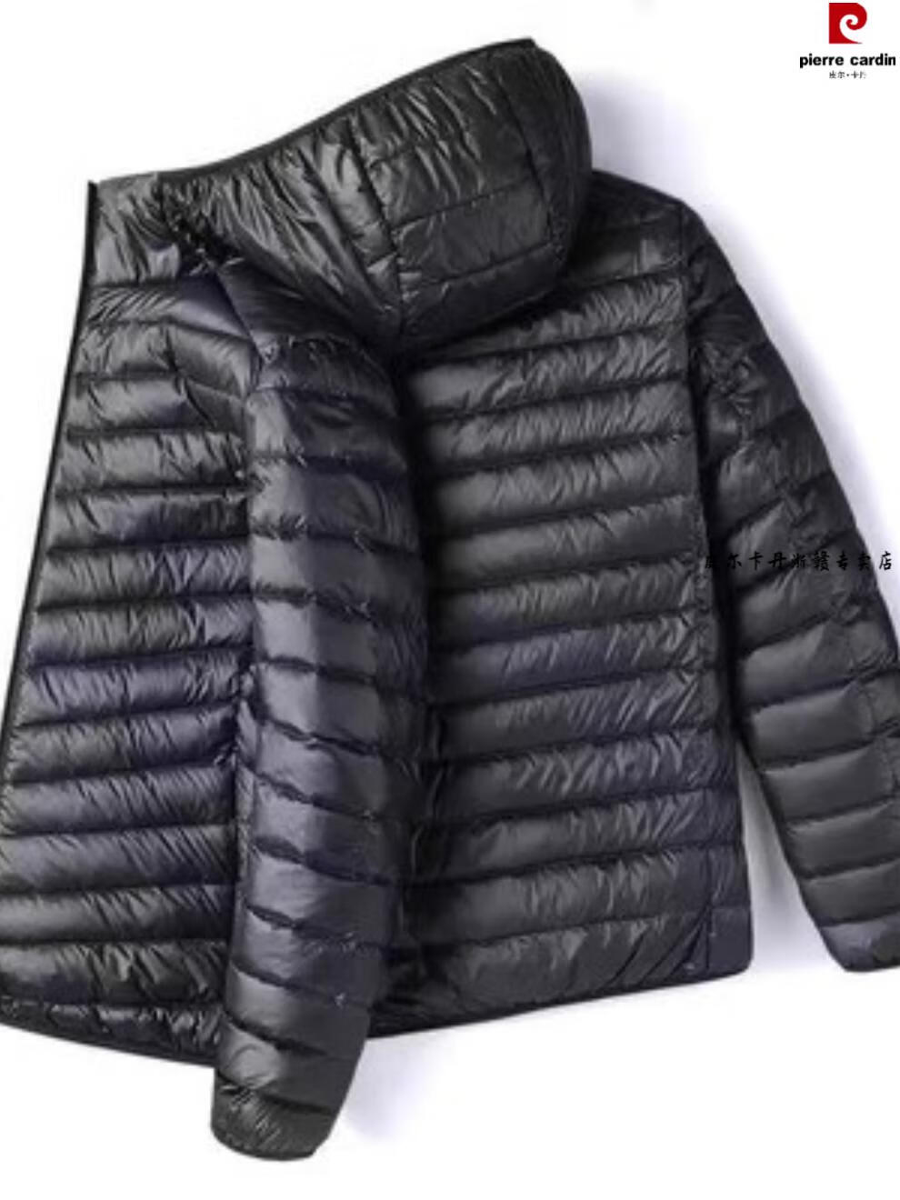 Pierre Cardin brand autumn and winter new lightweight down cotton coat men's short middle-aged cotton coat lightweight hooded cotton jacket daddy outfit black hooded 3XL 165180Jin Jin equals 0.5 kg