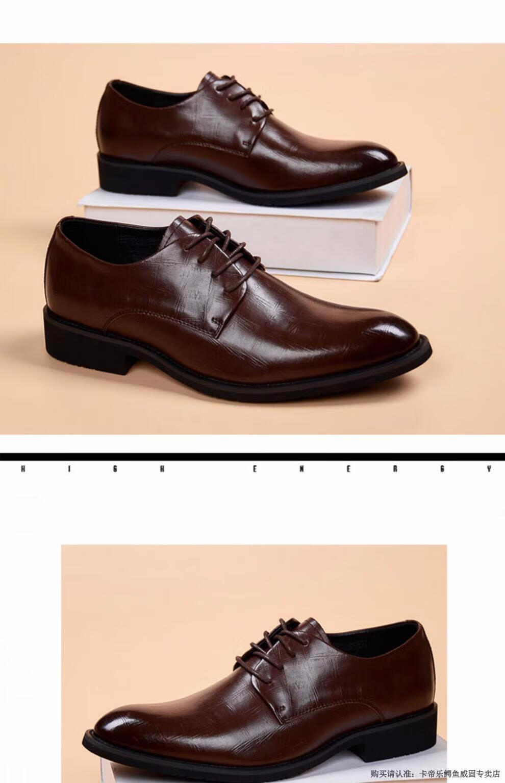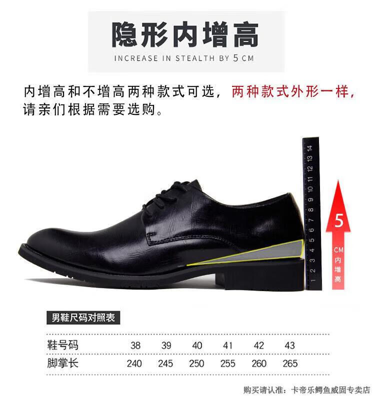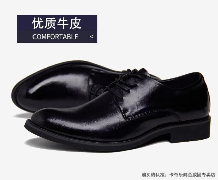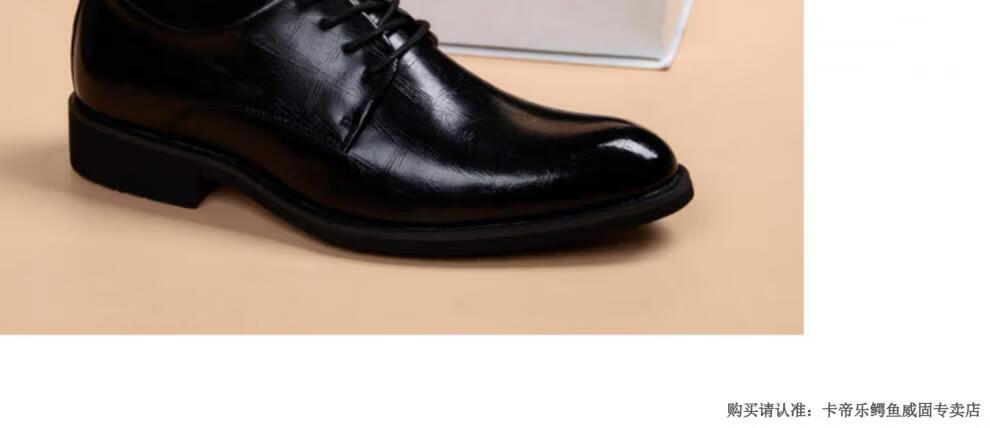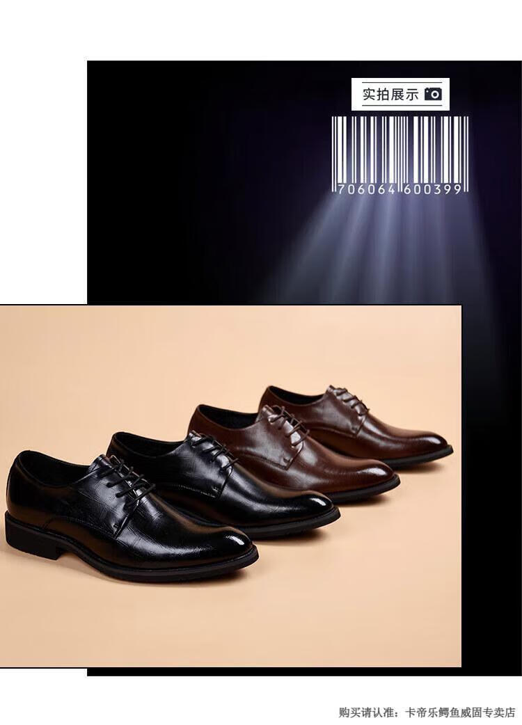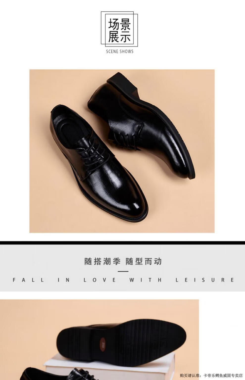 CARTELO crocodile leather shoes men's genuine leather British pointed-toe lace-up business formal men's shoes youth Korean style casual inner heightening soft sole leather shoes black inner heightening 40