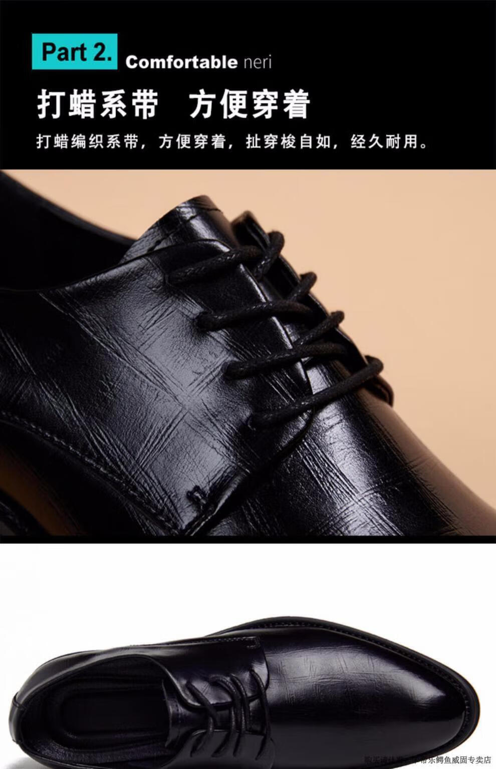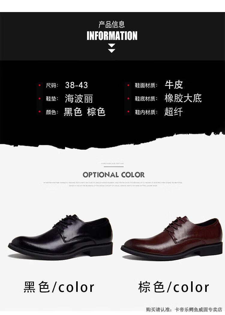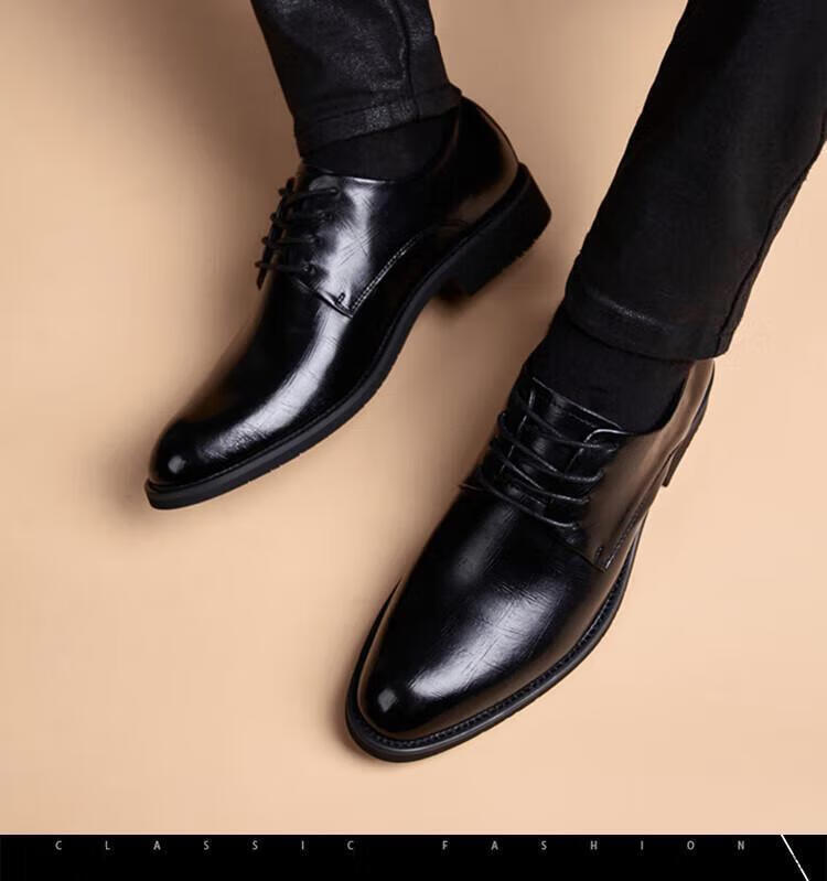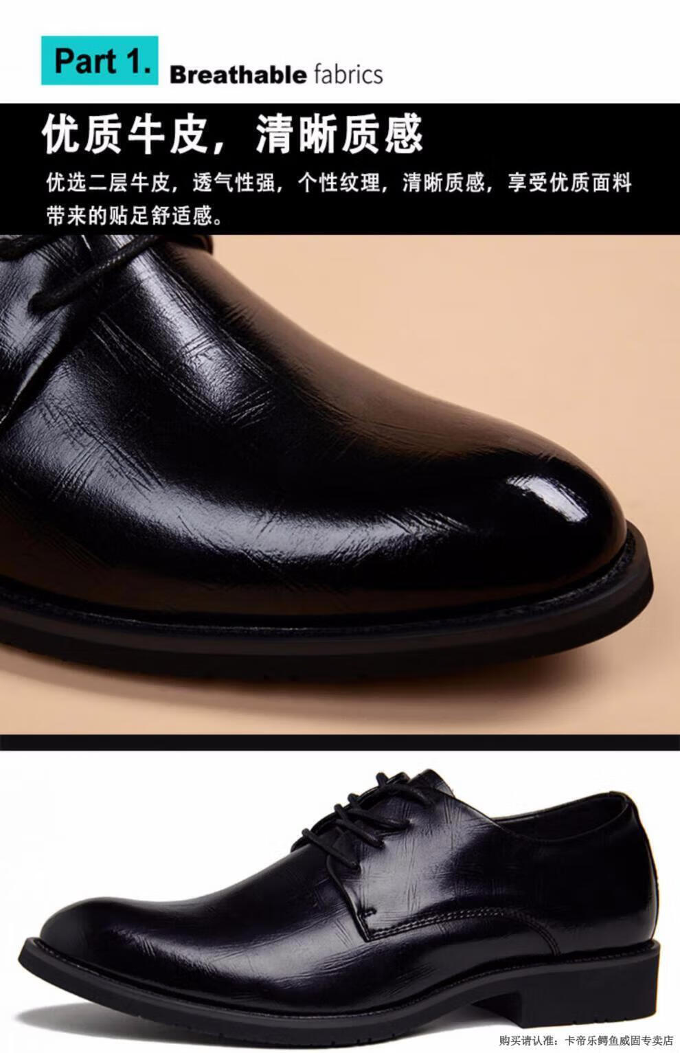 CARTELO crocodile leather shoes men's genuine leather British pointed-toe lace-up business formal men's shoes youth Korean style casual inner heightening soft sole leather shoes black inner heightening 40