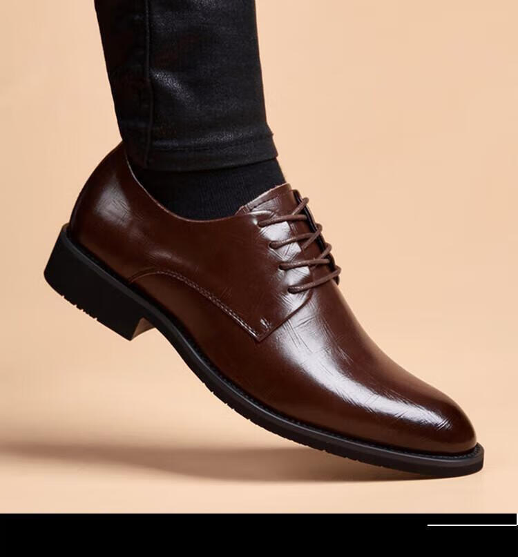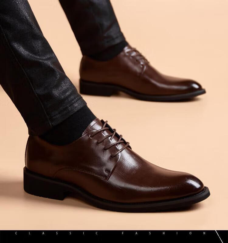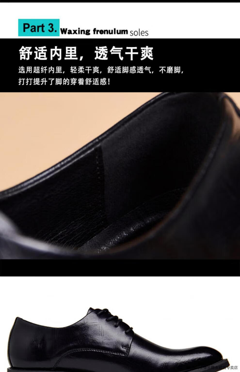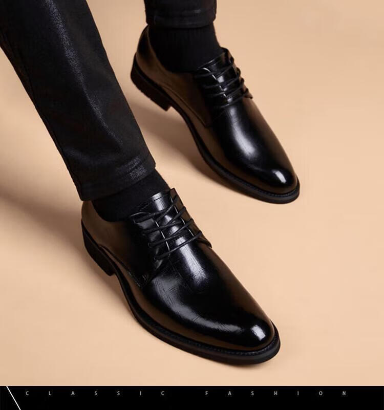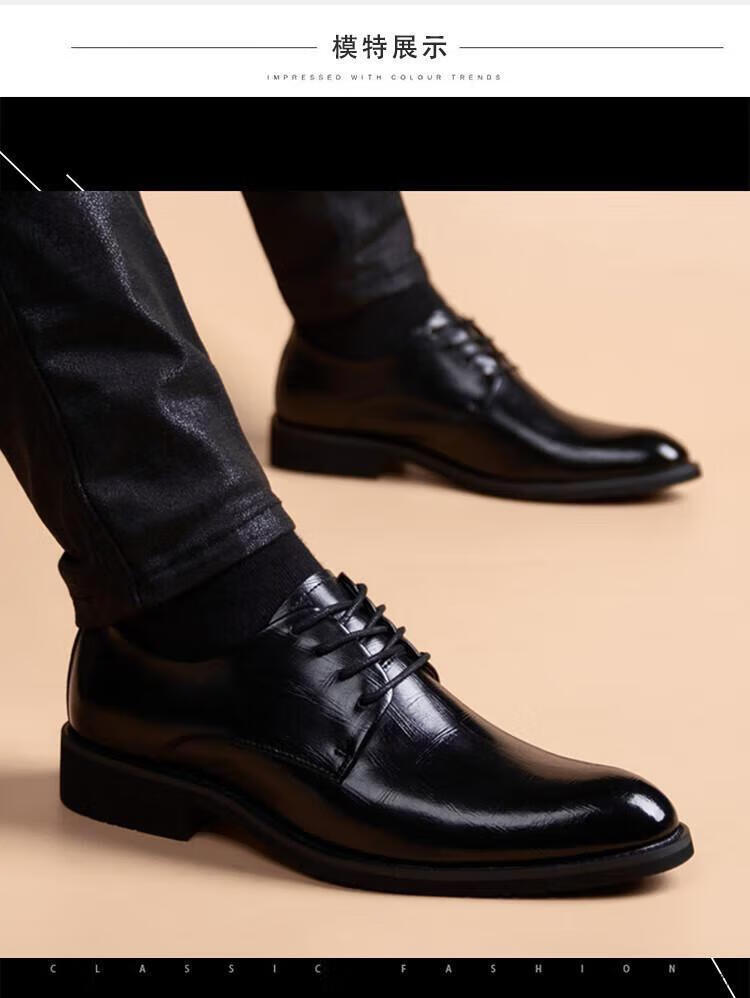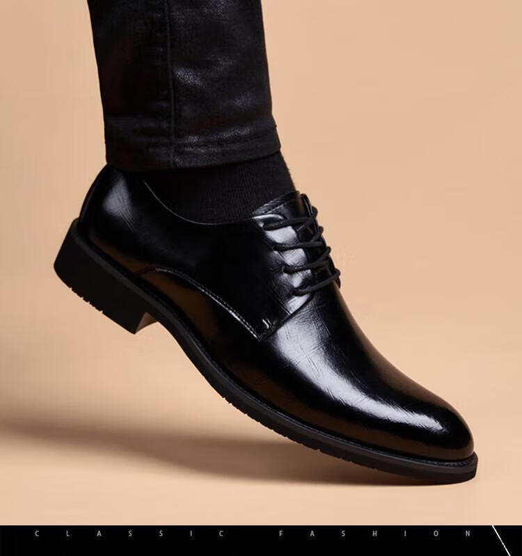 CARTELO crocodile leather shoes men's genuine leather British pointed-toe lace-up business formal men's shoes youth Korean style casual inner heightening soft sole leather shoes black inner heightening 40