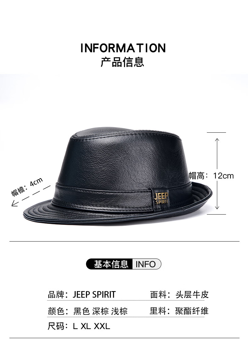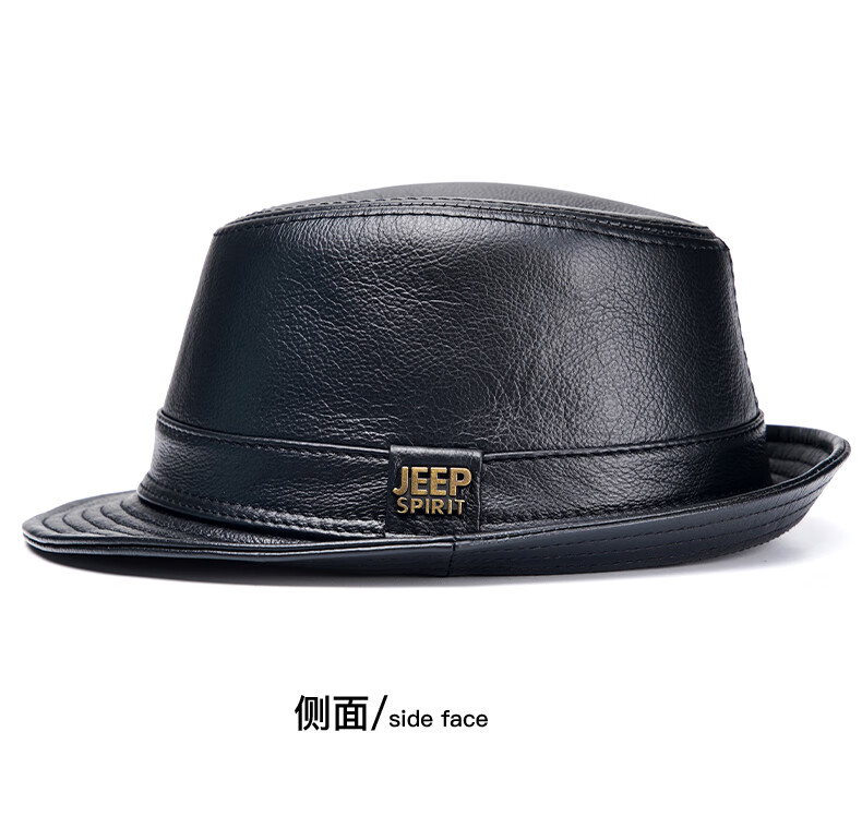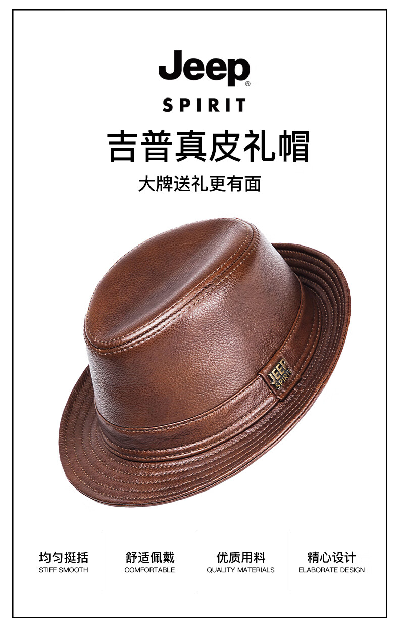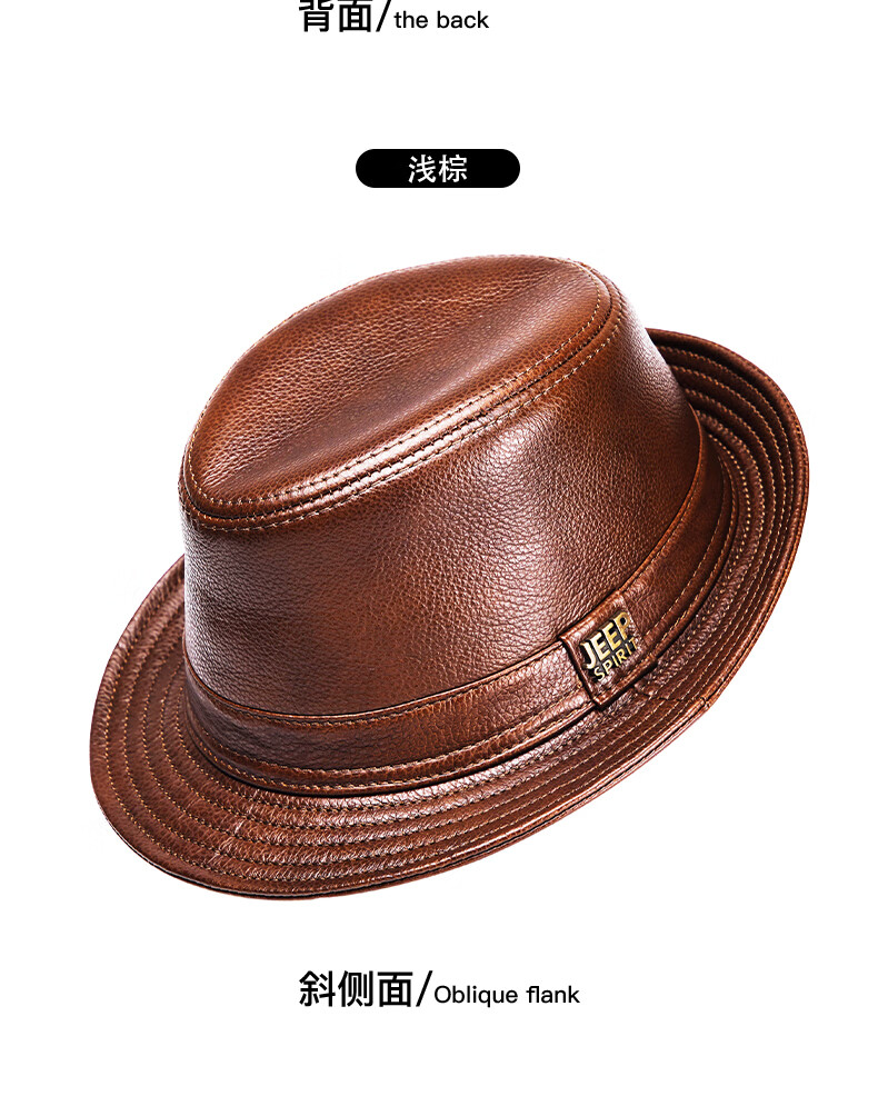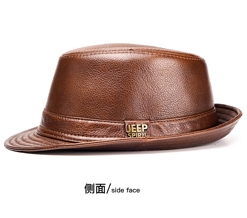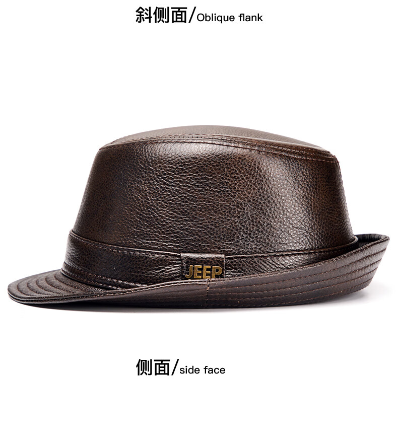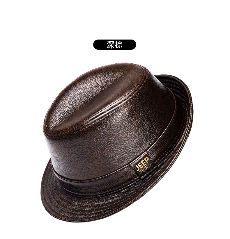 JEEP SPIRIT genuine leather top hat men's retro casual British jazz hat middle-aged and elderly father's hat cowhide beach hat old man hat dark brown medium size XL (57-58cm) adjustable