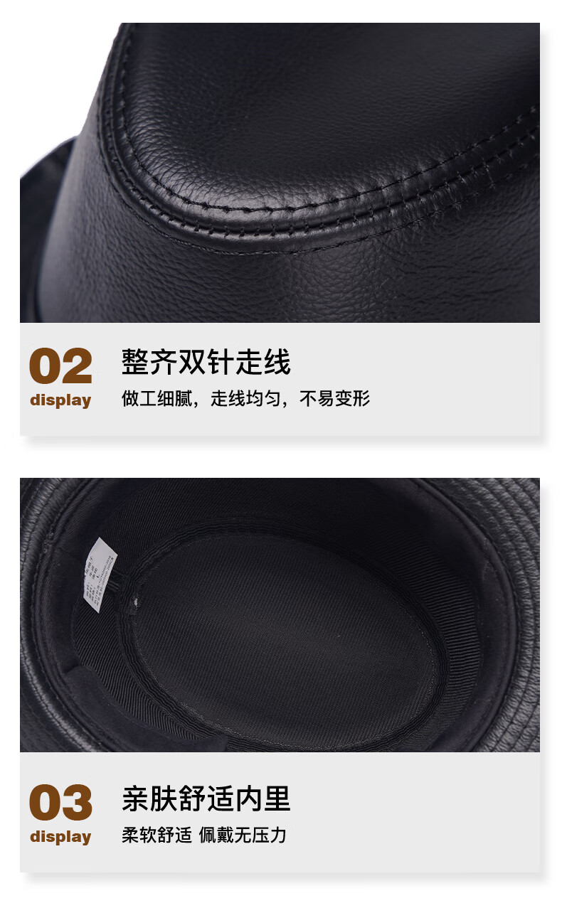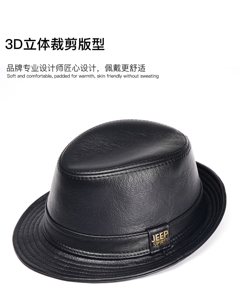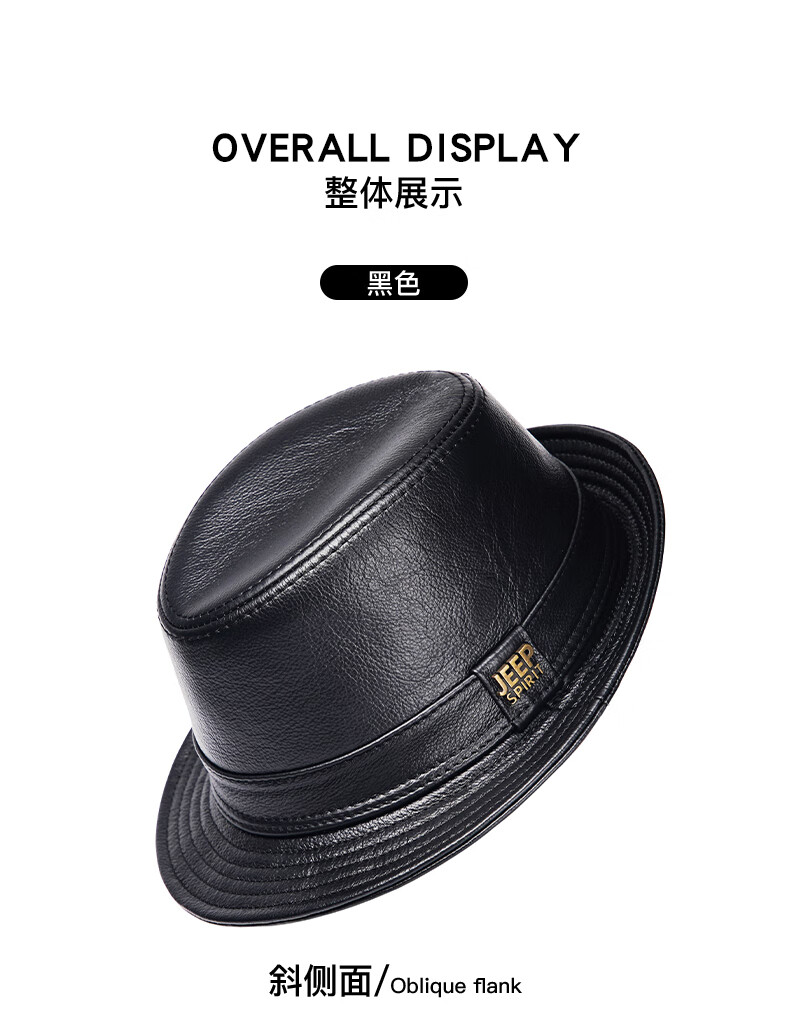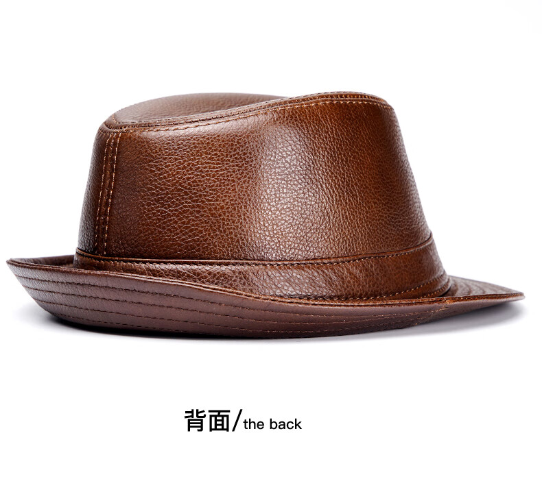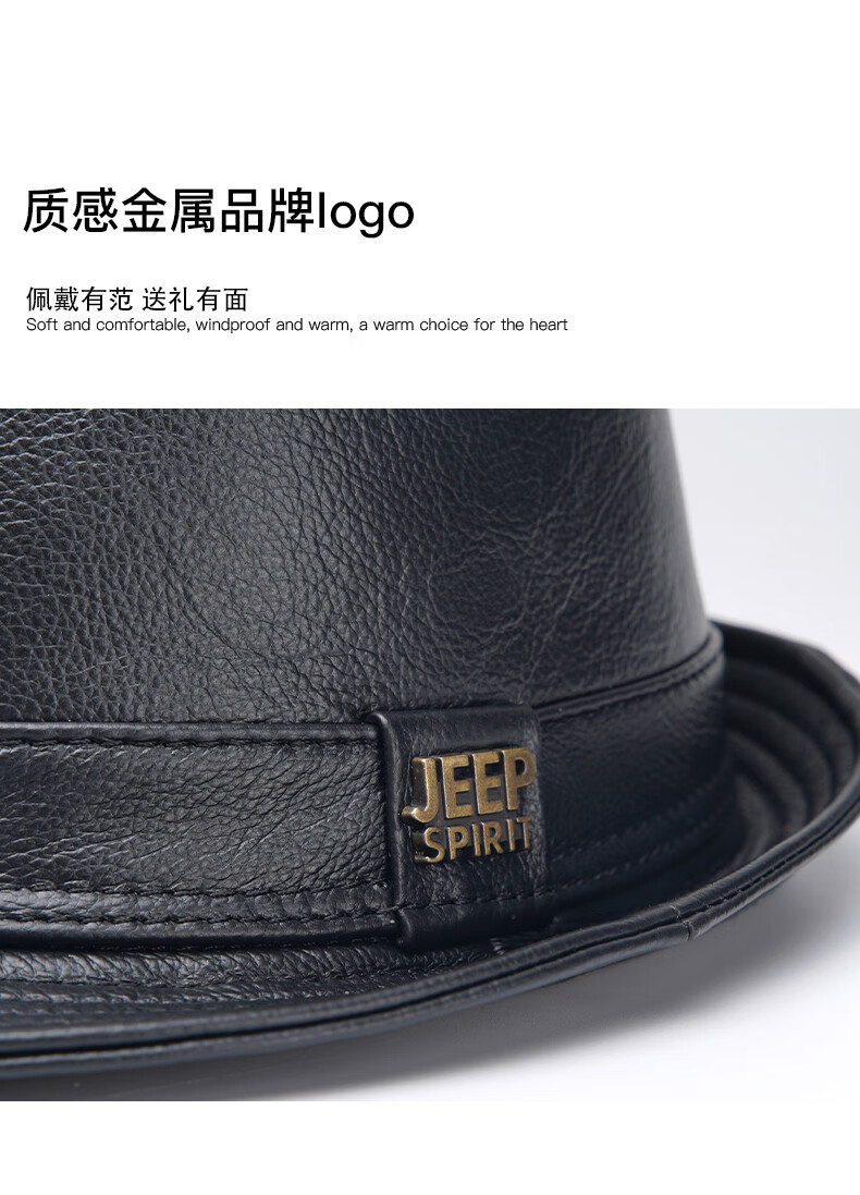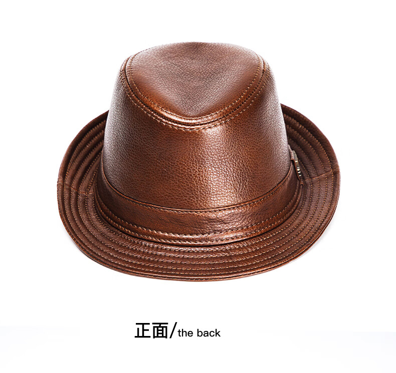 JEEP SPIRIT genuine leather top hat men's retro casual British jazz hat middle-aged and elderly father's hat cowhide beach hat old man hat dark brown medium size XL (57-58cm) adjustable