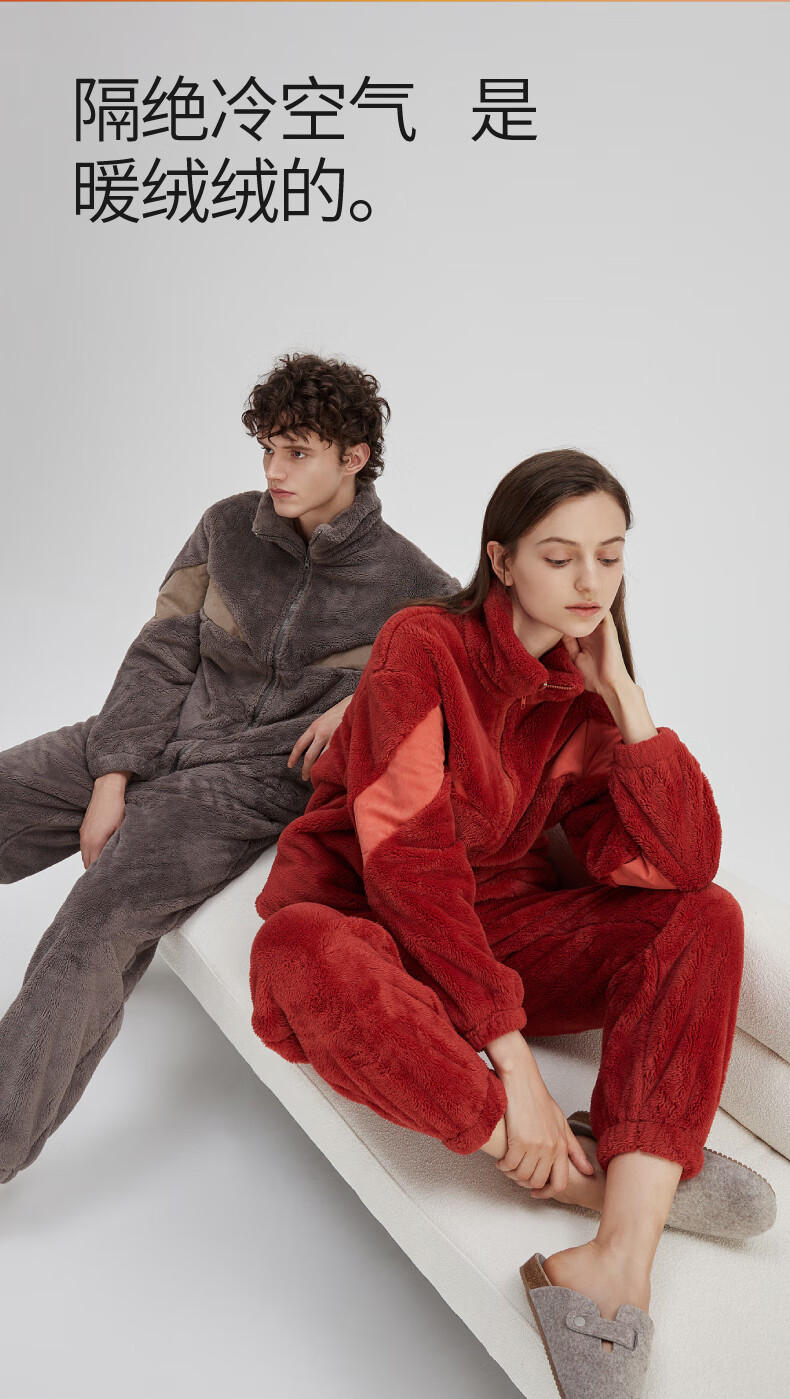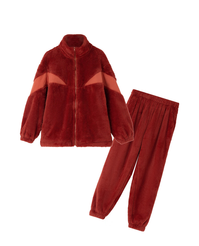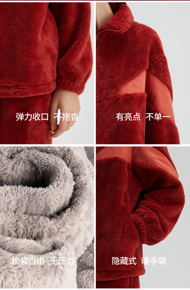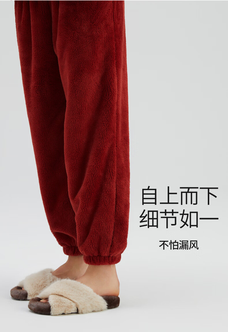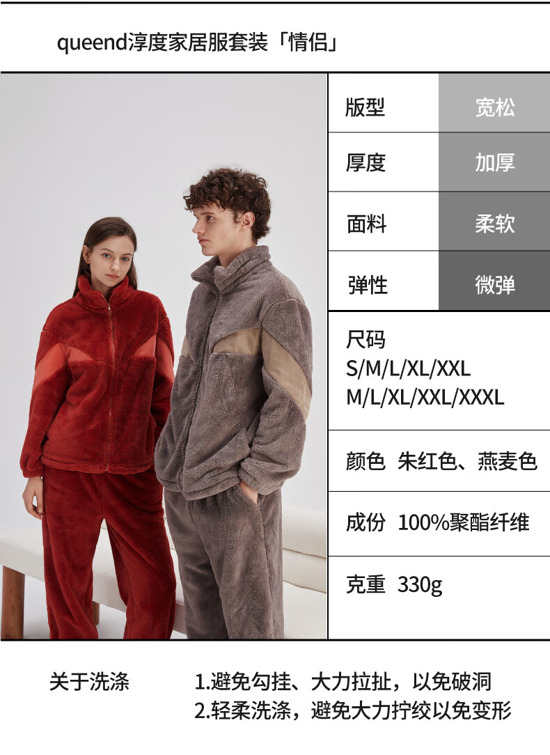 Chundu soft coral velvet pajamas for women winter thickened plus velvet wedding couple set men's flannel home clothes vermilion M