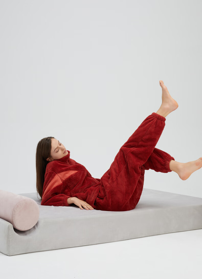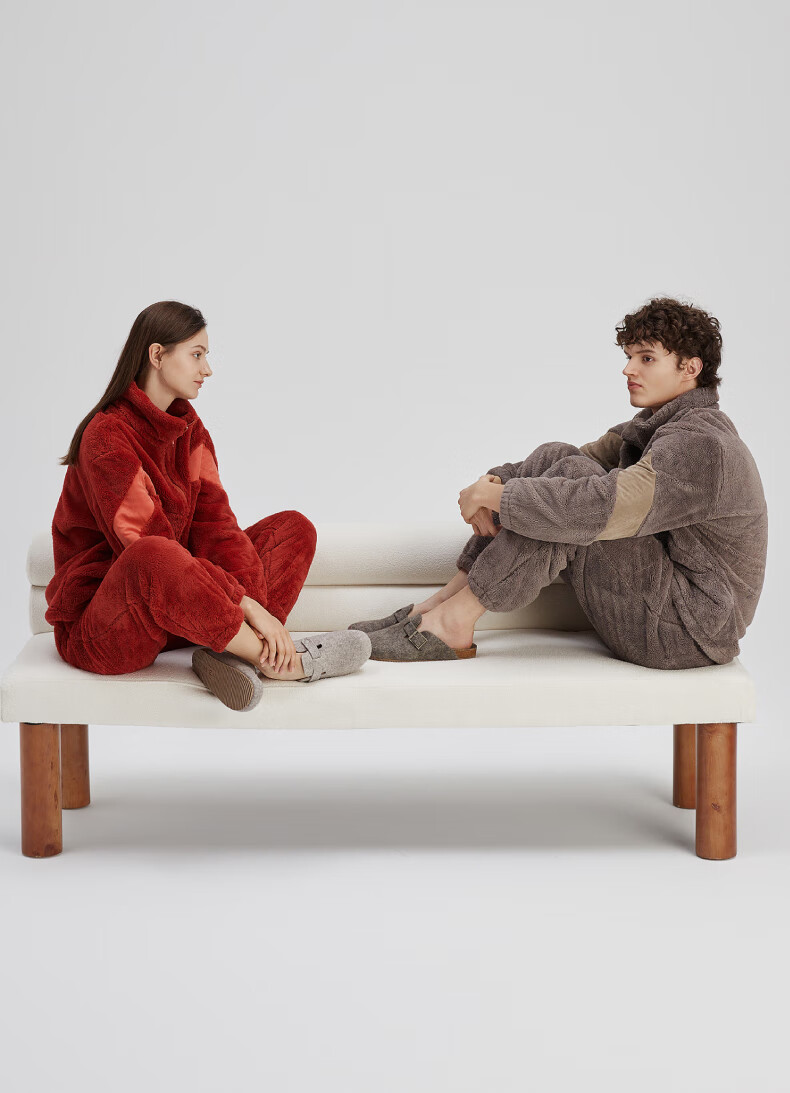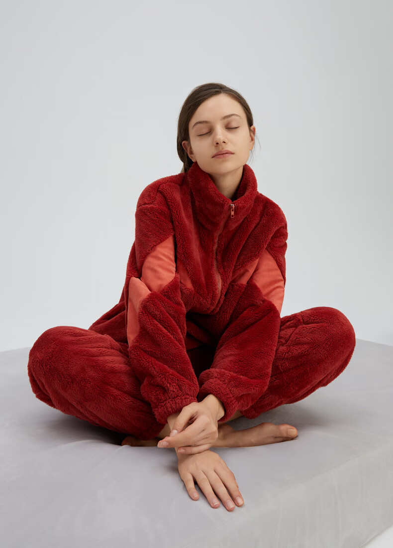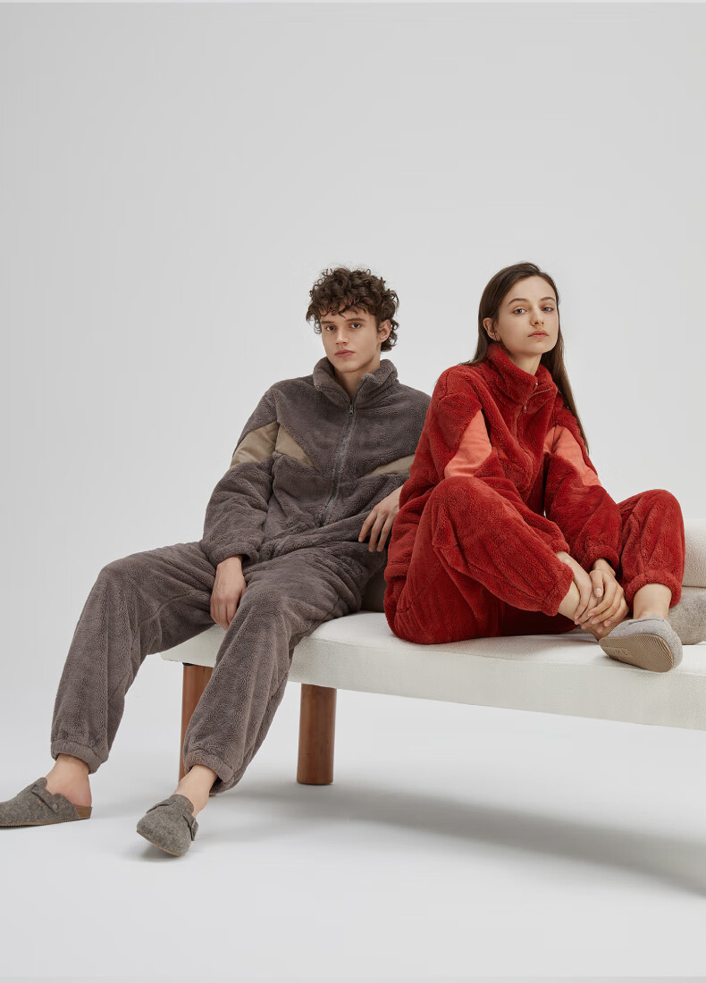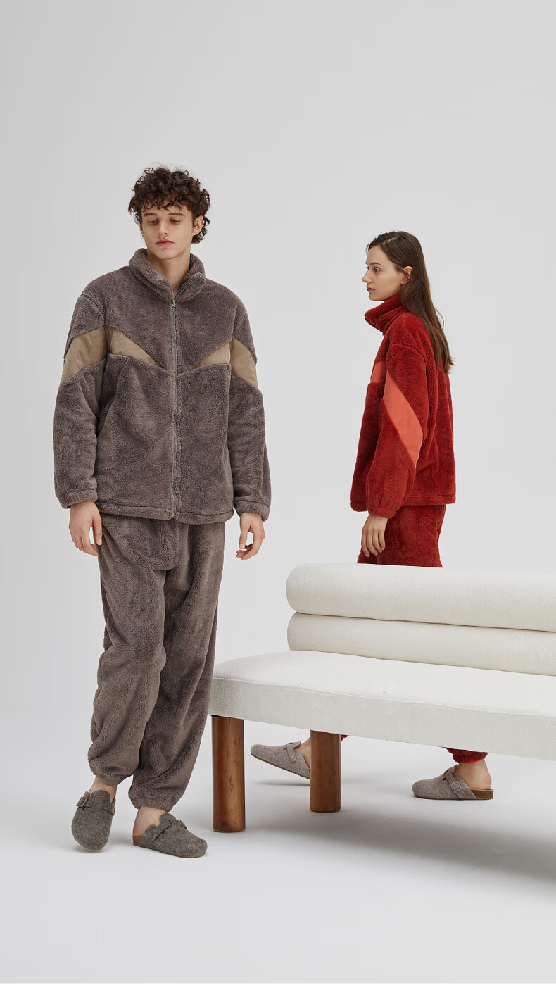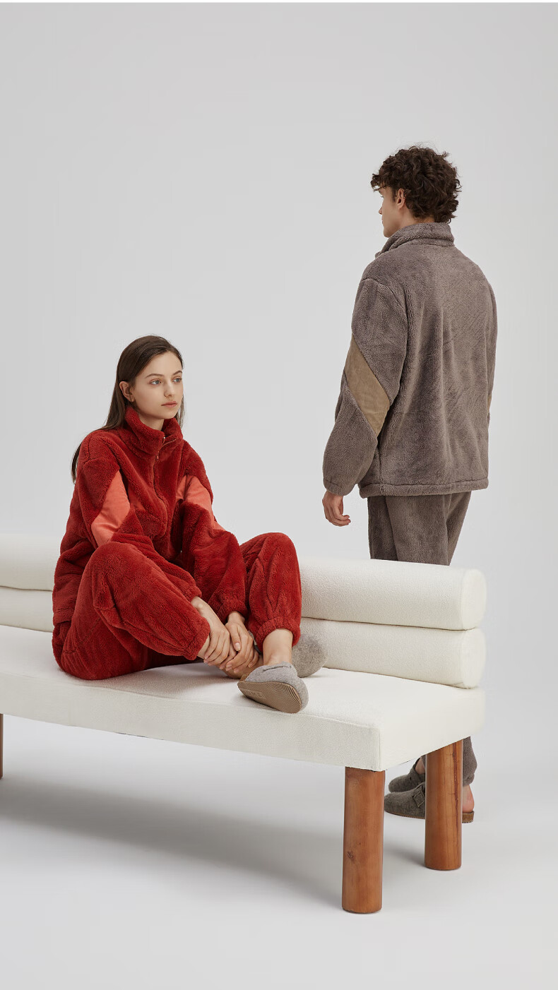 Chundu soft coral velvet pajamas for women winter thickened plus velvet wedding couple set men's flannel home clothes vermilion M