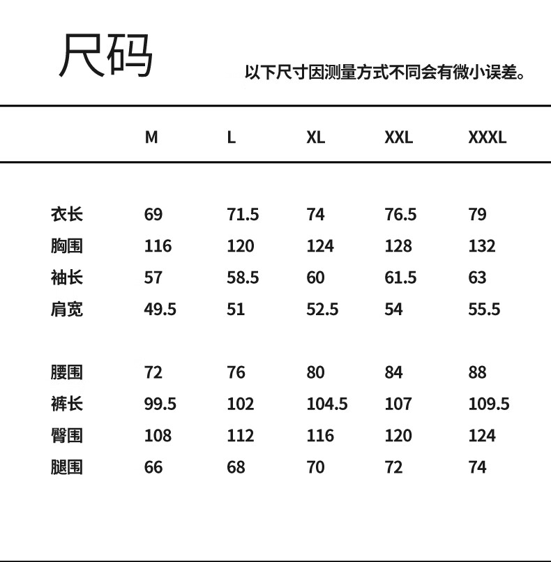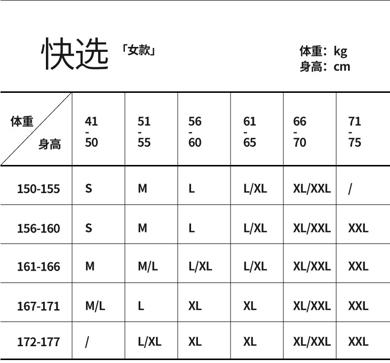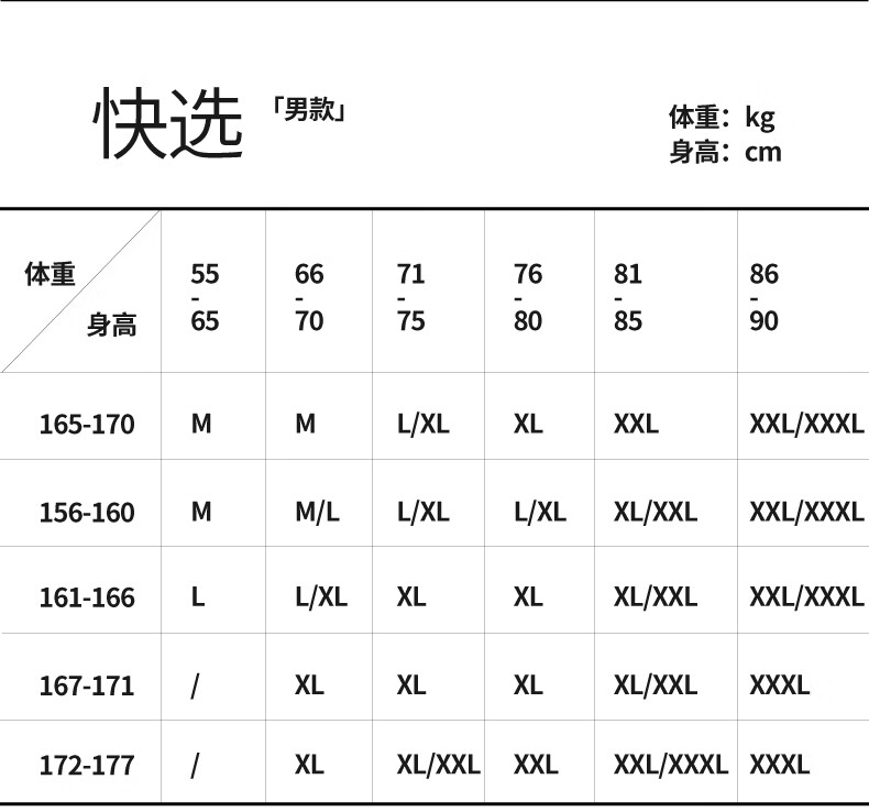 China (cm) 160-165/84-86 165-170 / 88-90 167-172 / 92-96 168-173 / 98-102 170-176 / 106-110