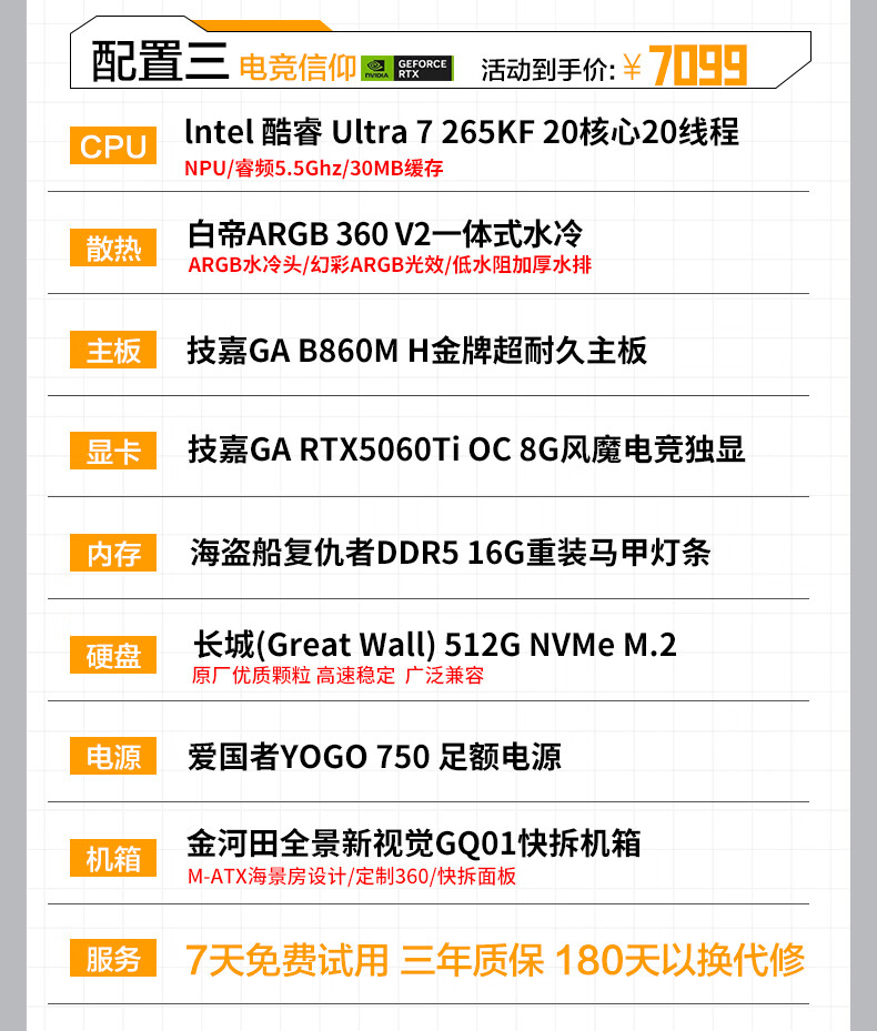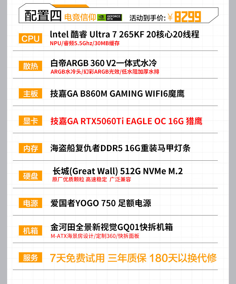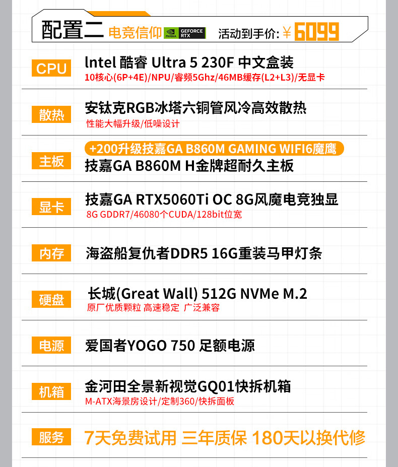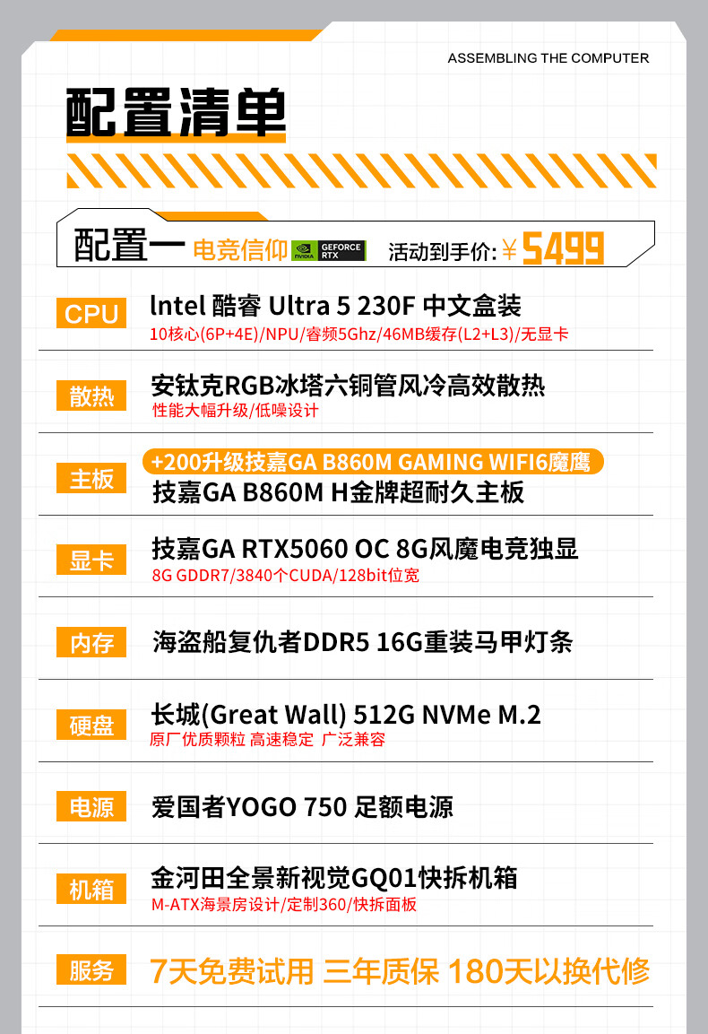 Gigabyte Core Ultra7 265KF/U5 230F/RTX5060Ti/5070 e-sports game Dawa Delta desktop assembly computer host rendering DIY assembly machine 2 Ultra 5 230F丨RTX5060Ti