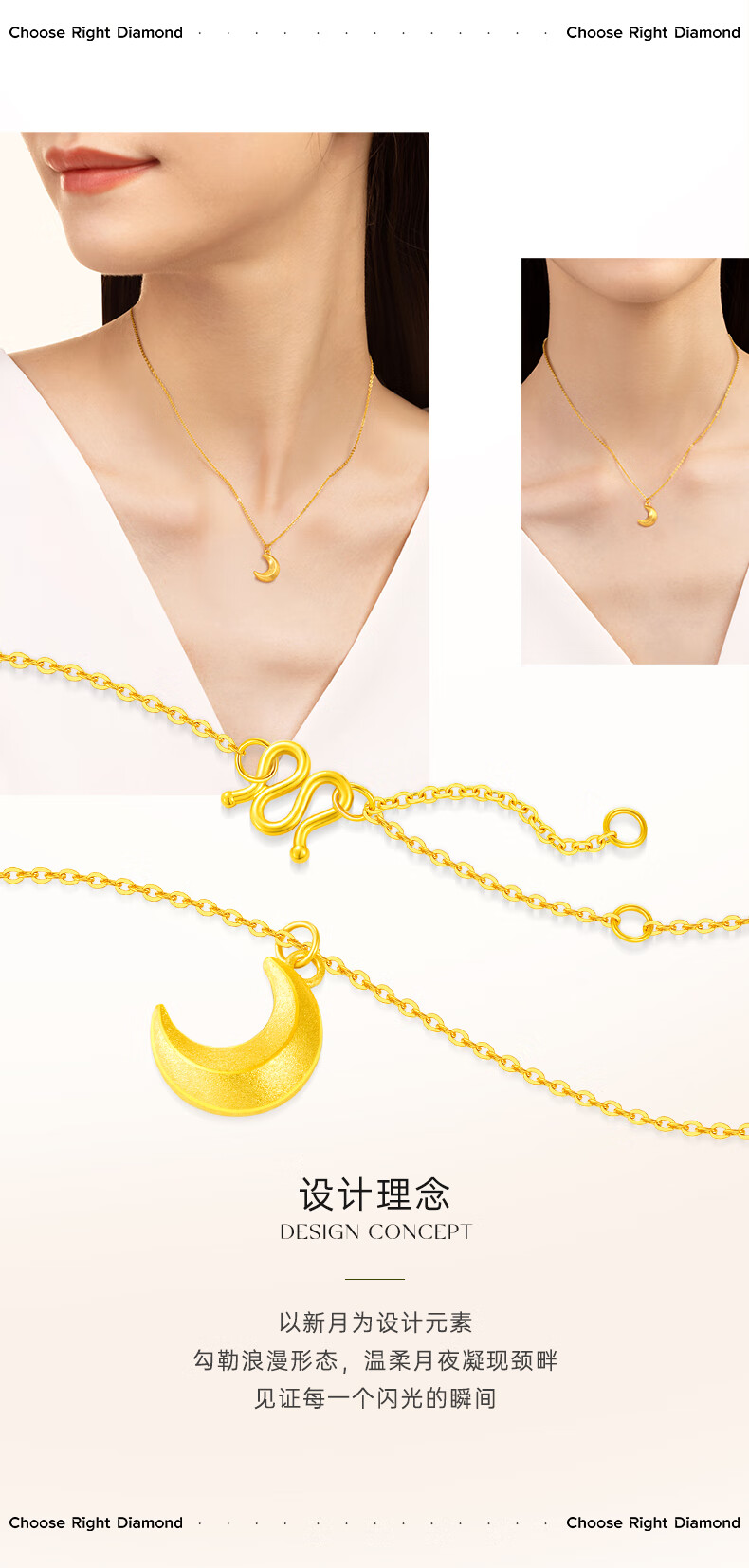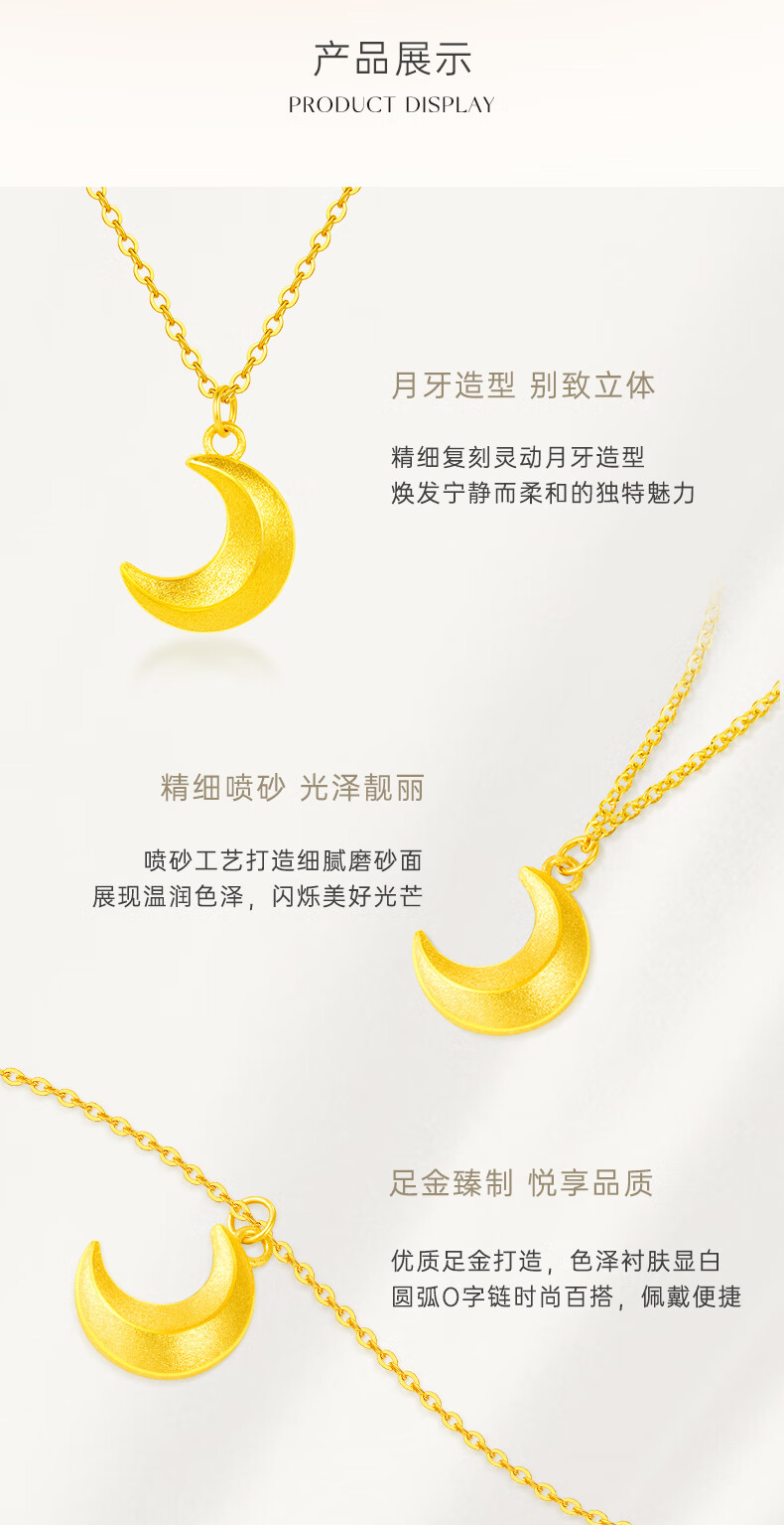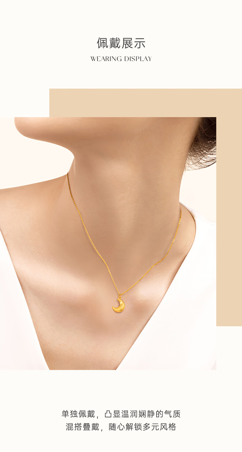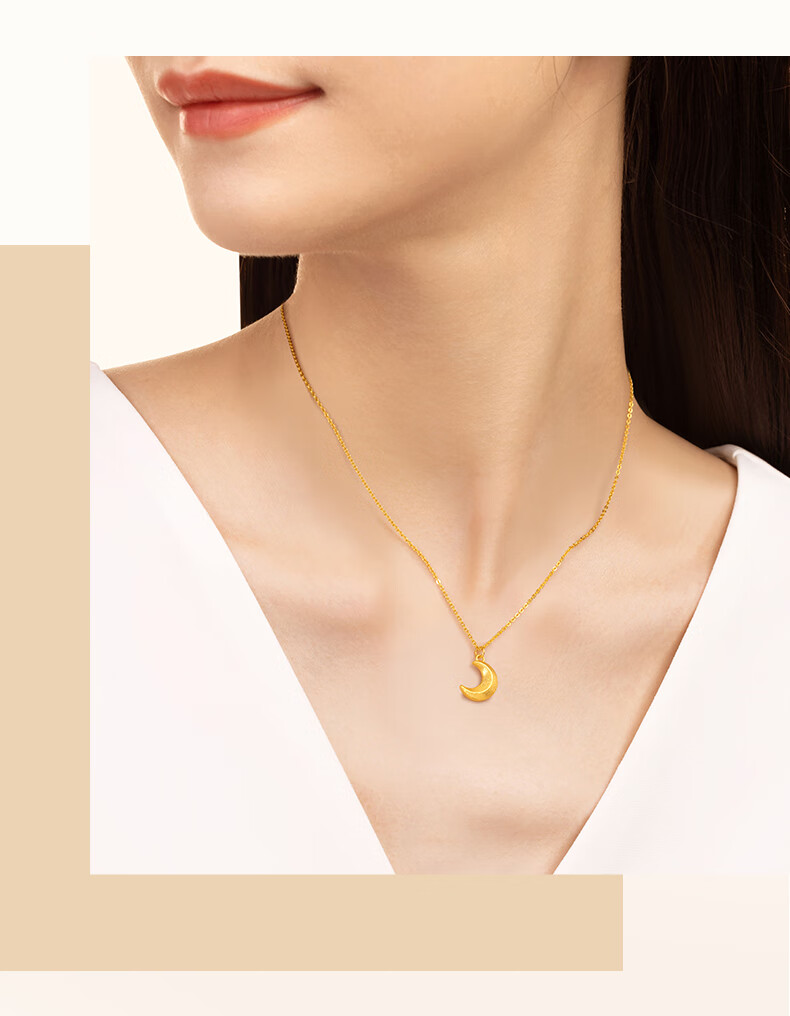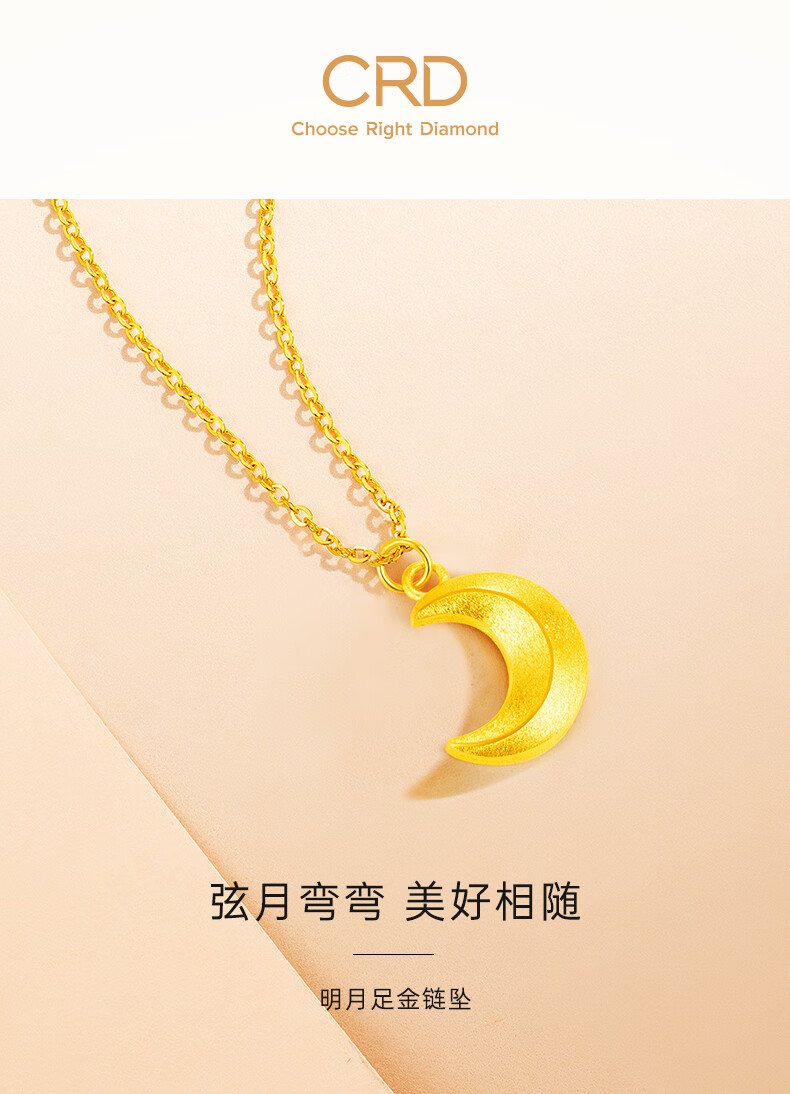 CRD Ke Laidi Gold Necklace Curved Moon Pure Gold 999 Pendant Set Chain for Girlfriend’s Birthday Gift 4g|With Necklace|HX00251A