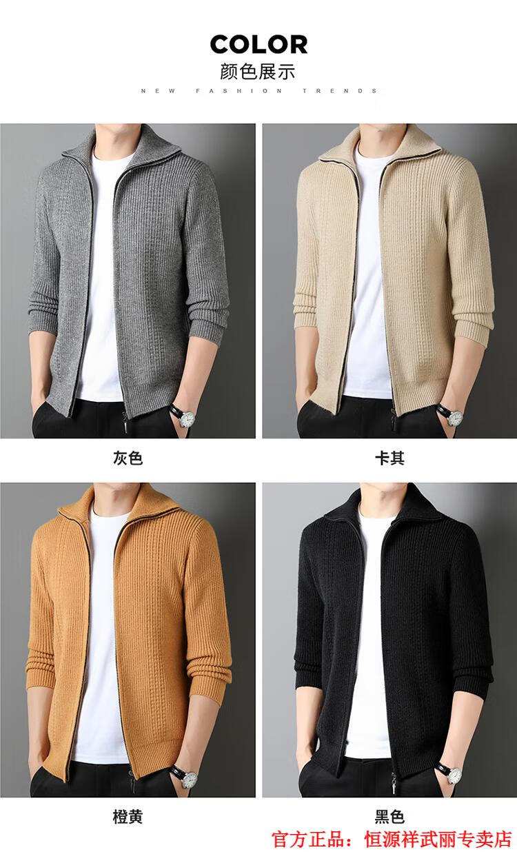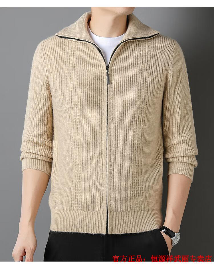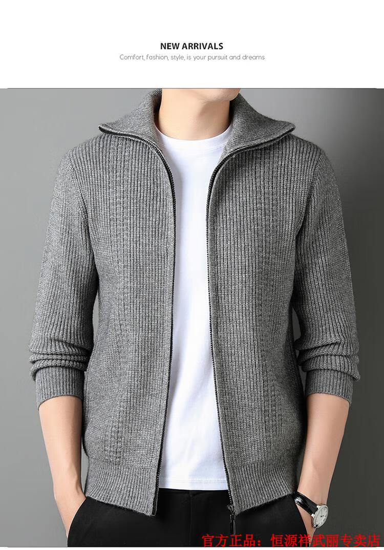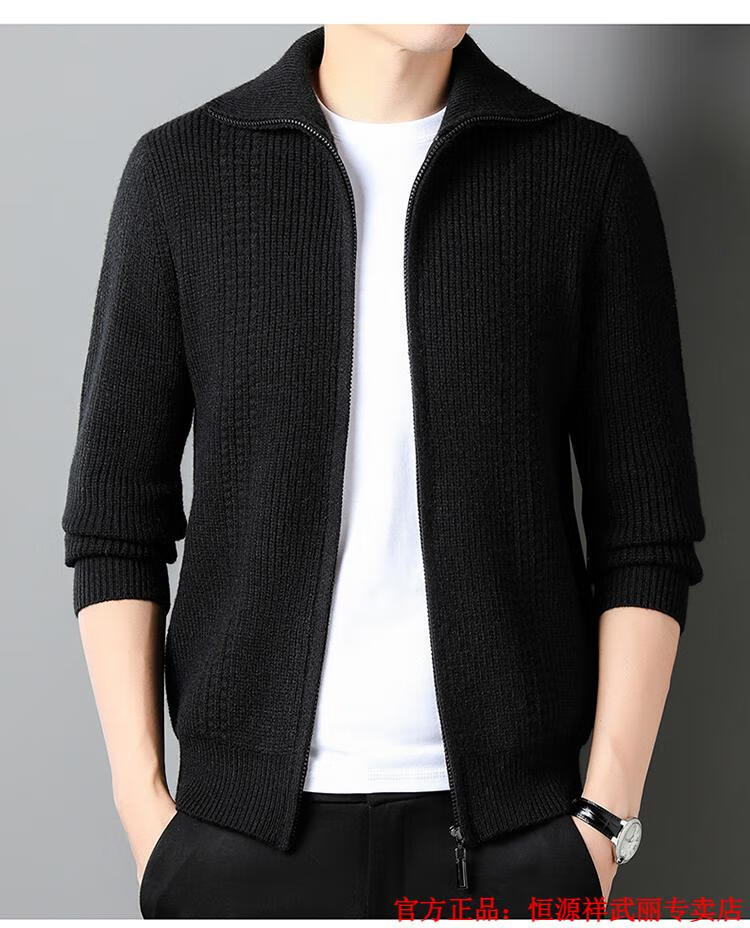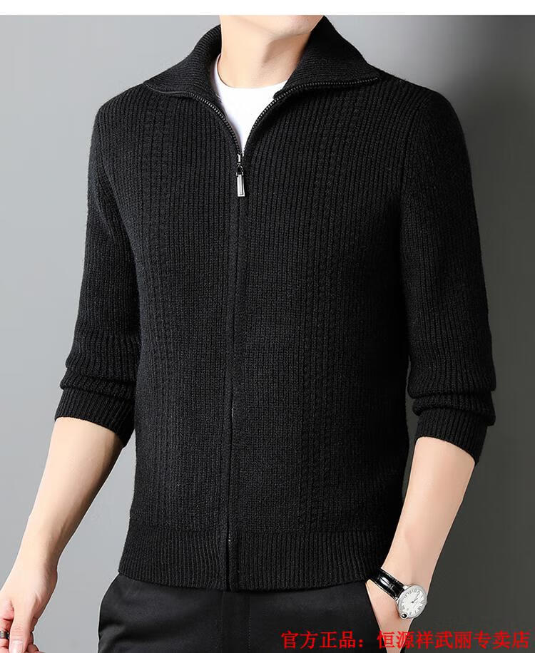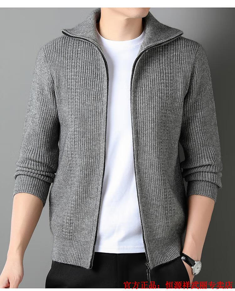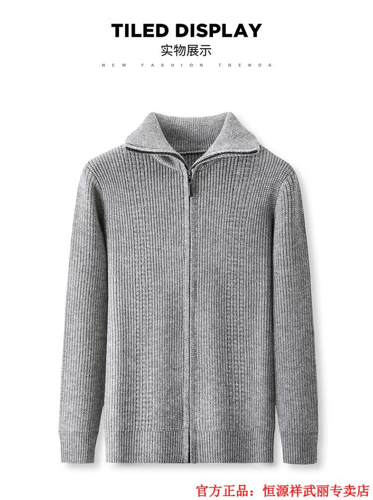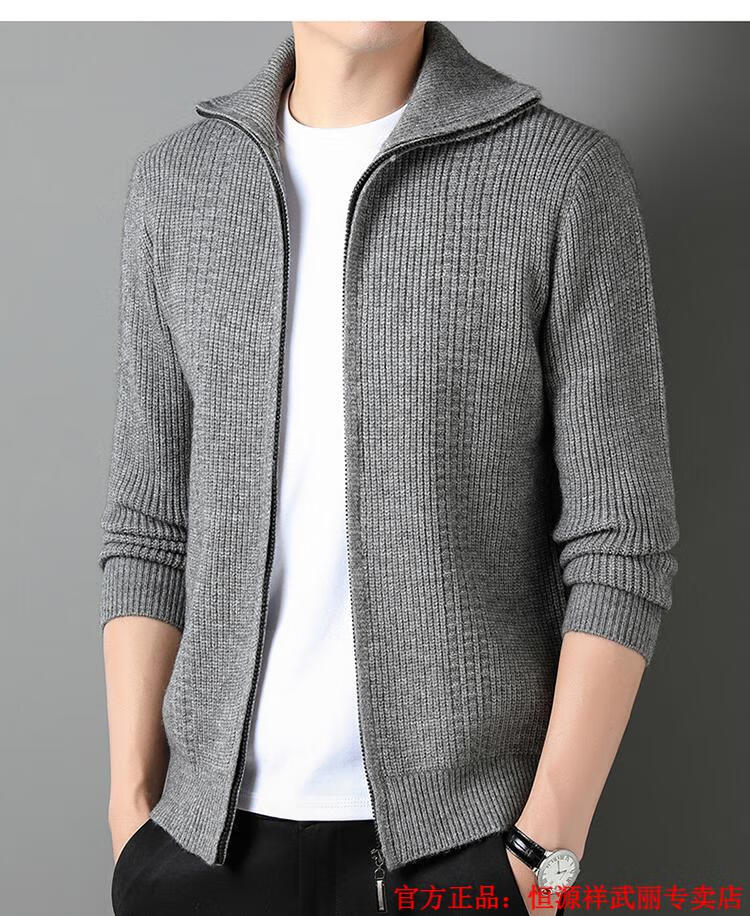 Hengyuanxiang autumn and winter thickened wool sweater men's knitted cardigan zipper lapel sweater middle-aged sheep tamarin sweater men's trendy jacket gray 175/XL/115/recommended 135-155Jin Jin equals 0.5 kg